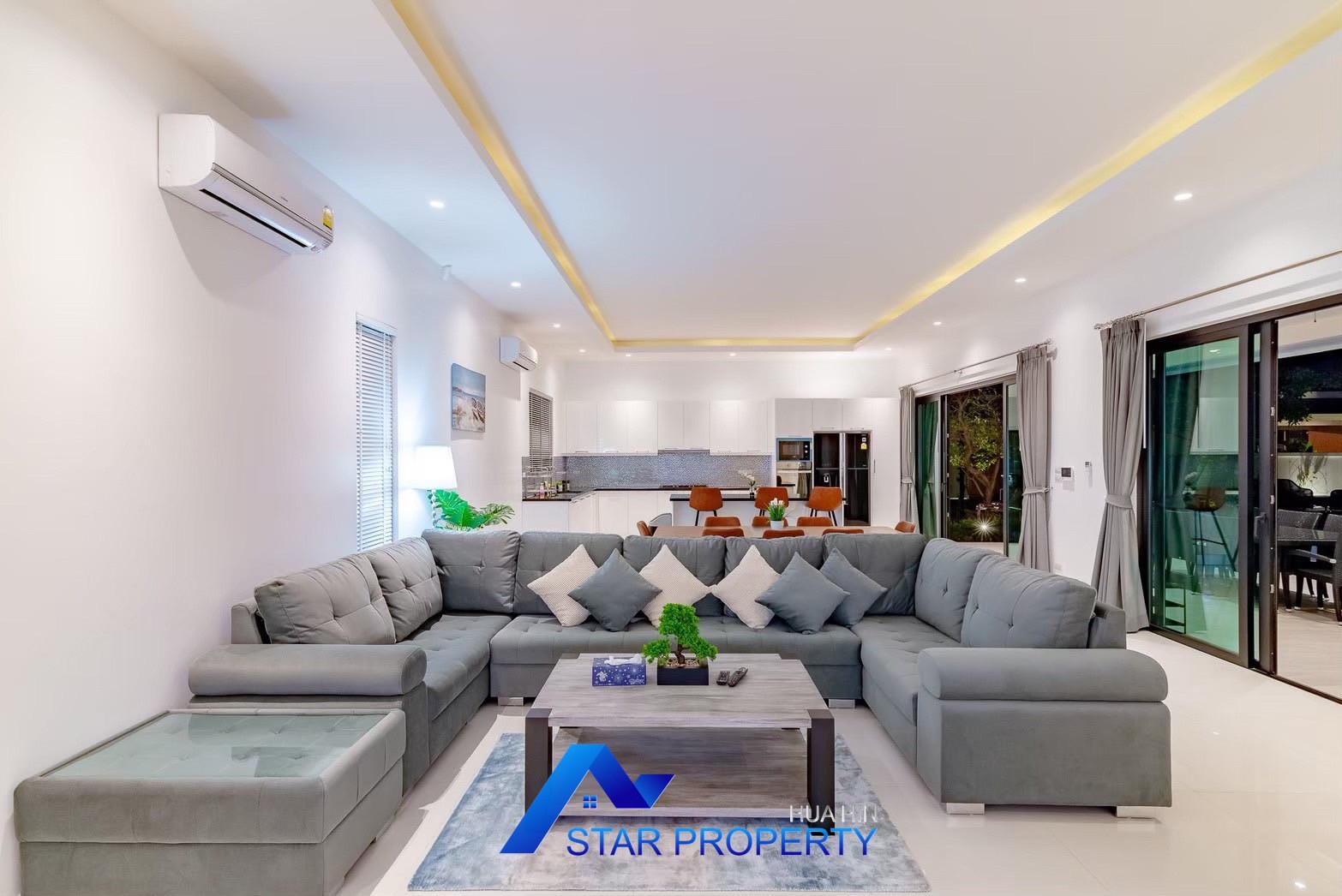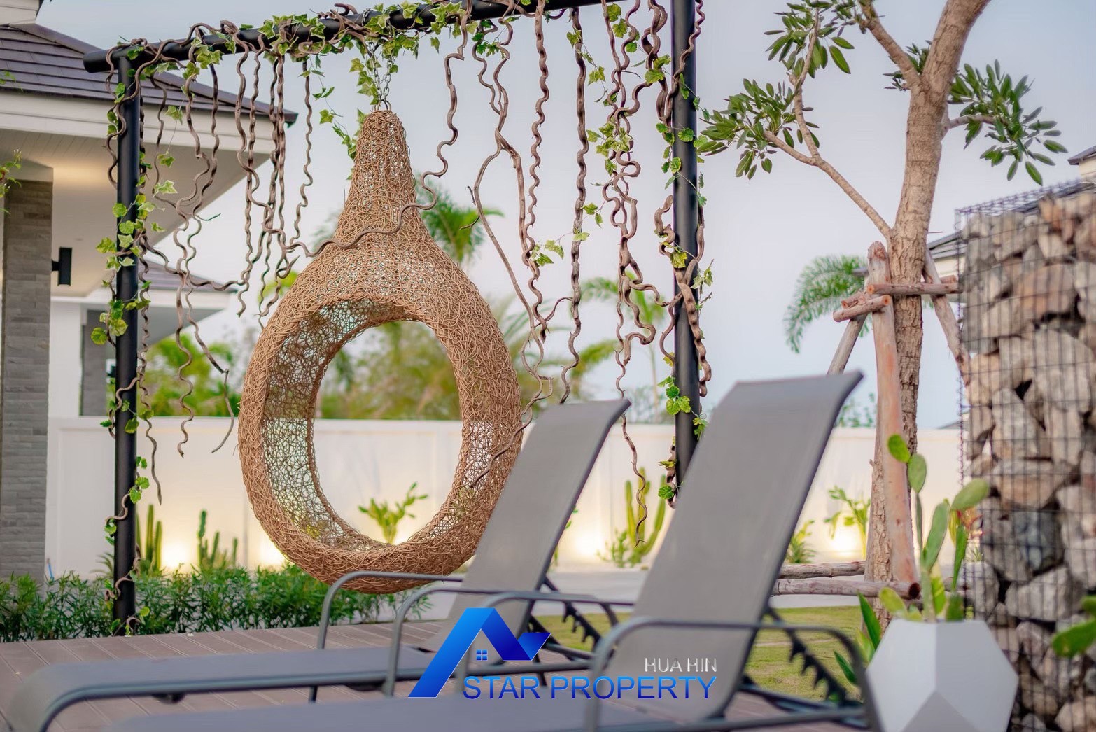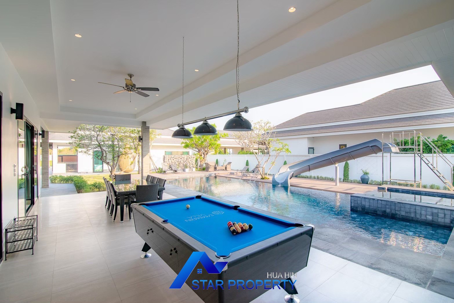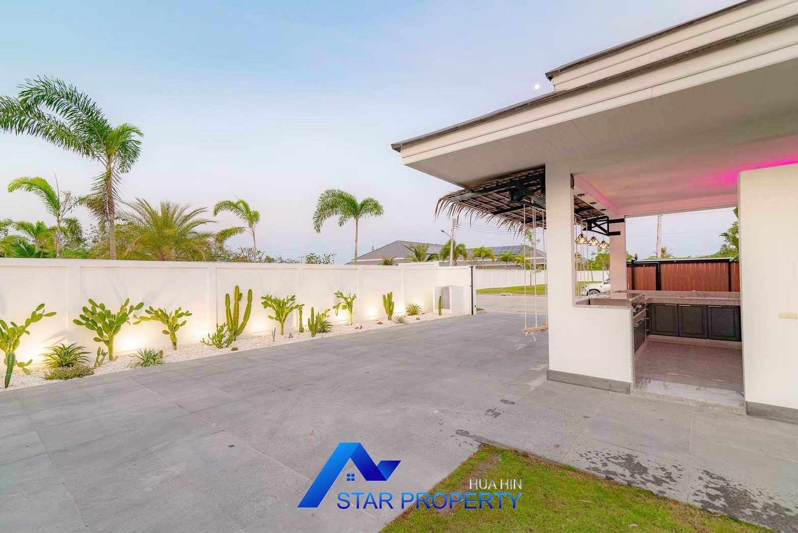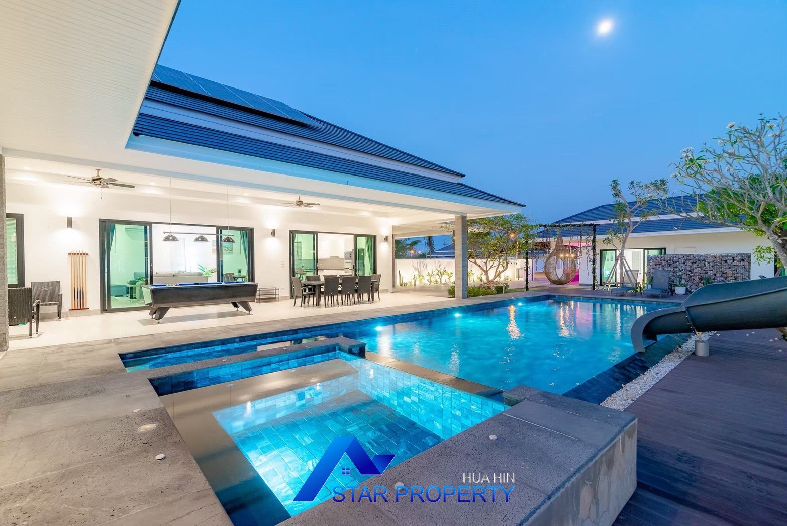 New luxury houses for sale in Hua Hin – Cha Am. Each spacious 5 bedrooms, 5 bathrooms villa includes a large private swimming pool and lanscaped private gardens