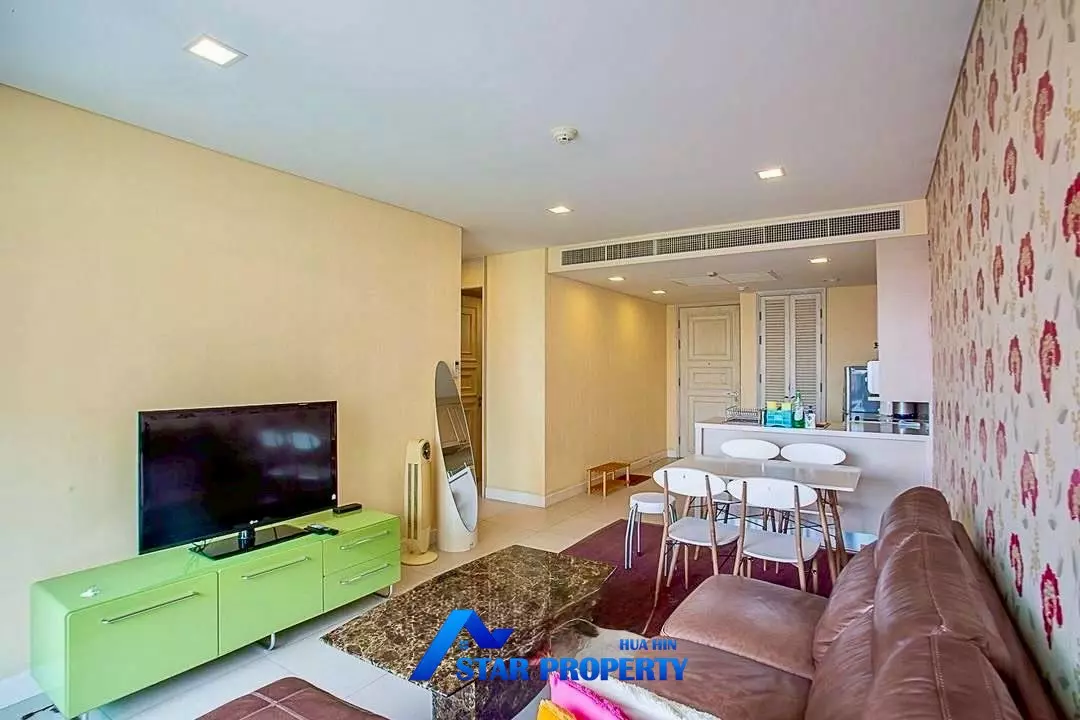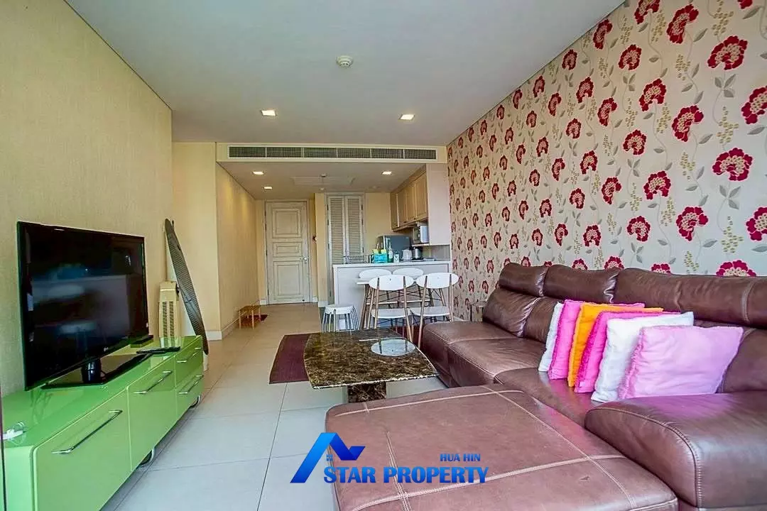 Beautiful pool-facing condominium with sea view, offering 2 bedrooms and 2 bathrooms with a spacious 84 sq.m. of living area, located on the 4th floor. The unit features a bright open-plan living and dining area, fully furnished interiors, and a private balcony overlooking the swimming pool and the sea, creating a relaxing resort-style atmosphere.
