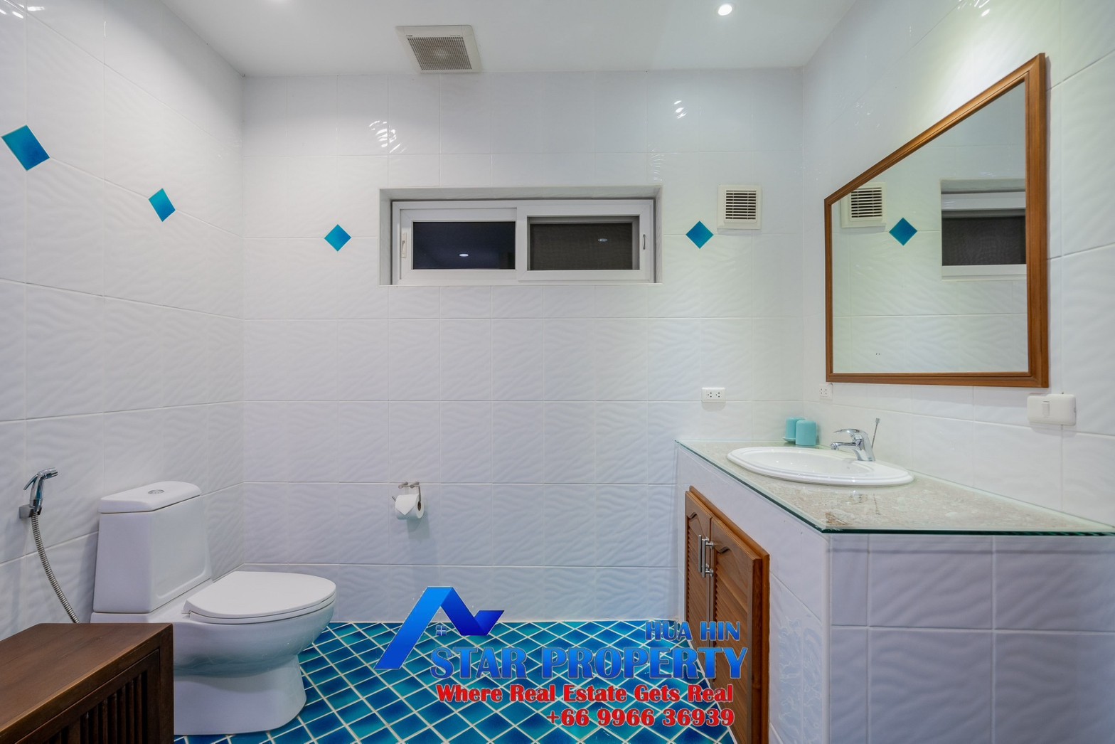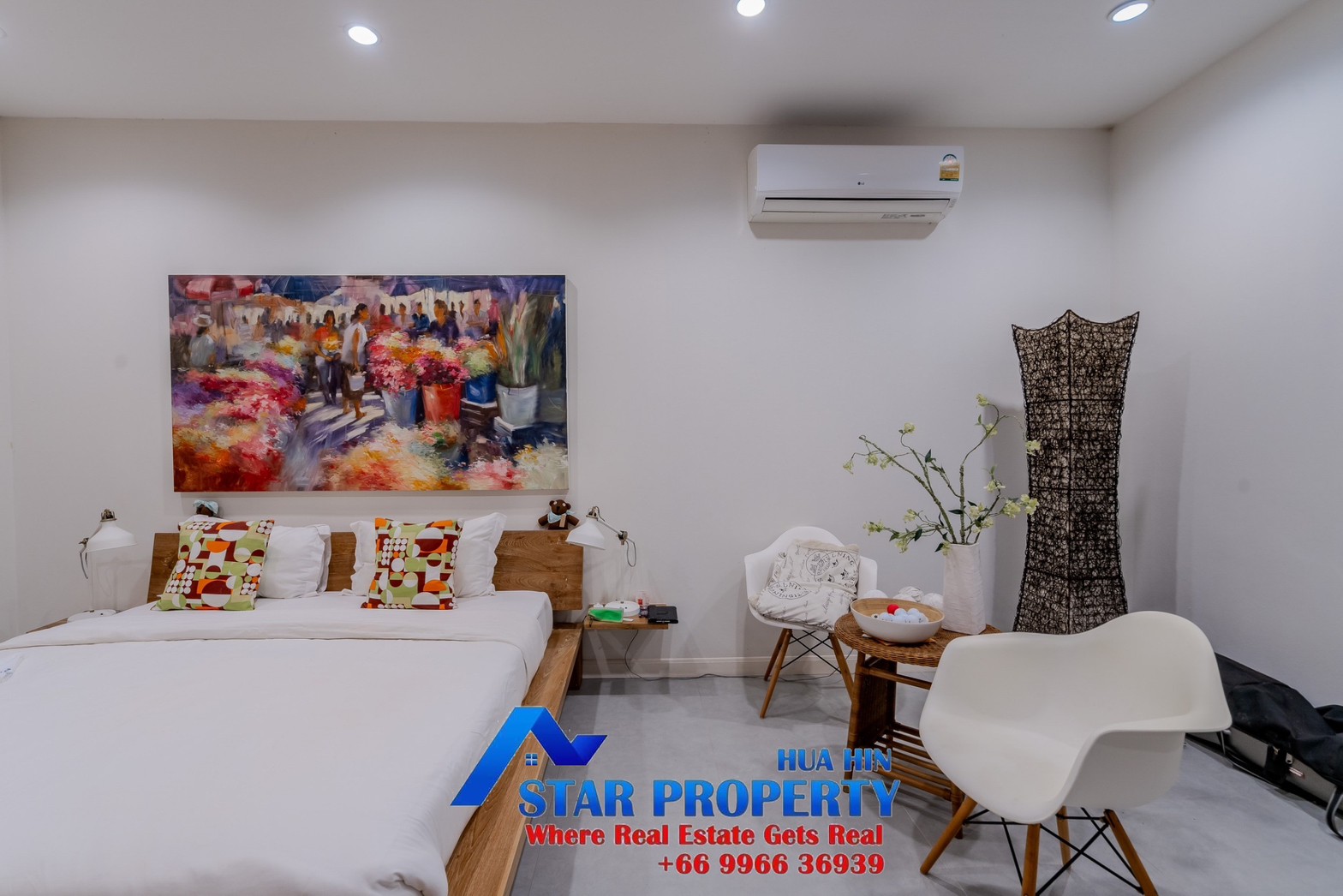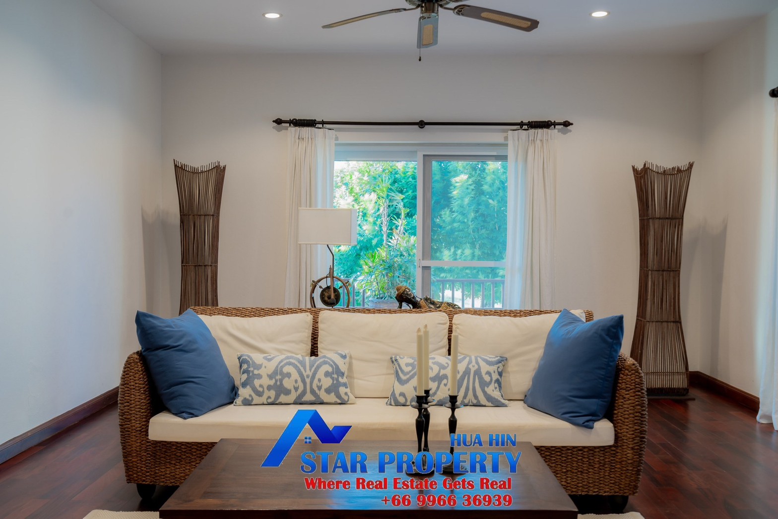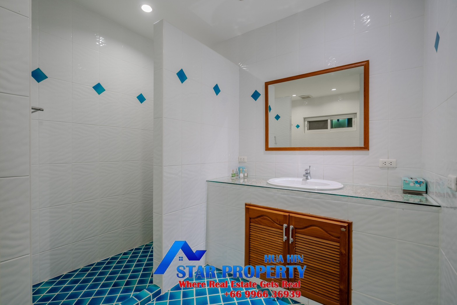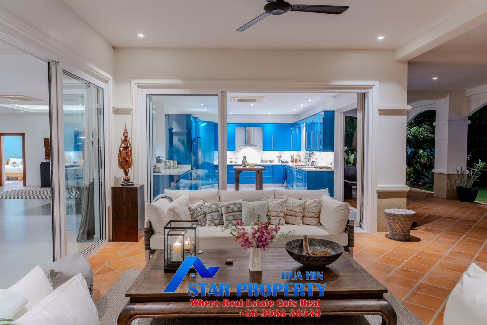 Lovely large pool villa with spacious living areas both indoors and on a large balcony. This 2-storey villa sits on a large 4200 sq m plot of land close to Hua Hin city center and the beach. Tropical gardens are landscaped by garden designers. It also includes a golf course training area with sand bunkers, chopping equipment and your own putting green. There is a large swimming pool area with a jacuzzi and waterfall, as well as an adjacent relaxation area.