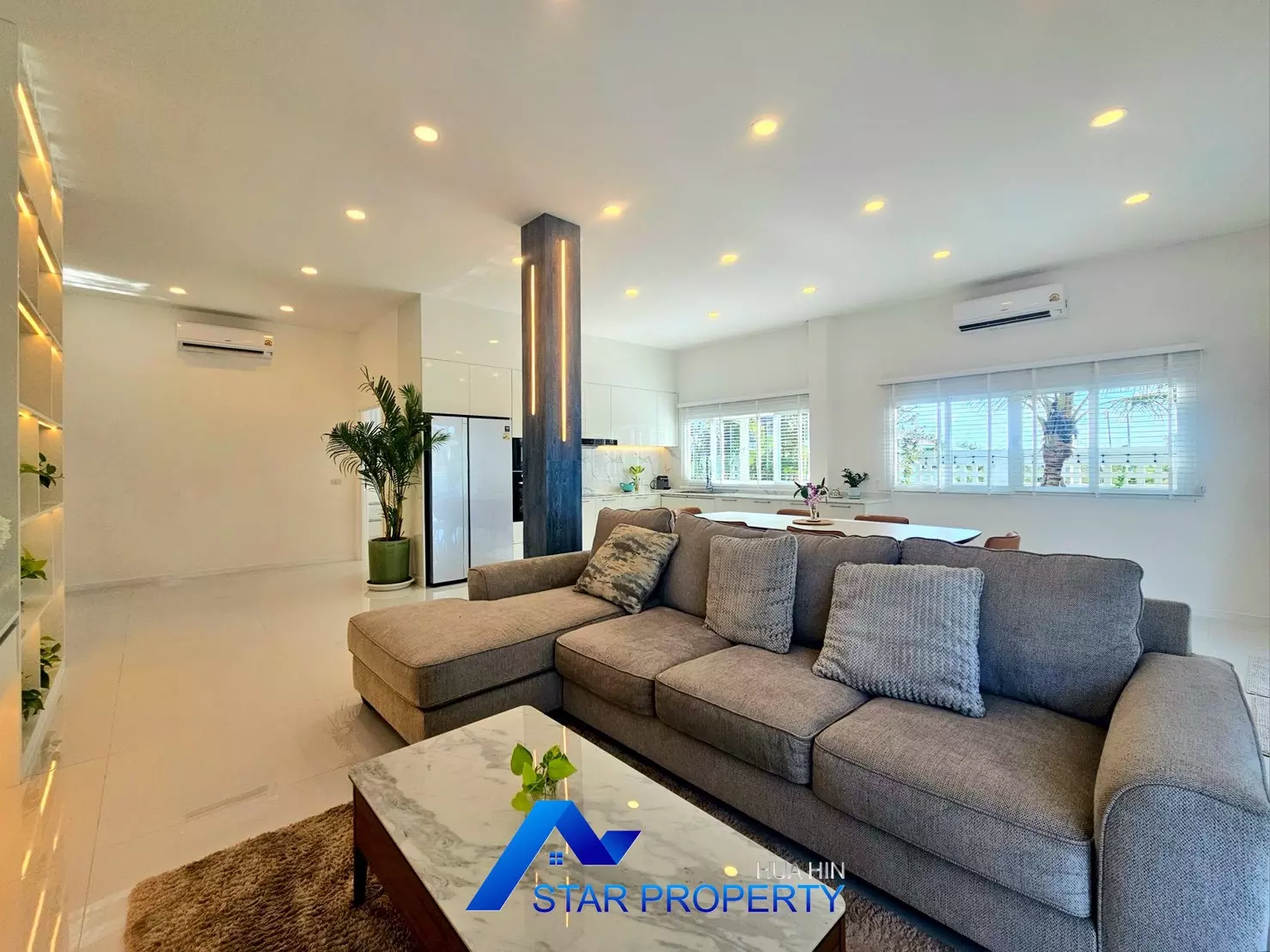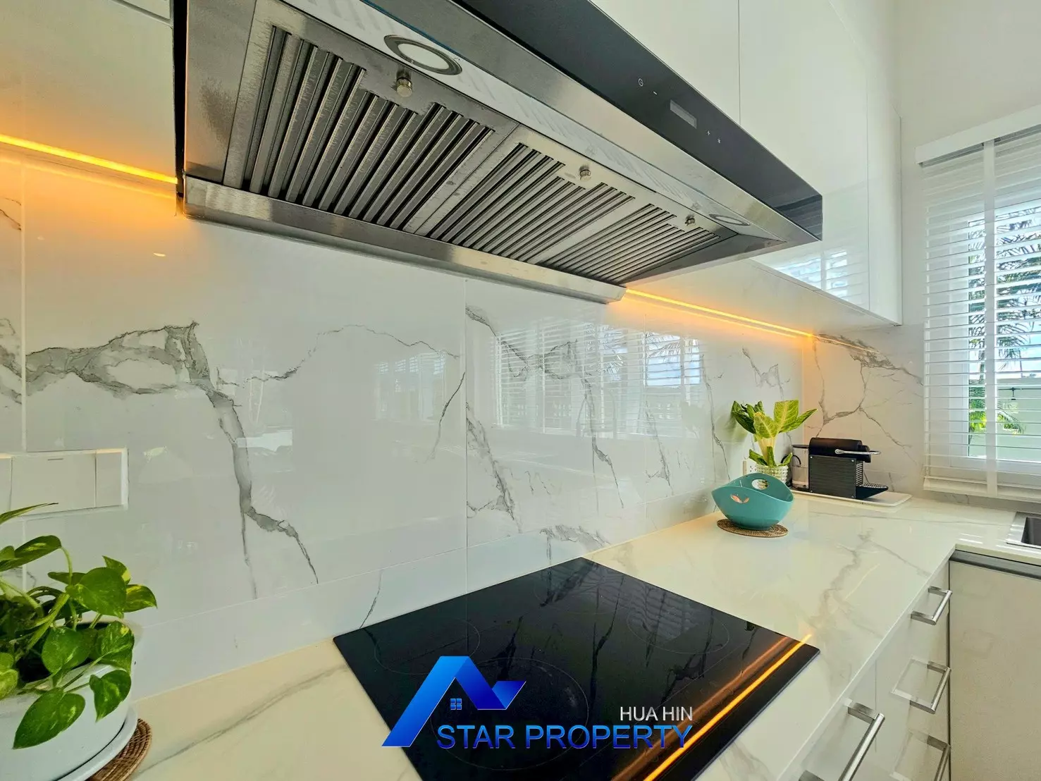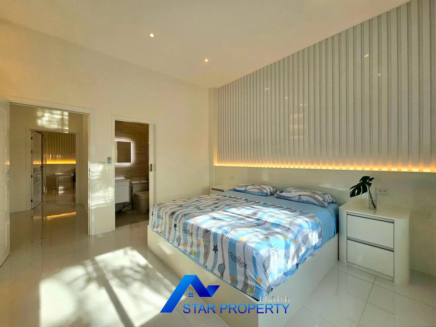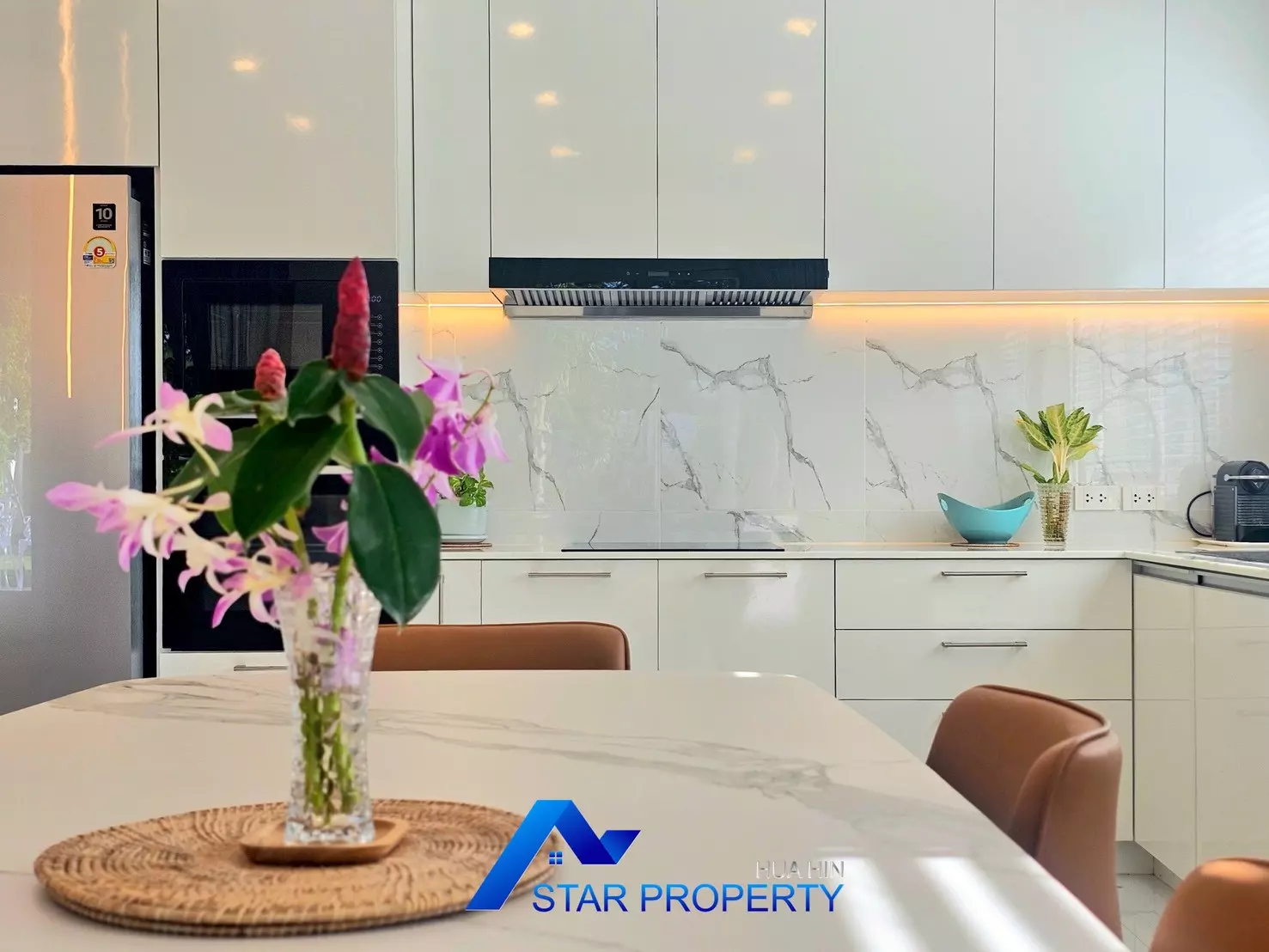 A brand-new, fully furnished 3-bedroom pool villa situated in the peaceful Hin Lek Fai area, just a short 10-minute drive from Hua Hin city center. This elegant home blends modern comfort with tropical design, offering spacious indoor and outdoor living areas perfect for family living or a tranquil retreat.