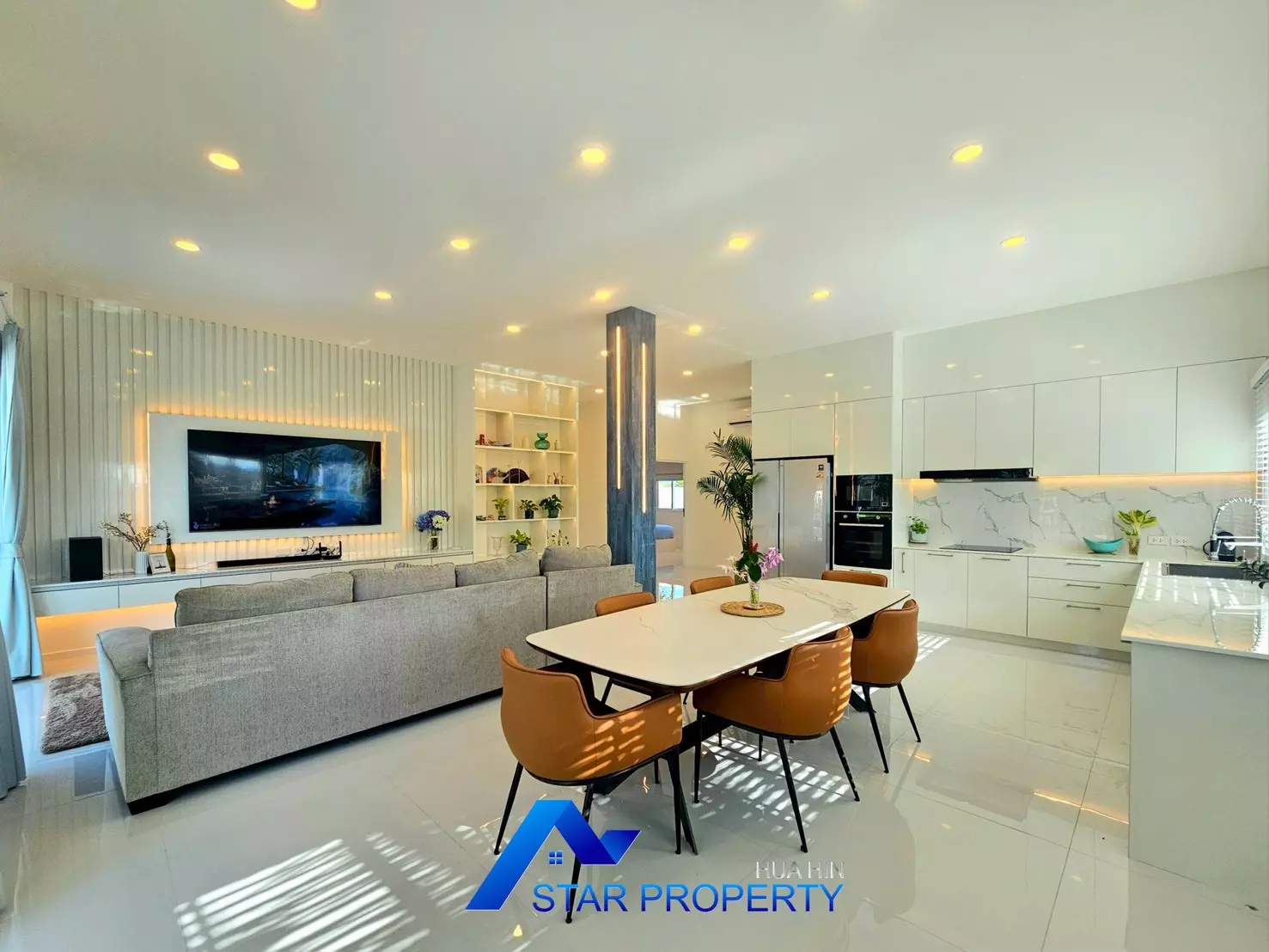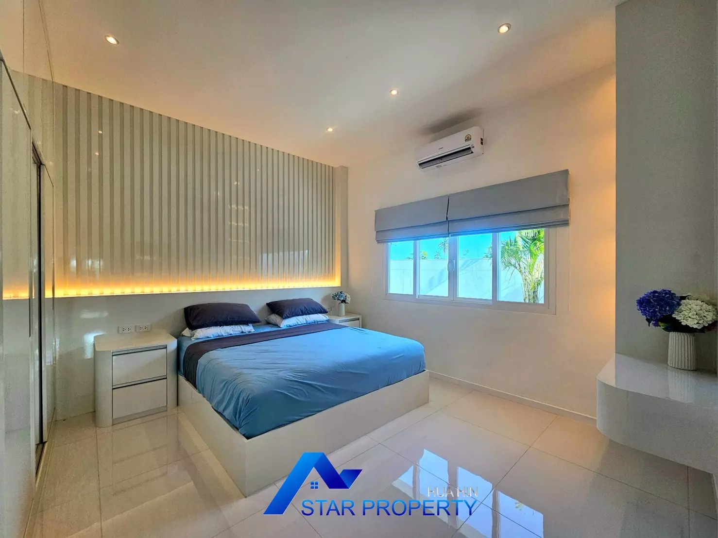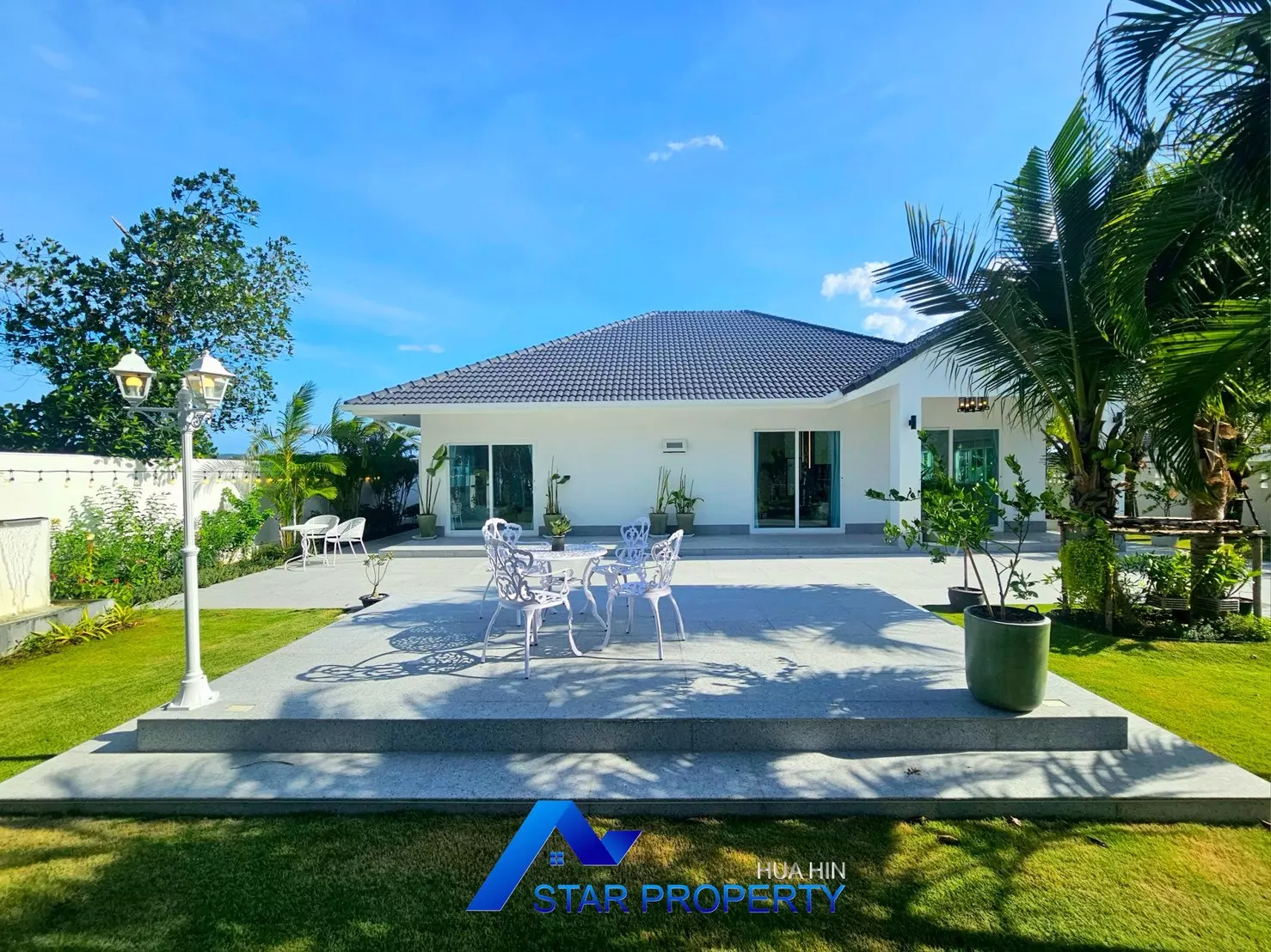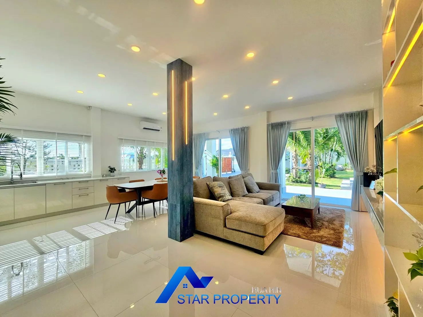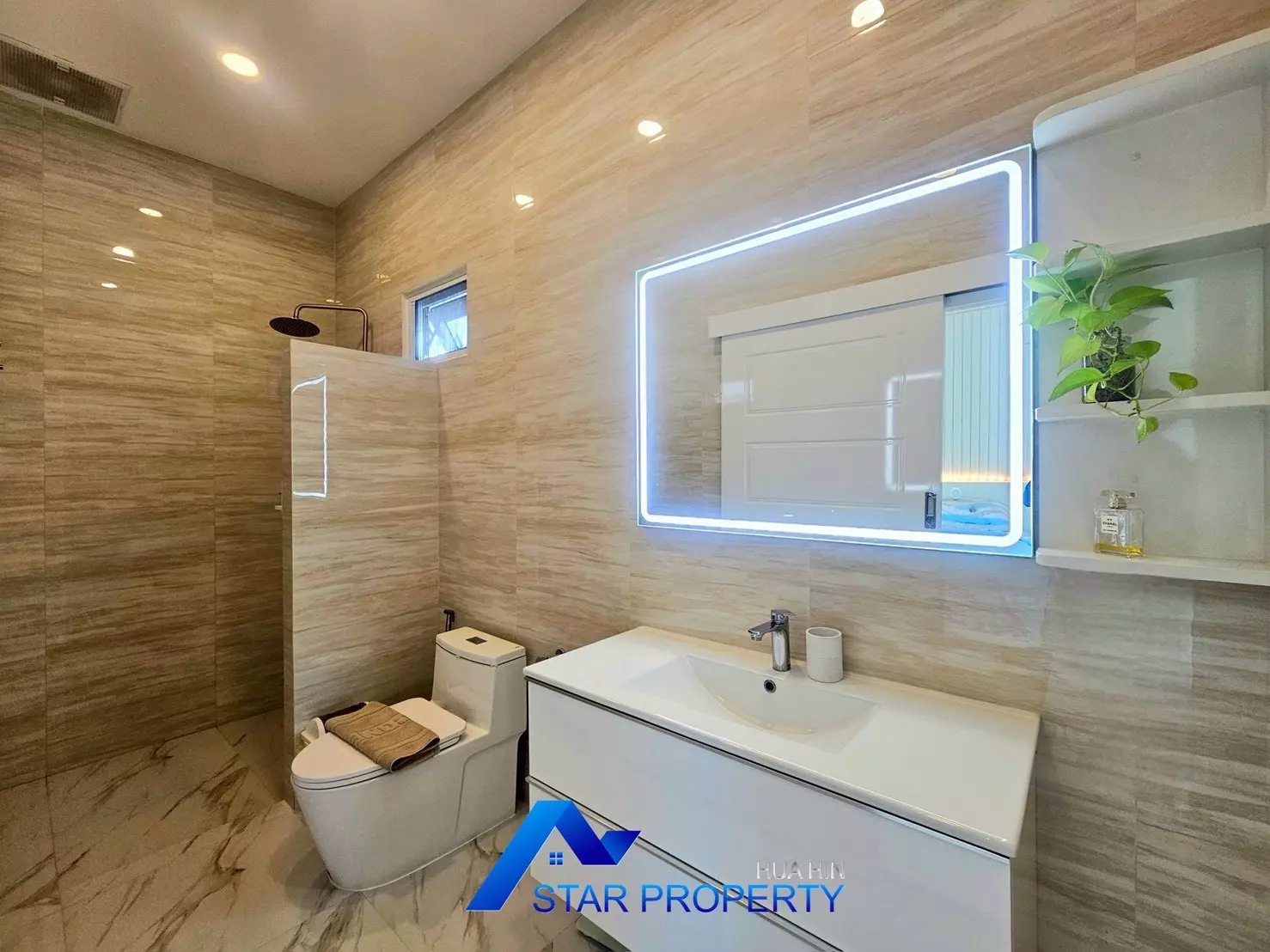 A brand-new, fully furnished 3-bedroom pool villa situated in the peaceful Hin Lek Fai area, just a short 10-minute drive from Hua Hin city center. This elegant home blends modern comfort with tropical design, offering spacious indoor and outdoor living areas perfect for family living or a tranquil retreat.