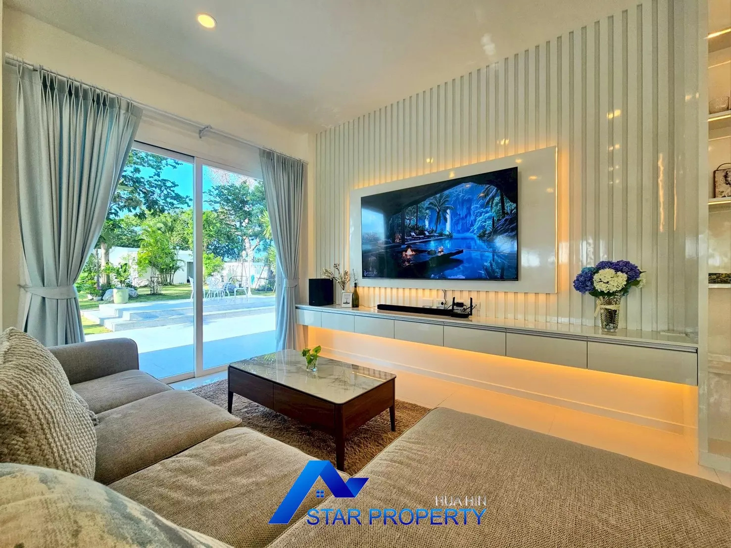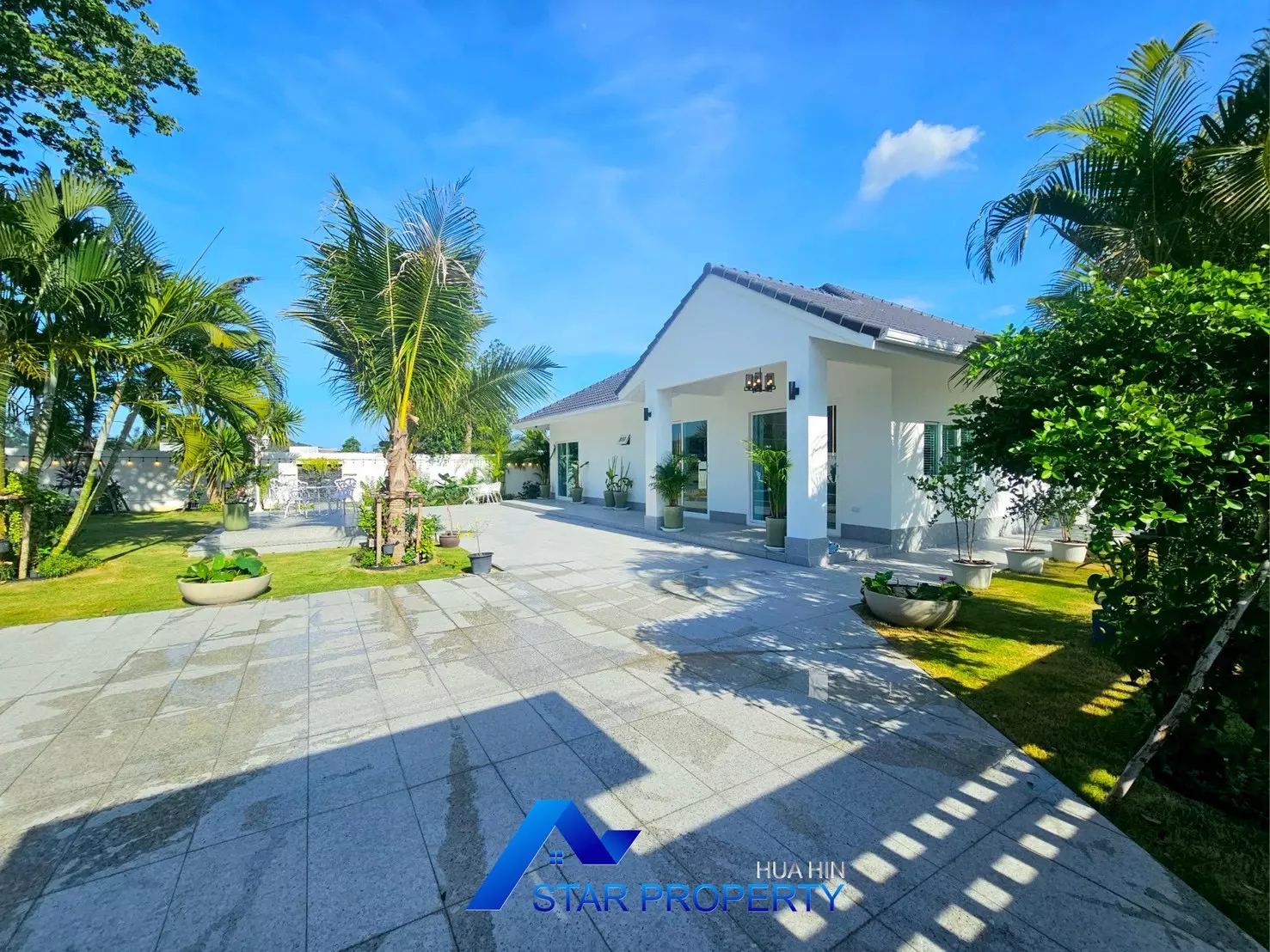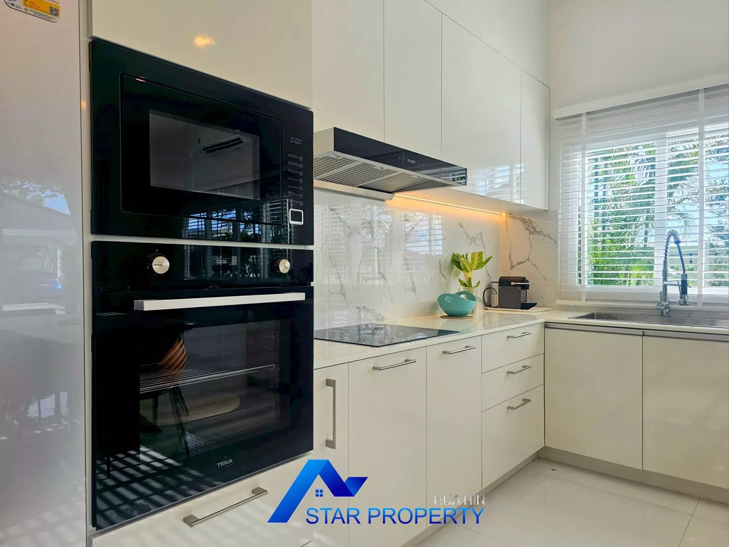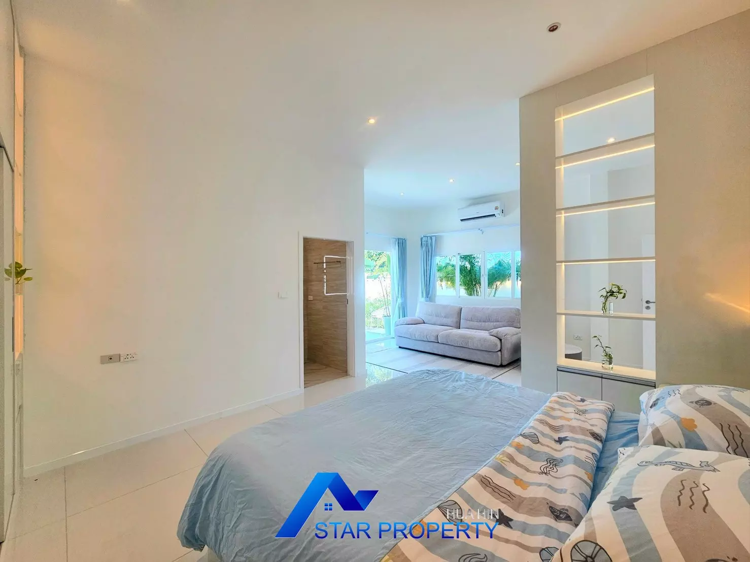 A brand-new, fully furnished 3-bedroom pool villa situated in the peaceful Hin Lek Fai area, just a short 10-minute drive from Hua Hin city center. This elegant home blends modern comfort with tropical design, offering spacious indoor and outdoor living areas perfect for family living or a tranquil retreat.