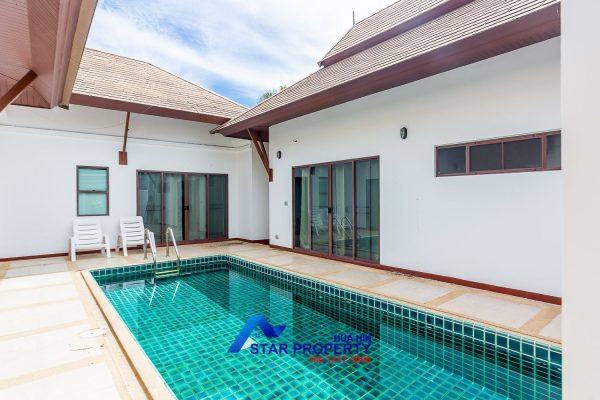 This luxurious pool villa is a masterpiece of design and craftsmanship, situated in the exclusive community of Palm Hills Golf Course, Hua Hin. Completed in May 2022, this stunning villa offers 800m2 of living space and is surrounded by 2,000m2 of lush gardens, mature trees and beautiful views of the golf course with a lake at the 2nd hole.