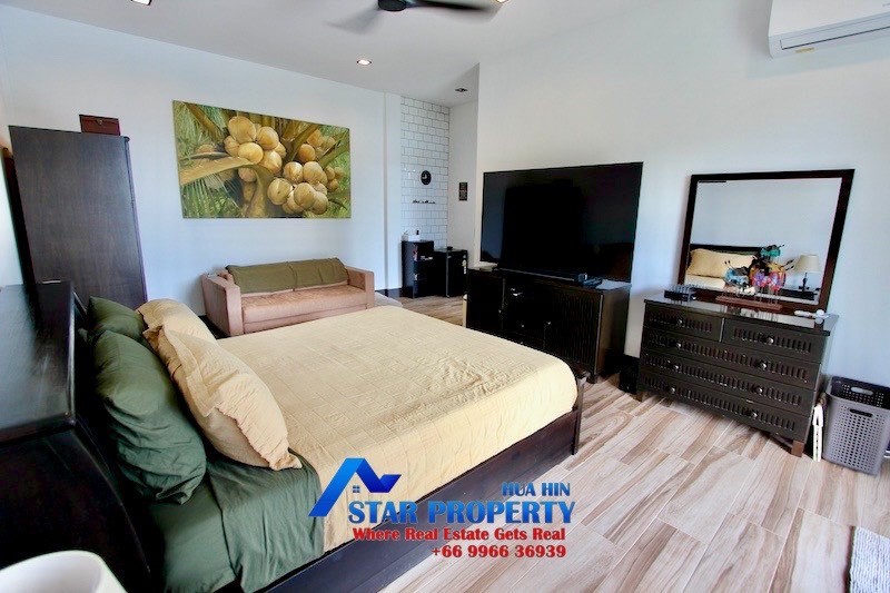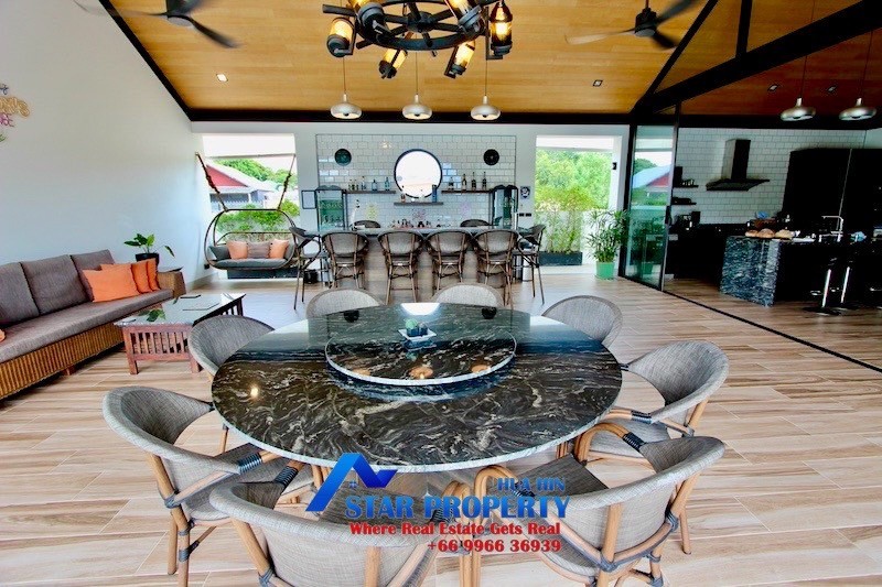 Stunning, high quality pool villa located in the serene area of Khao Tao, just a short distance from the beautiful Sai Noi Beach. This exceptional property sits on a large plot of 1,600 m² and offers expansive indoor and outdoor living spaces, perfect for large families and for entertaining guests.