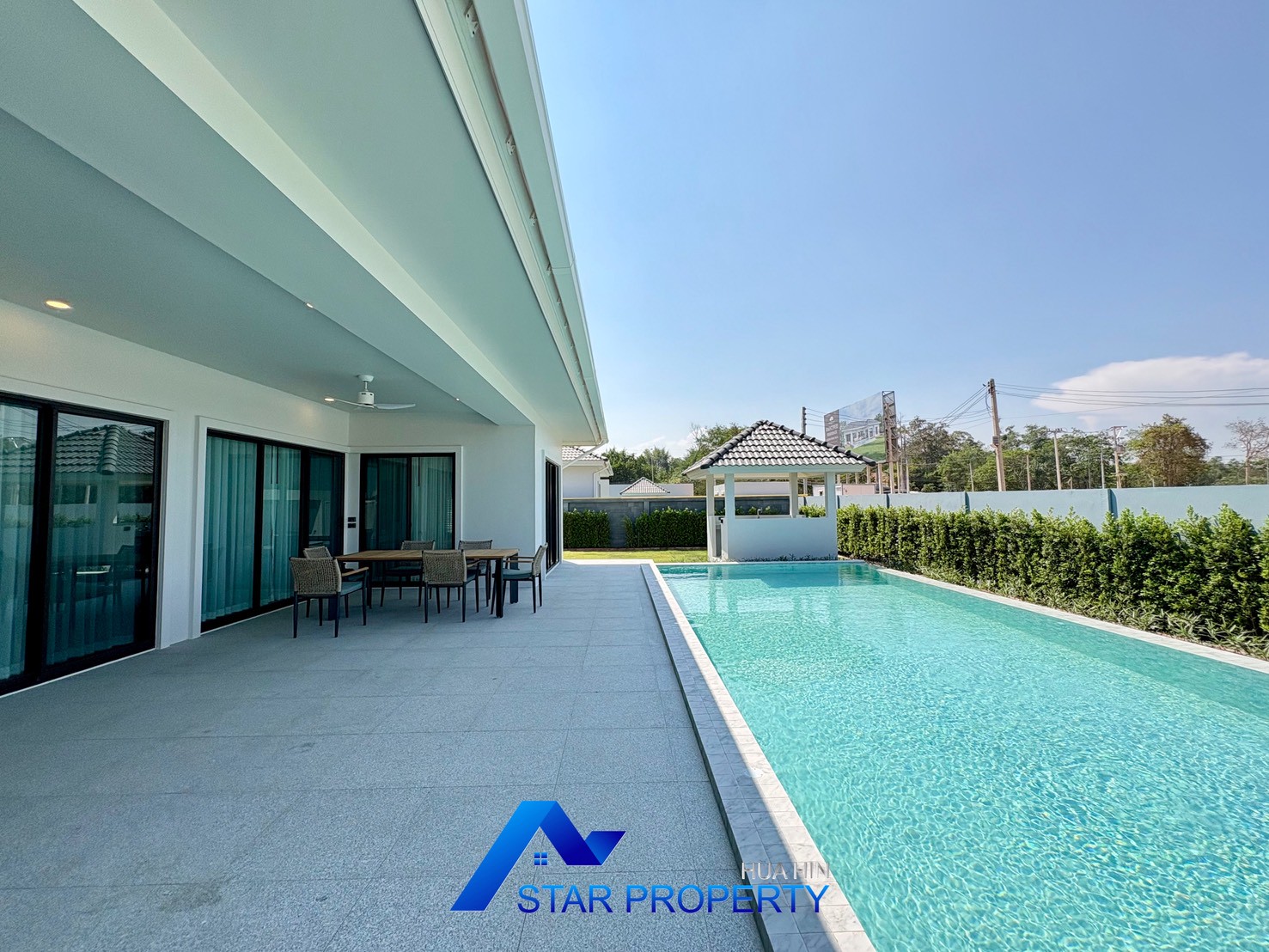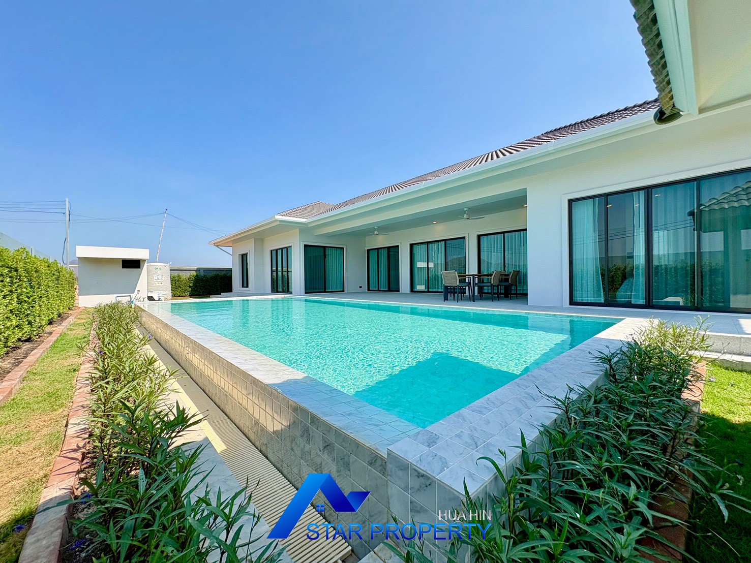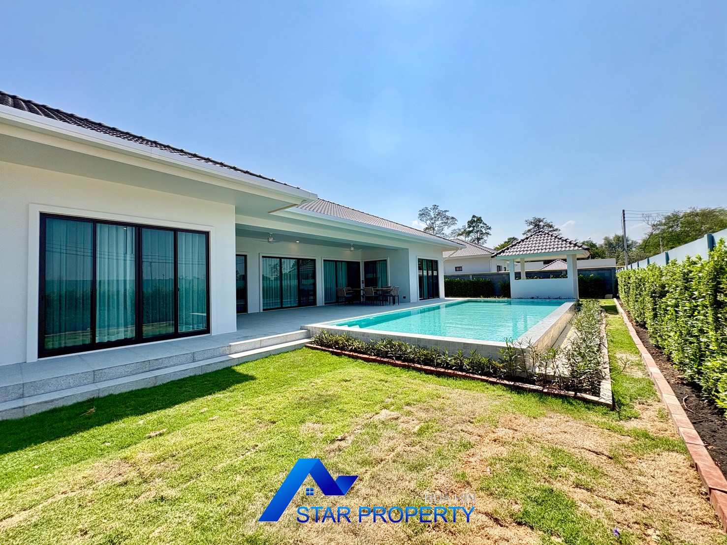 Experience refined tropical living in this beautifully designed modern pool villa, located in a peaceful residential area of Hua Hin. Set on a generous land plot of 676 sq.m. with a spacious usable area of 311.30 sq.m., this property offers privacy, comfort, and a well-planned layout ideal for family living or as a luxurious holiday home.