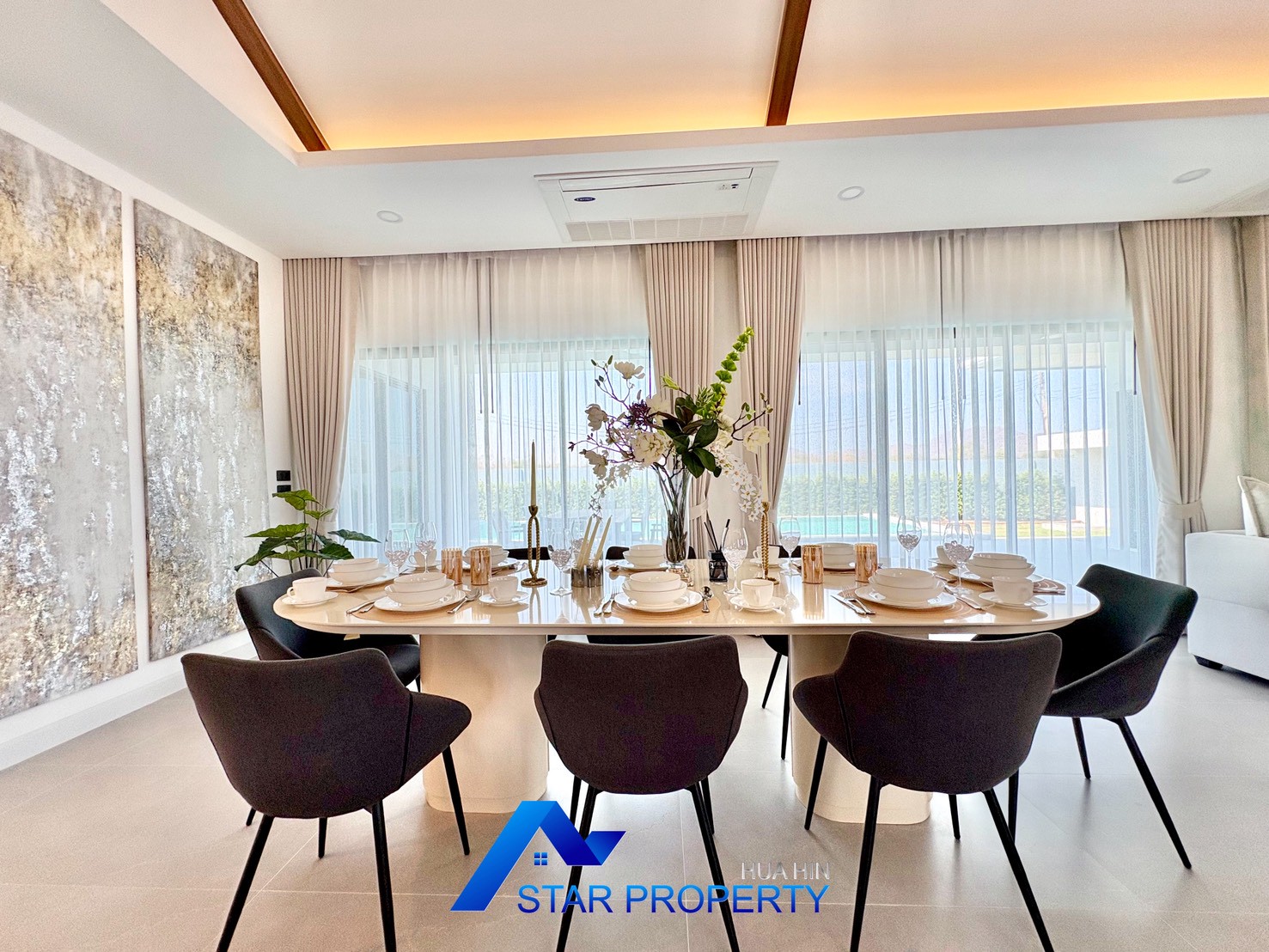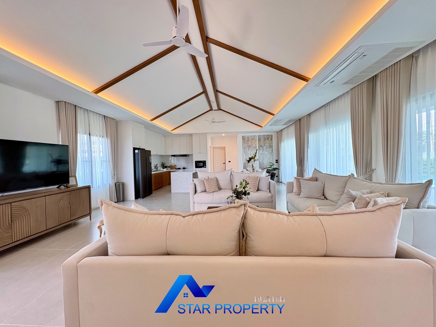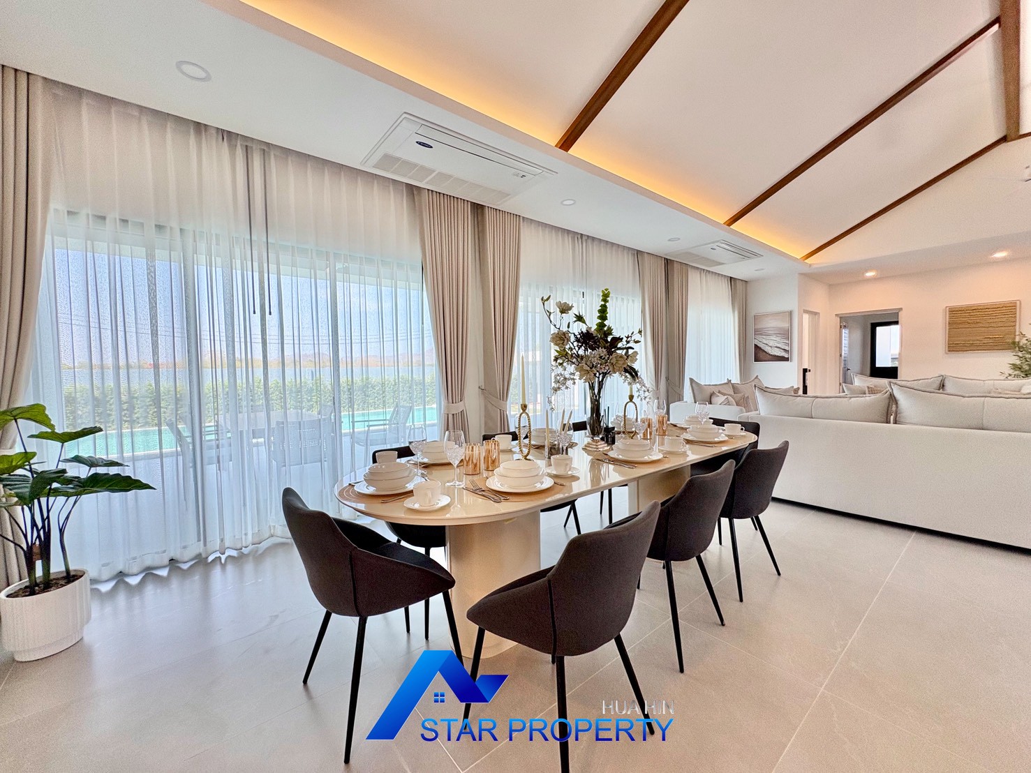 Experience refined tropical living in this beautifully designed modern pool villa, located in a peaceful residential area of Hua Hin. Set on a generous land plot of 676 sq.m. with a spacious usable area of 311.30 sq.m., this property offers privacy, comfort, and a well-planned layout ideal for family living or as a luxurious holiday home.