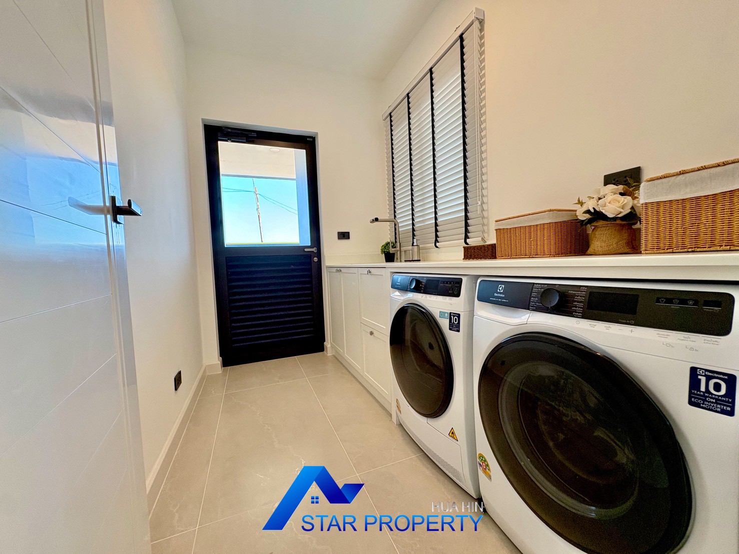 The villa features 3 spacious bedrooms and 3 modern bathrooms, along with a walk-in closet, dedicated laundry room, open-plan living and dining area, and a fully equipped kitchen. Large windows allow natural light to fill the interior, creating a bright and welcoming atmosphere.