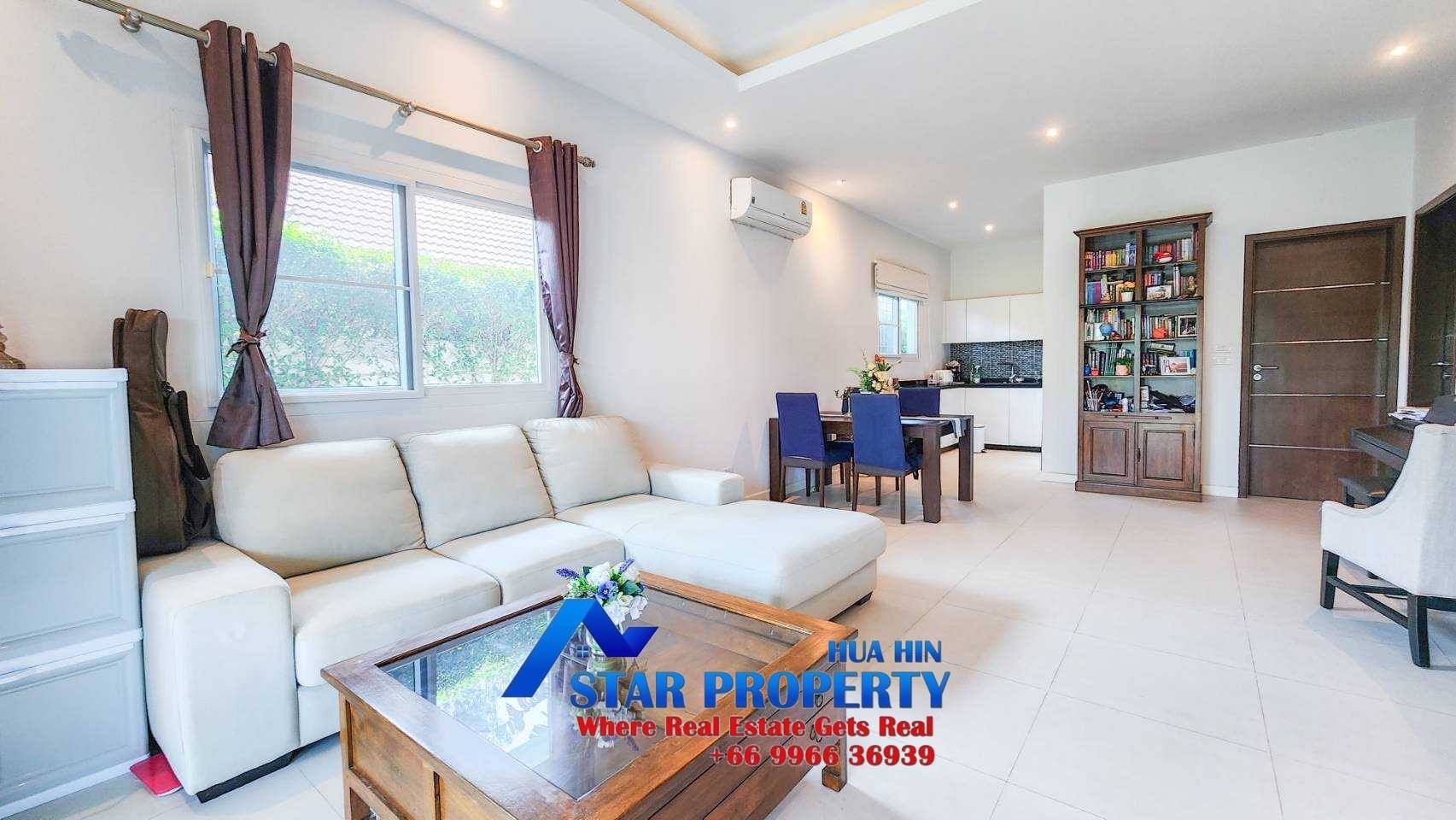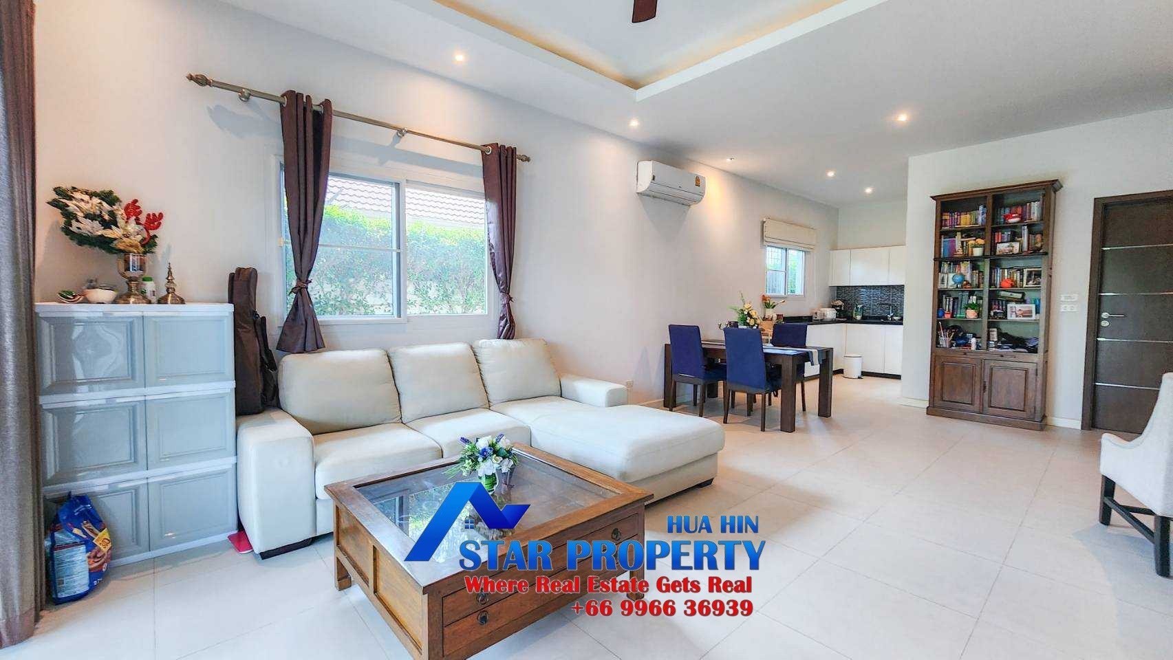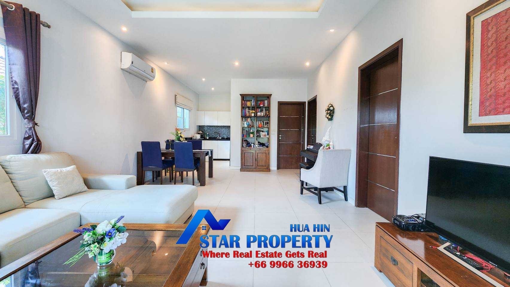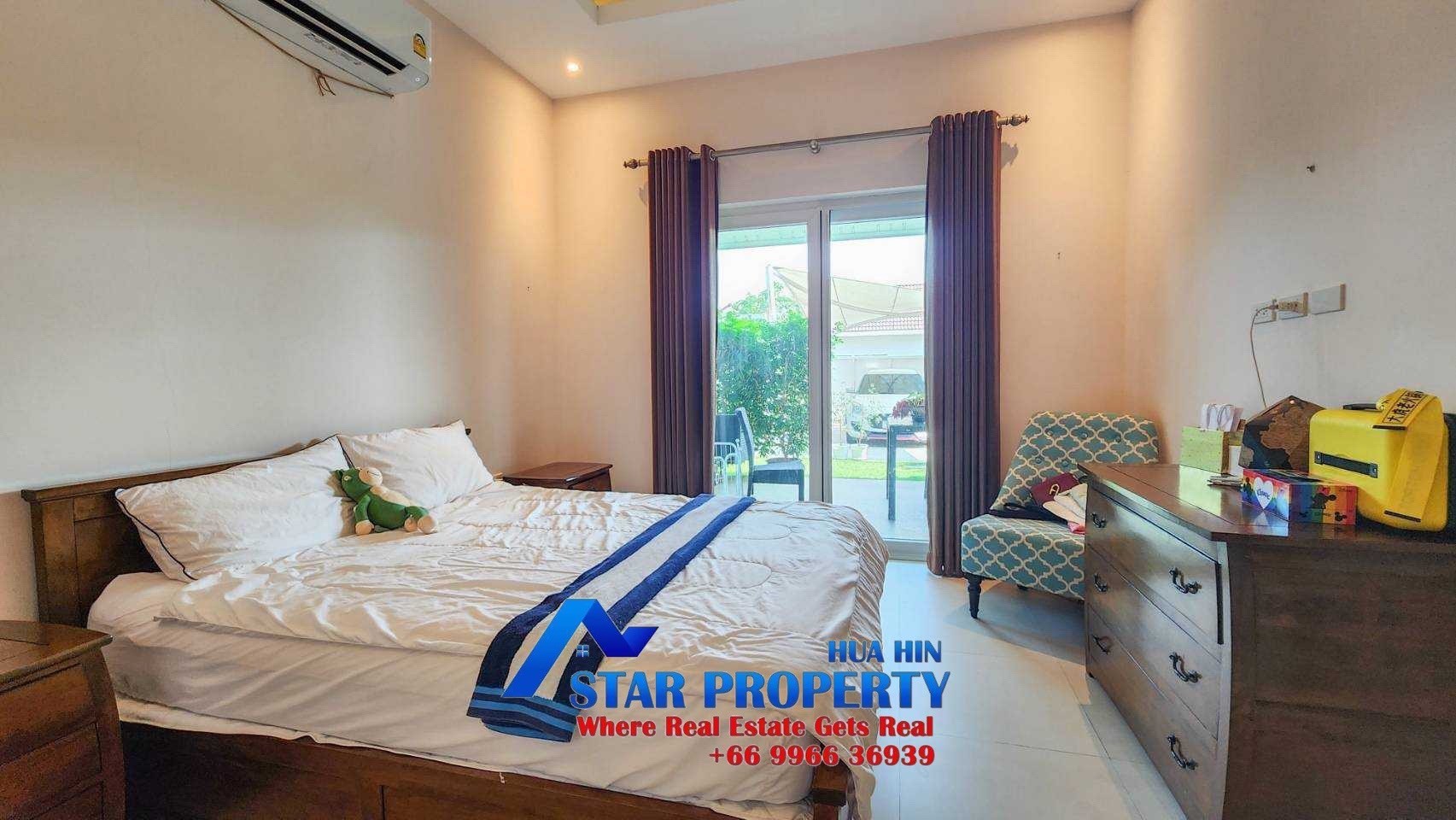 This 2 bedroom pool villa is 9 kilometers west of Hua Hin centre, and benefits from 24-hour security.