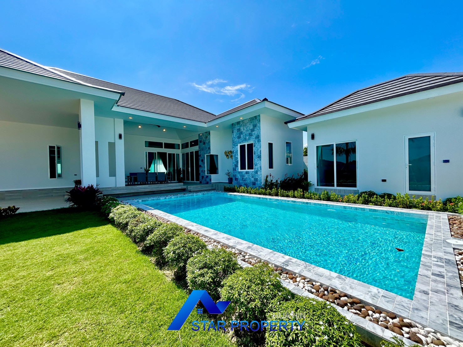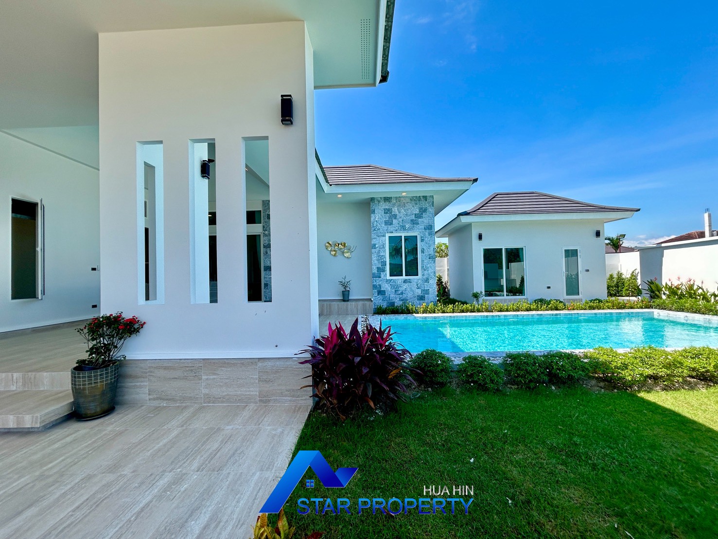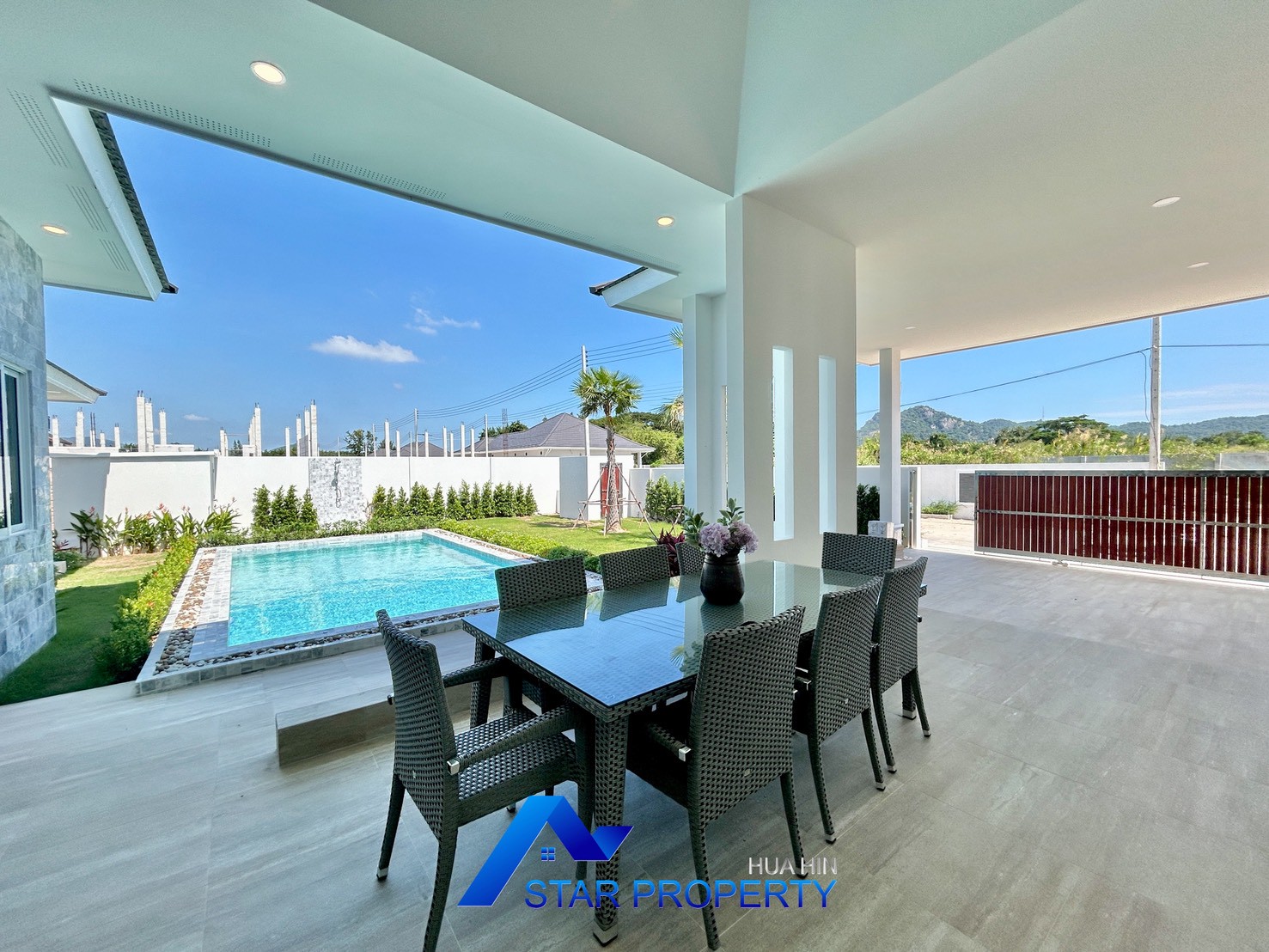 Discover a contemporary luxury pool villa surrounded by natural beauty and peaceful mountain views. Perfect for both full-time living and a relaxing getaway, this newly developed villa offers privacy, comfort, and convenience—just minutes from Hua Hin’s vibrant attractions.
