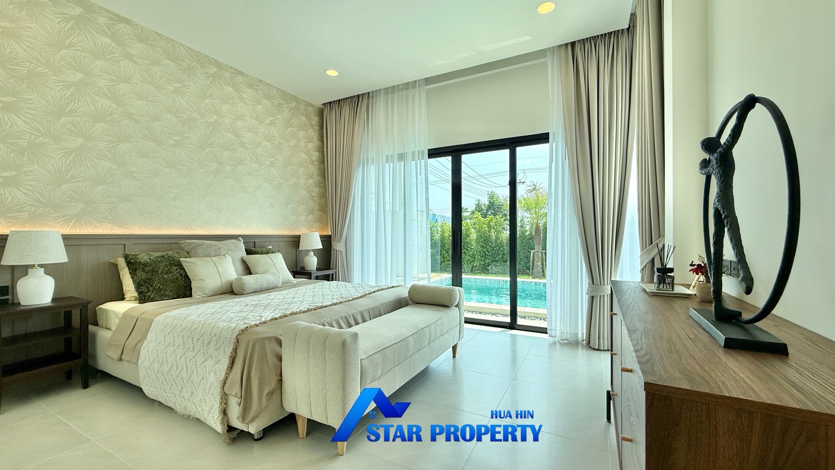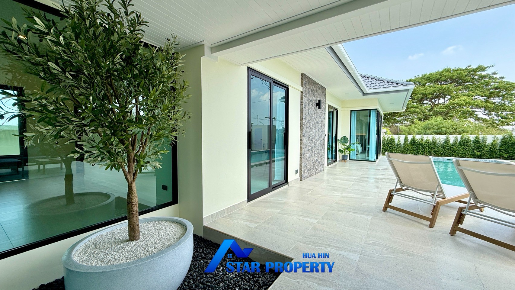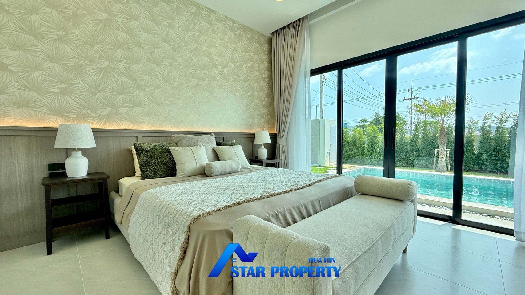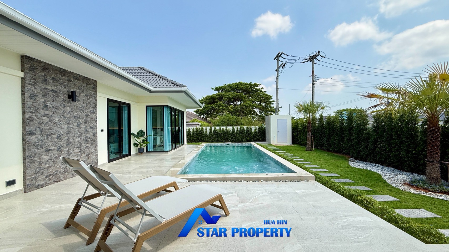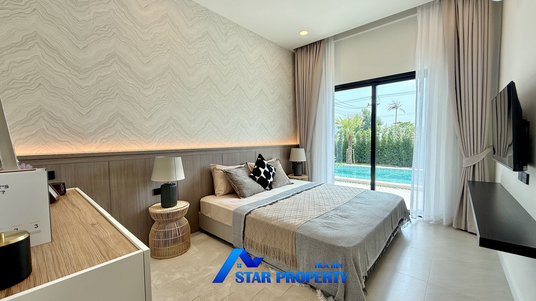 Discover a beautifully designed modern pool villa in a prime yet tranquil location near Hua Hin Soi 112, close to Sam Phan Nam Floating Market. Perfectly combining privacy, comfort, and convenience, this home is ideal for both living and investment.