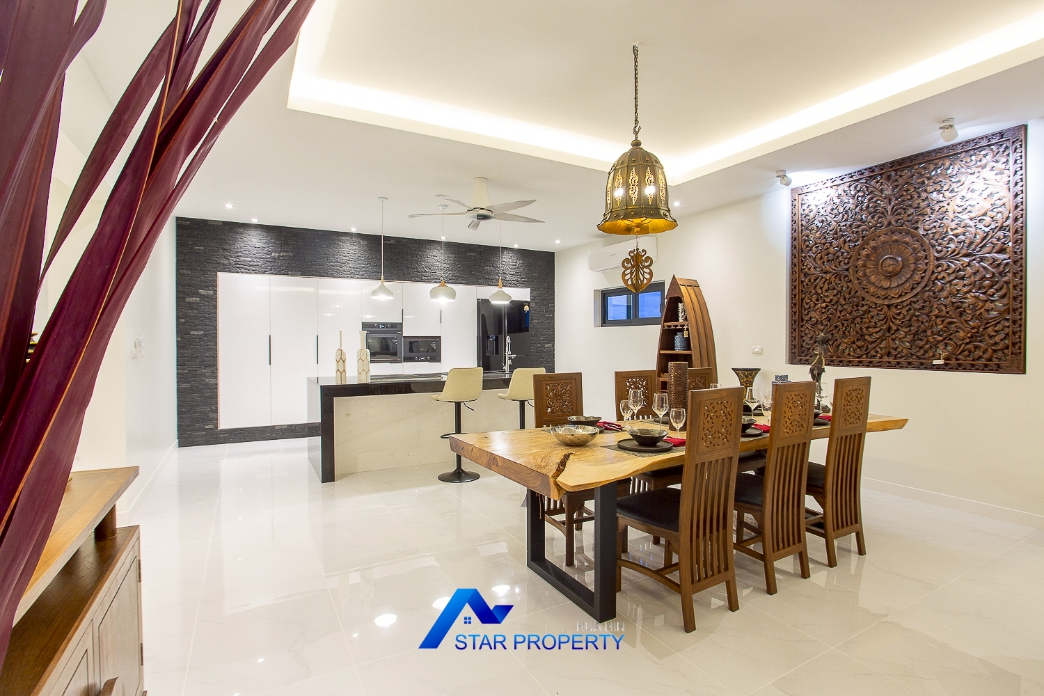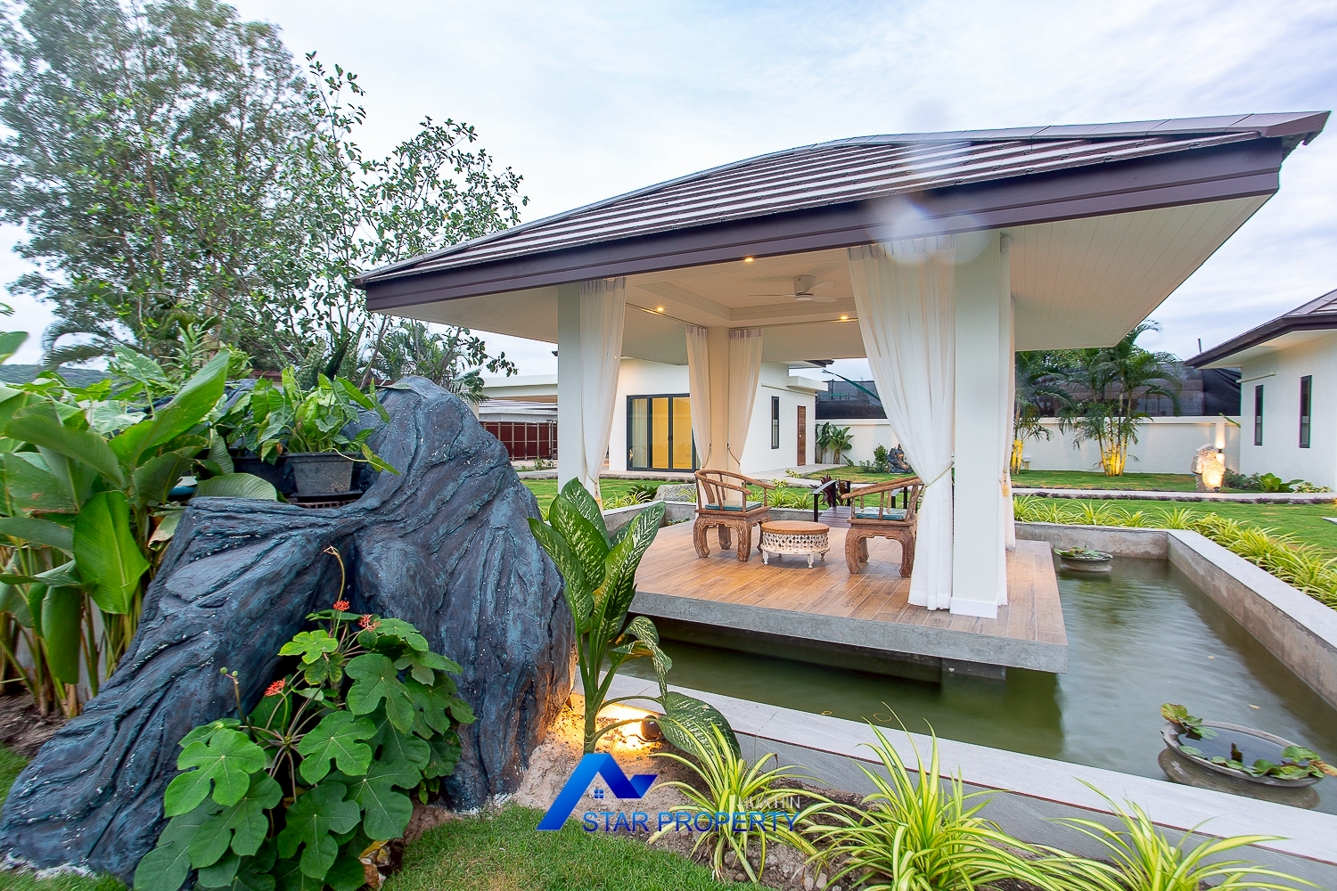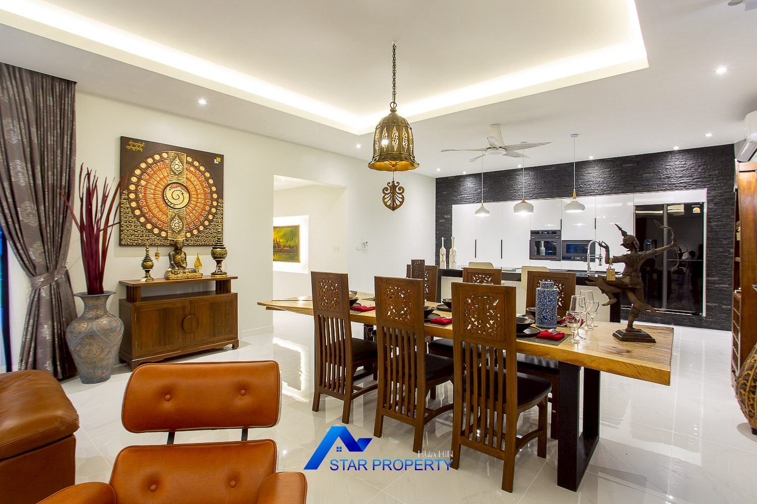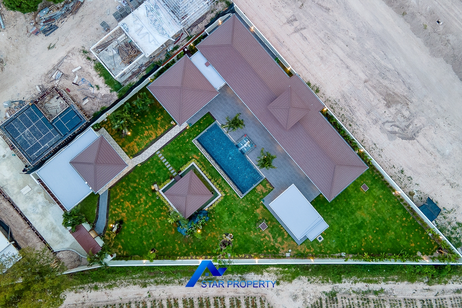 Experience timeless elegance and modern comfort at MAPROW Villa, a prestigious Thai–Balinese inspired pool villa designed for refined living. With its elegant U-shaped layout, the villa seamlessly integrates indoor and outdoor spaces, creating a private sanctuary surrounded by lush tropical gardens and tranquil water features.