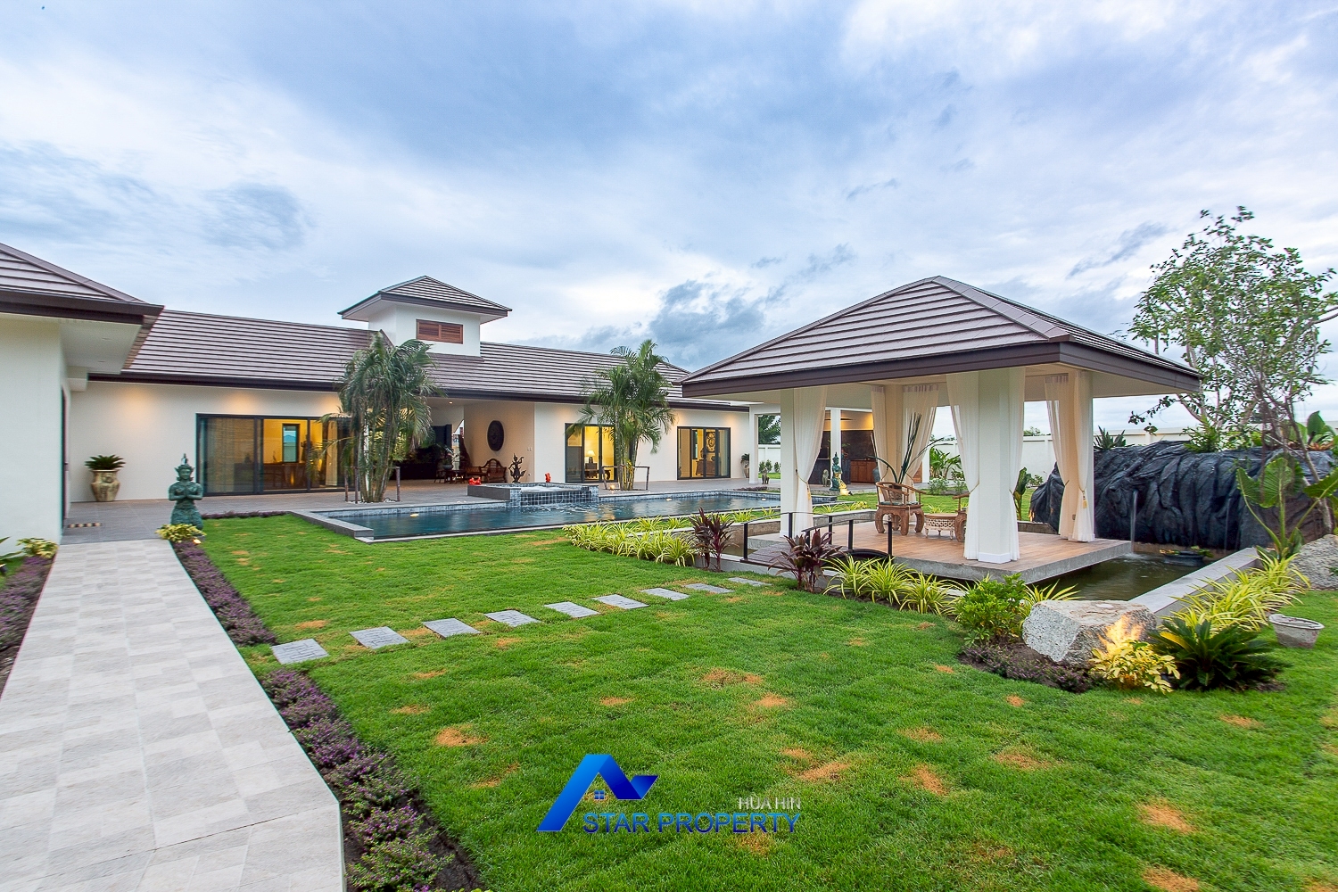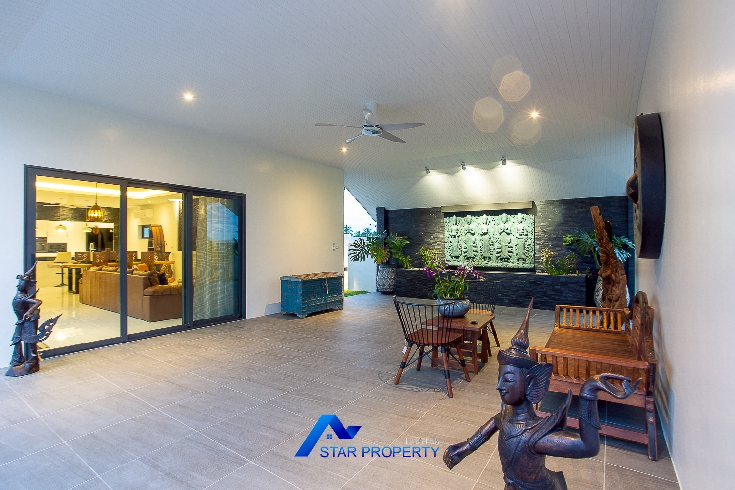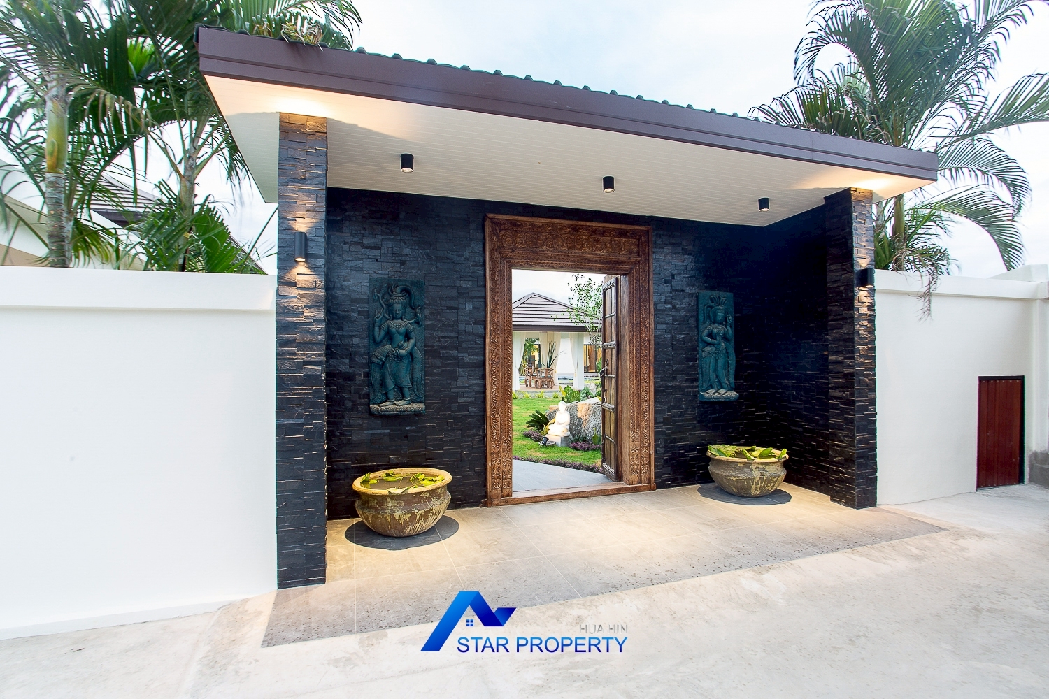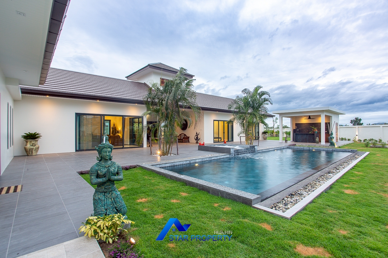 Experience timeless elegance and modern comfort at MAPROW Villa, a prestigious Thai–Balinese inspired pool villa designed for refined living. With its elegant U-shaped layout, the villa seamlessly integrates indoor and outdoor spaces, creating a private sanctuary surrounded by lush tropical gardens and tranquil water features.