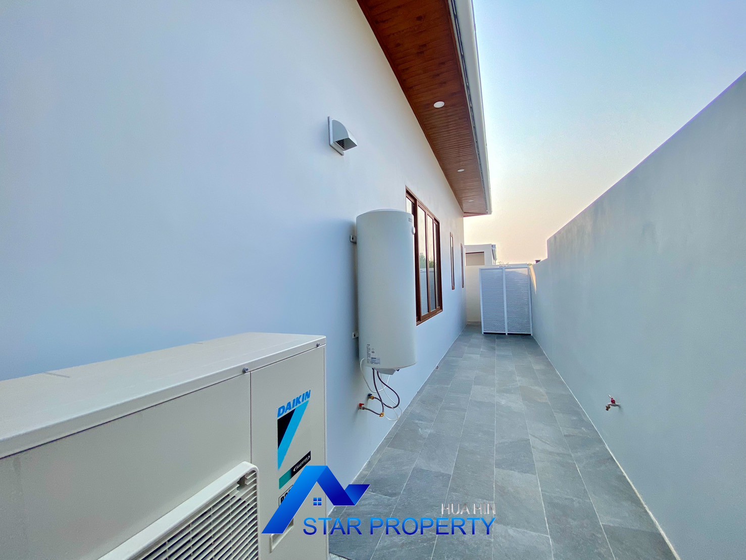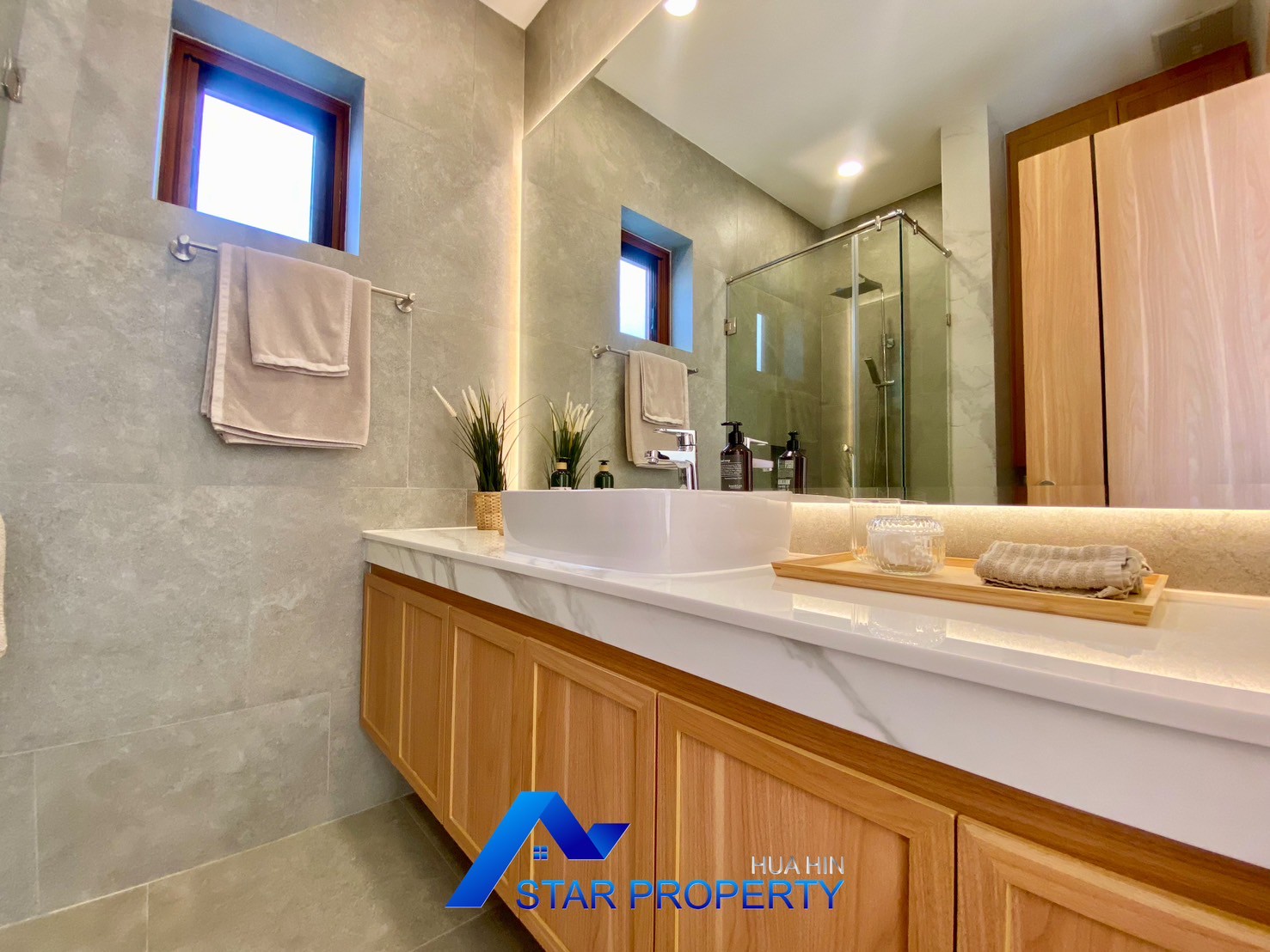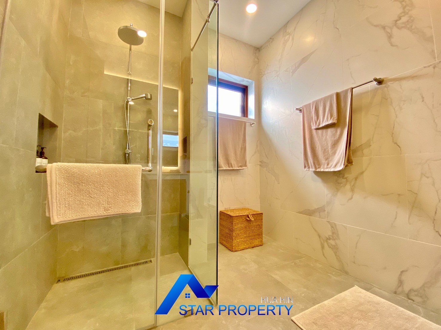 La Felice Hua Hin is a luxurious villa that offers the ultimate comfort and security for its guests. With 24-hour security and CCTV surveillance, guests can relax in peace knowing they are safe and protected. The villa features a stunning private pool, where guests can cool off and enjoy the sun in complete privacy. The beautiful garden adds to the serene atmosphere of the villa and provides a peaceful escape from the hustle and bustle of daily life. The shuttle bus service is also available, providing guests with a convenient way to explore the surrounding area. With a private pool, garden, and top-notch amenities, La Felice Hua Hin is the perfect destination for those seeking a comfortable, secure, and relaxing stay in Hua Hin.