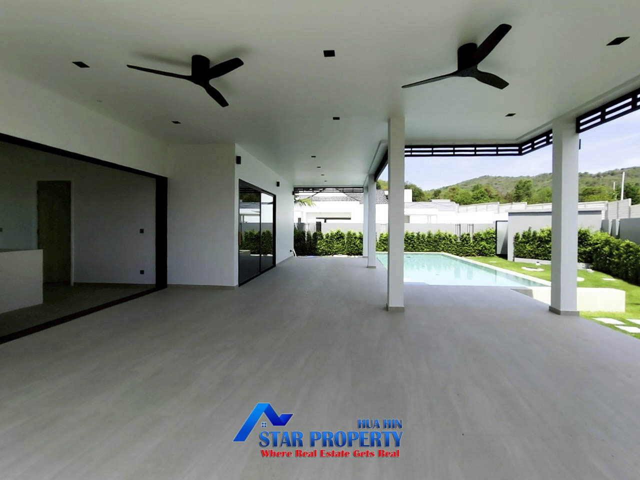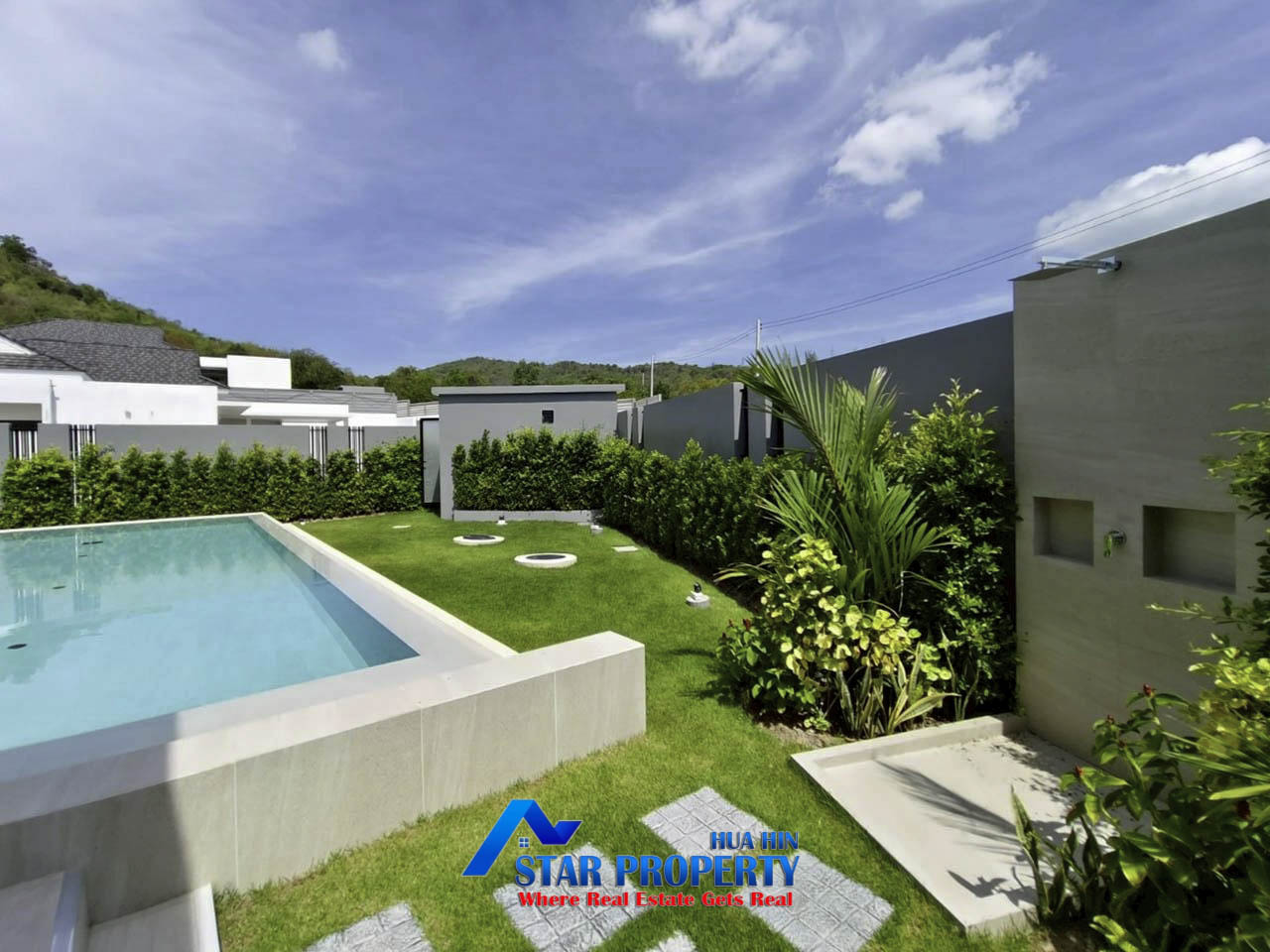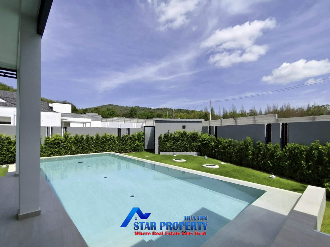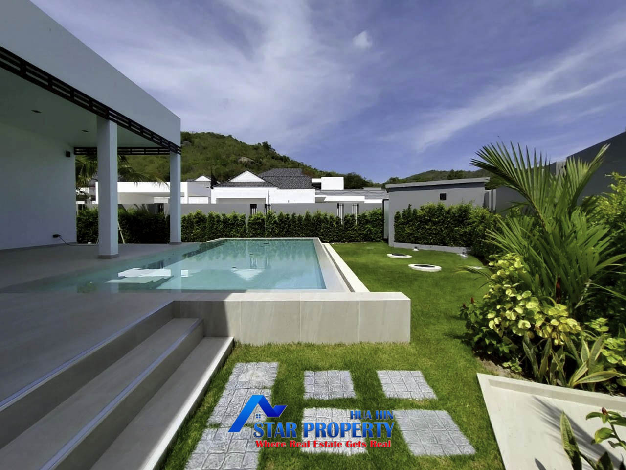 Nestled within the sought-after Sivana Hills community on Soi 126, this beautifully enlarged and upgraded 3-bedroom pool villa offers modern luxury living just 15 minutes from Bluport and 10 minutes from Sai Noi Beach. Completed in early 2025, this particular villa stands out with substantial enhancements, including a significantly expanded living area, a large covered terrace with BBQ zone, an enlarged 4x10m saltwater pool, and upgraded kitchen and built-in furnishings.