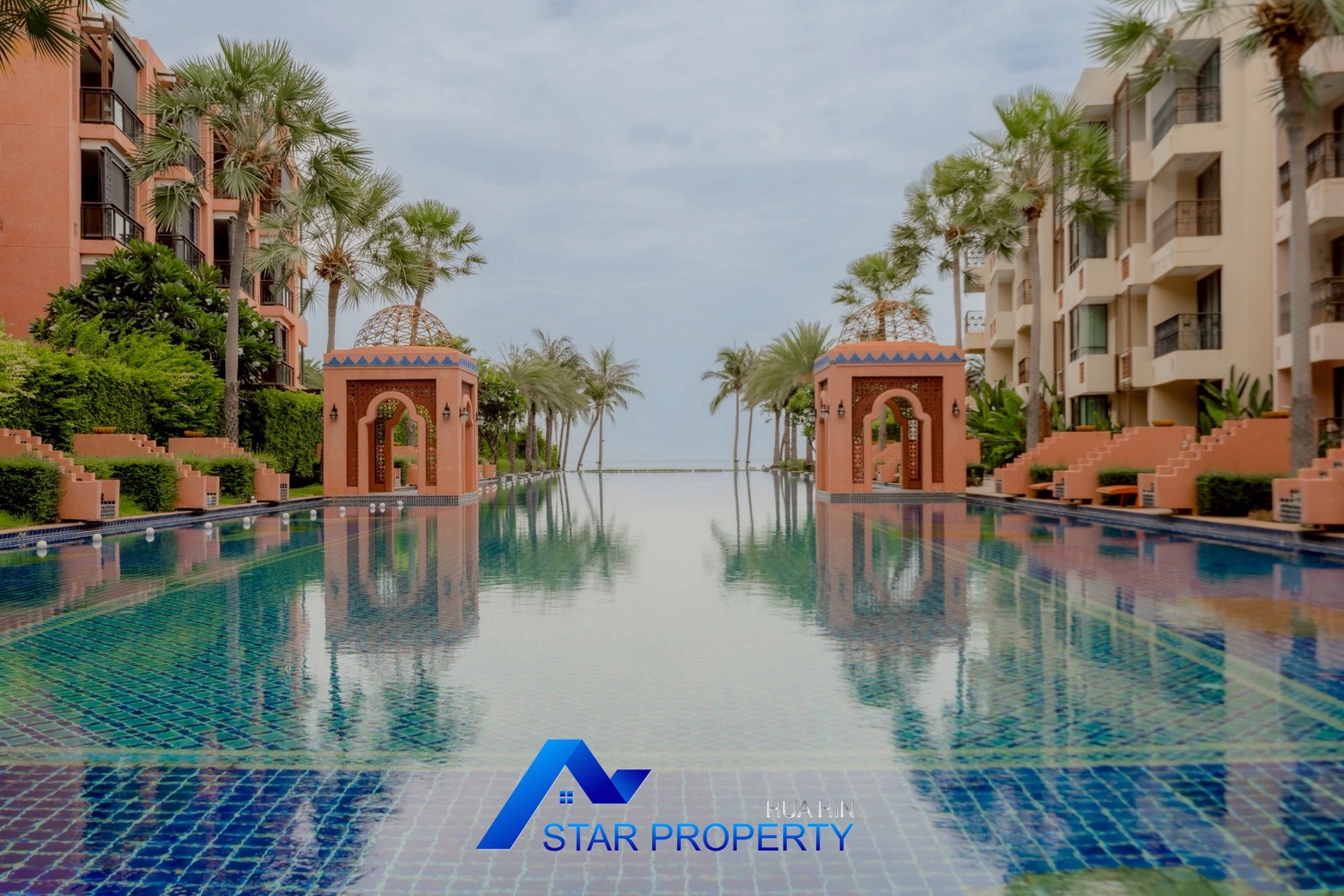 Experience refined beachfront living at Marrakesh Hua Hin Residences, one of Hua Hin’s most exclusive and luxurious beachfront condominium projects. Perfectly located in the heart of Hua Hin, this iconic development boasts a stunning 90-meter private beachfront and five-star resort-style atmosphere.