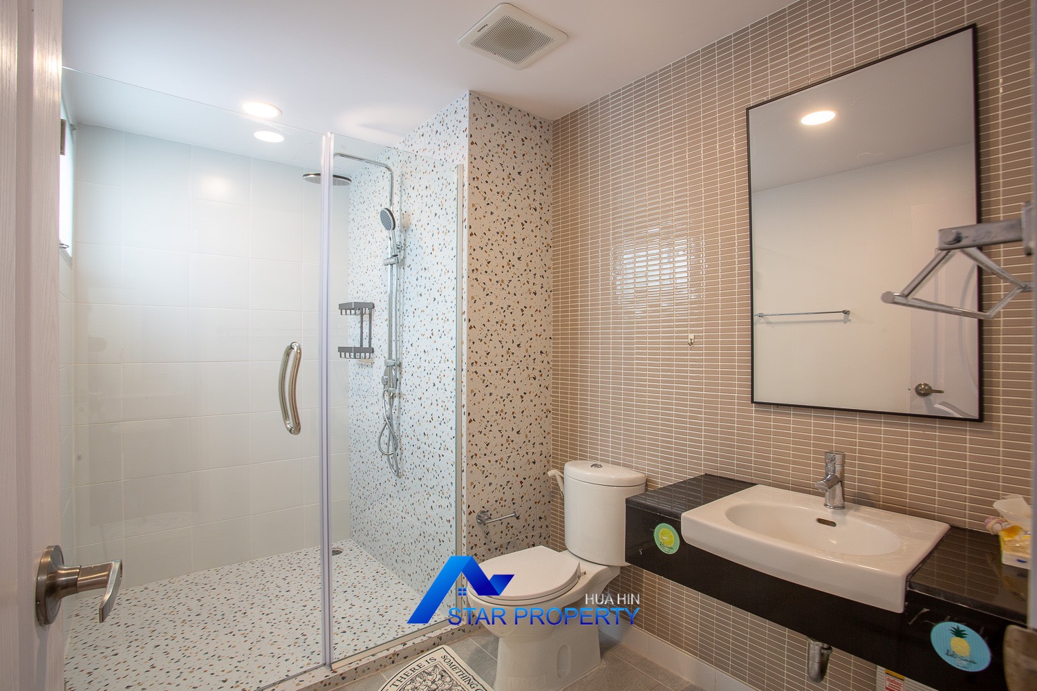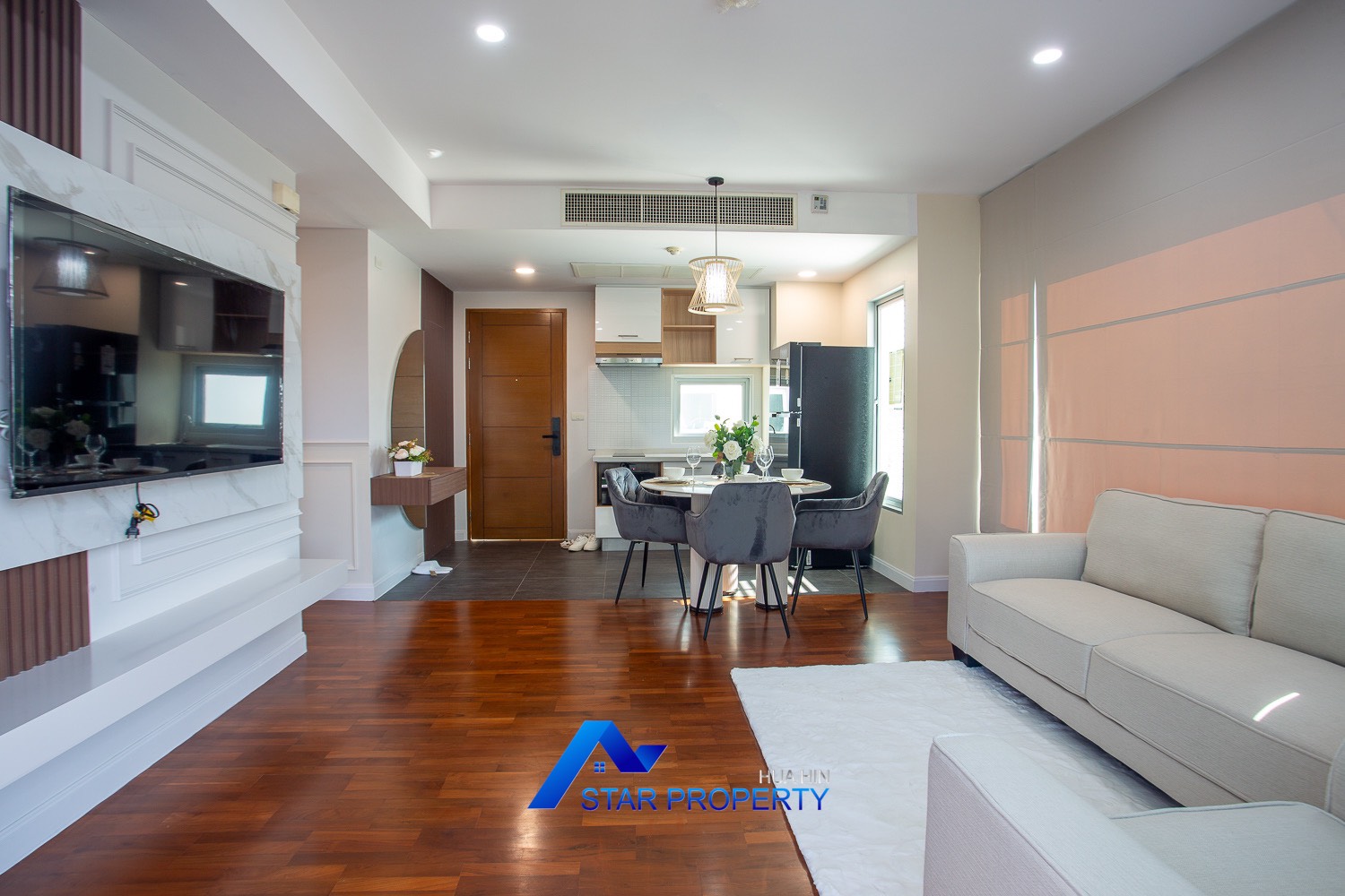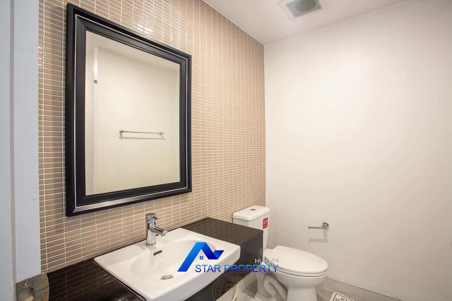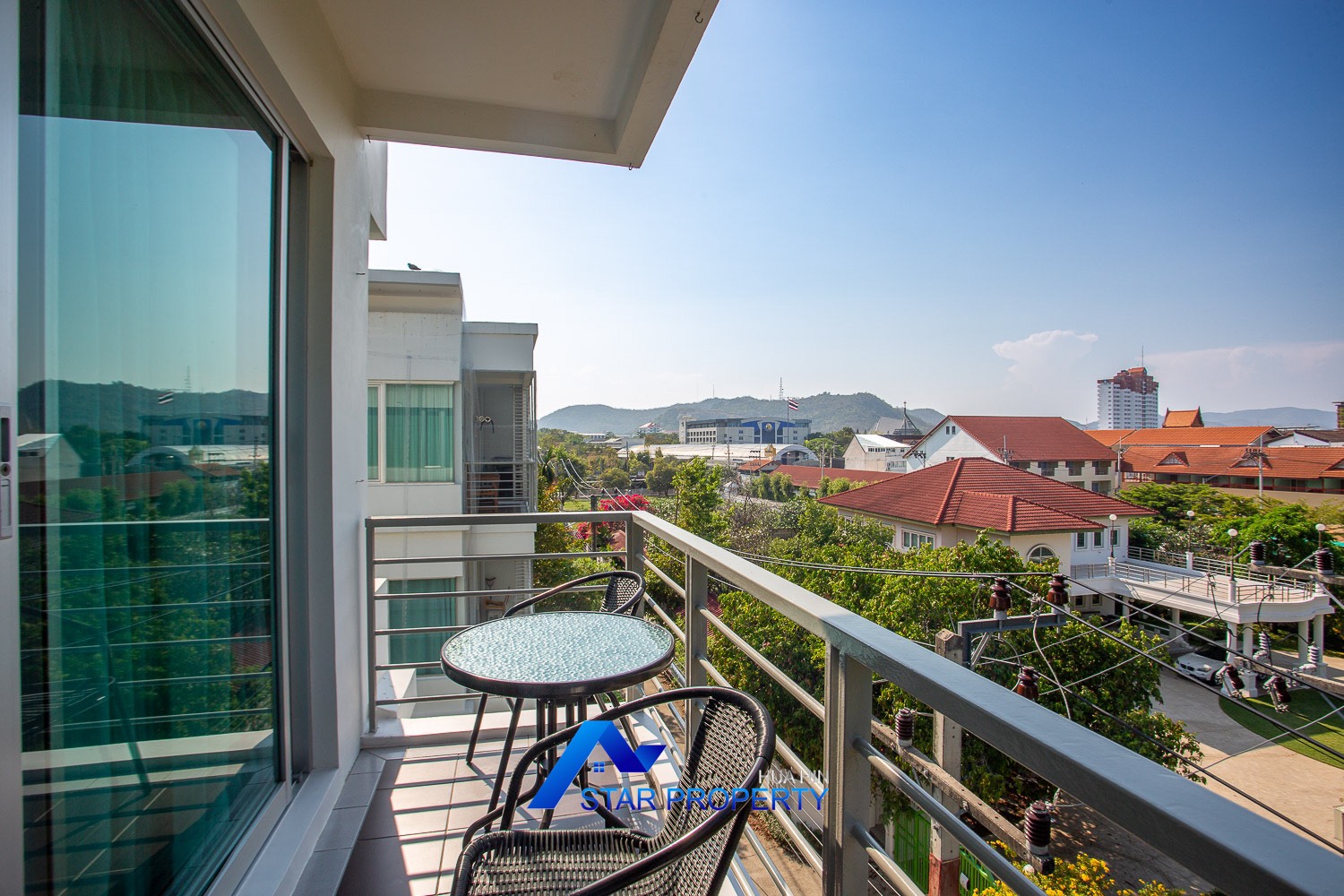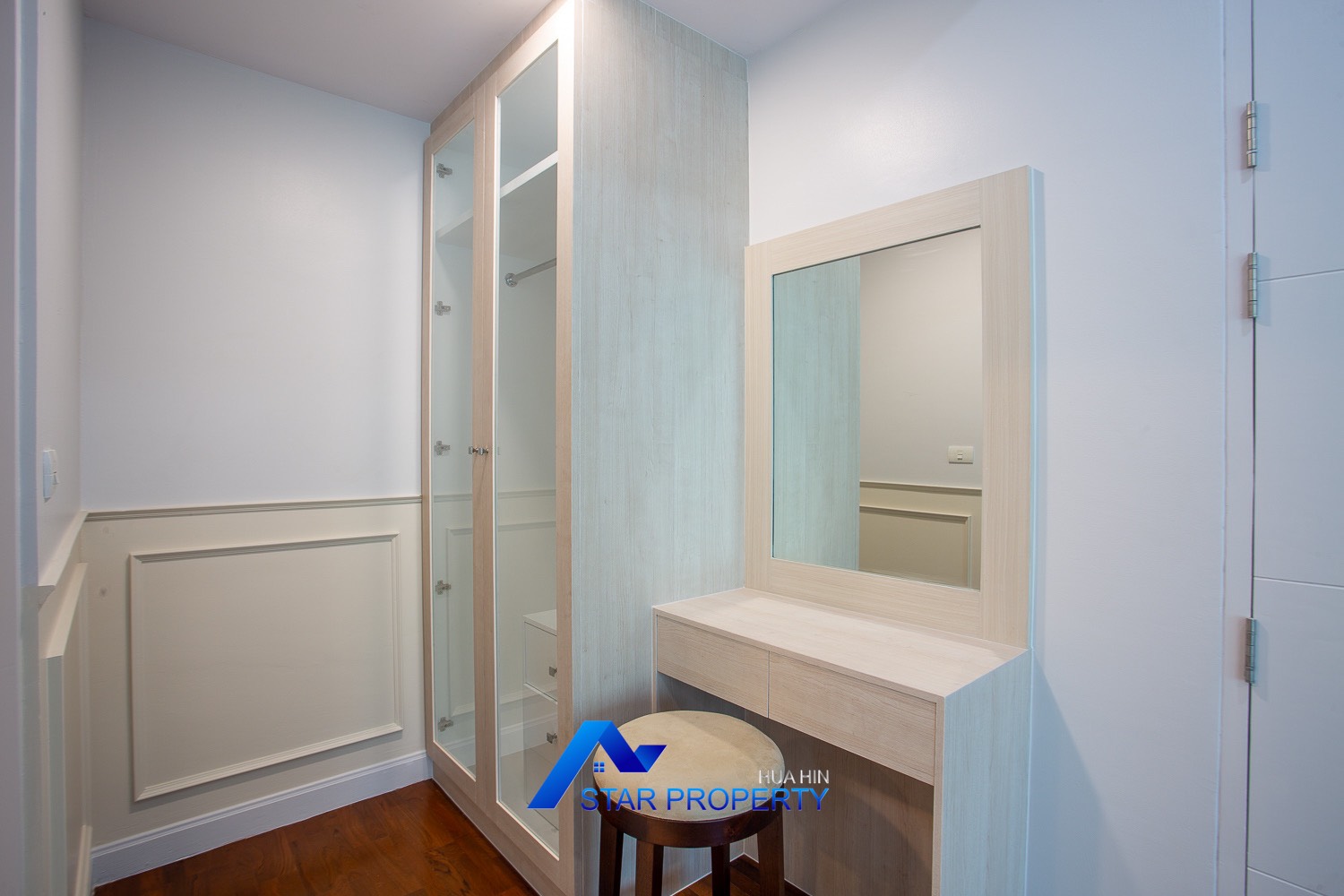 A Condominium in downtown Hua Hin, opposite Market Village shopping center, Low density Units with total 93 units. Direct walkway to the most beautiful beach in Hua Hin. This corner unit consists of 2 bedrooms and 2 bathrooms‚ fully furnished, 4th floor, with living area 75.17 sqm., an open plan living/dining/kitchen area‚ which has sliding patio doors to the private balcony with city view. This property is one not to be missed!!