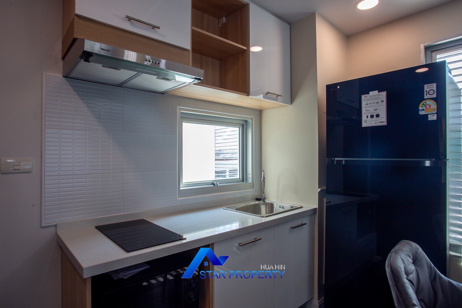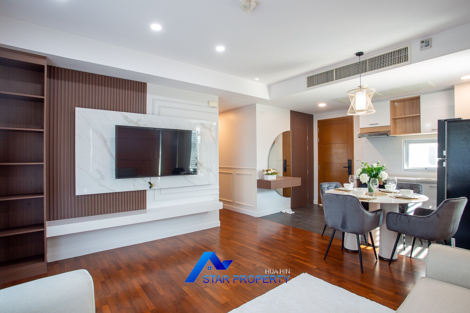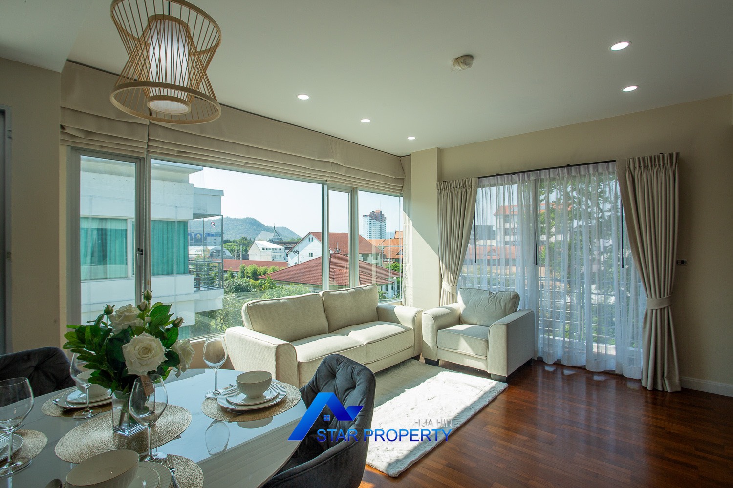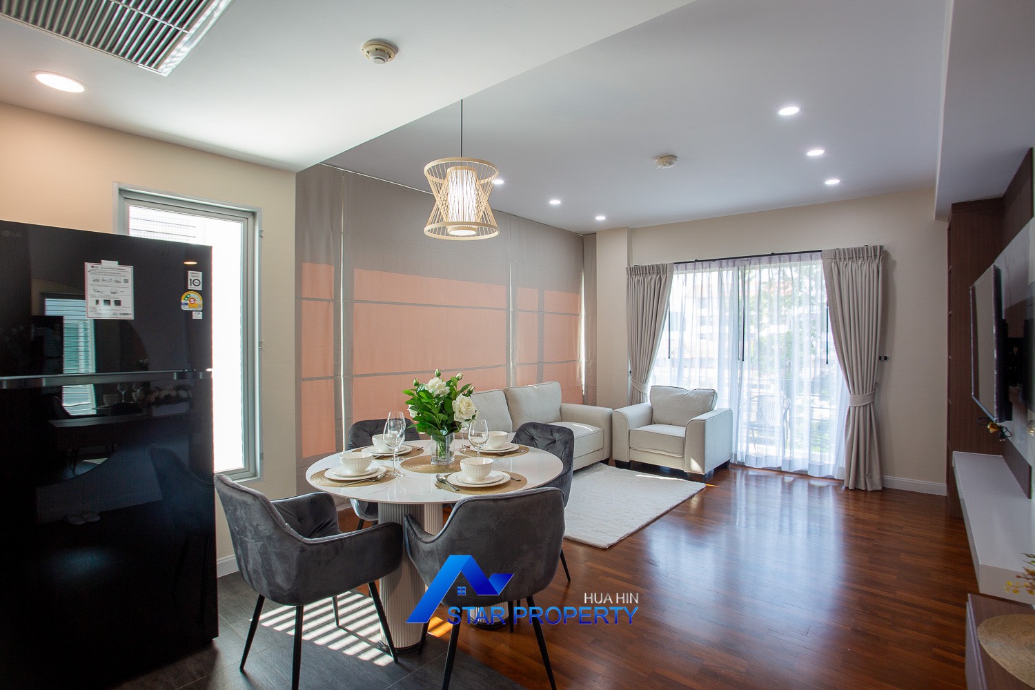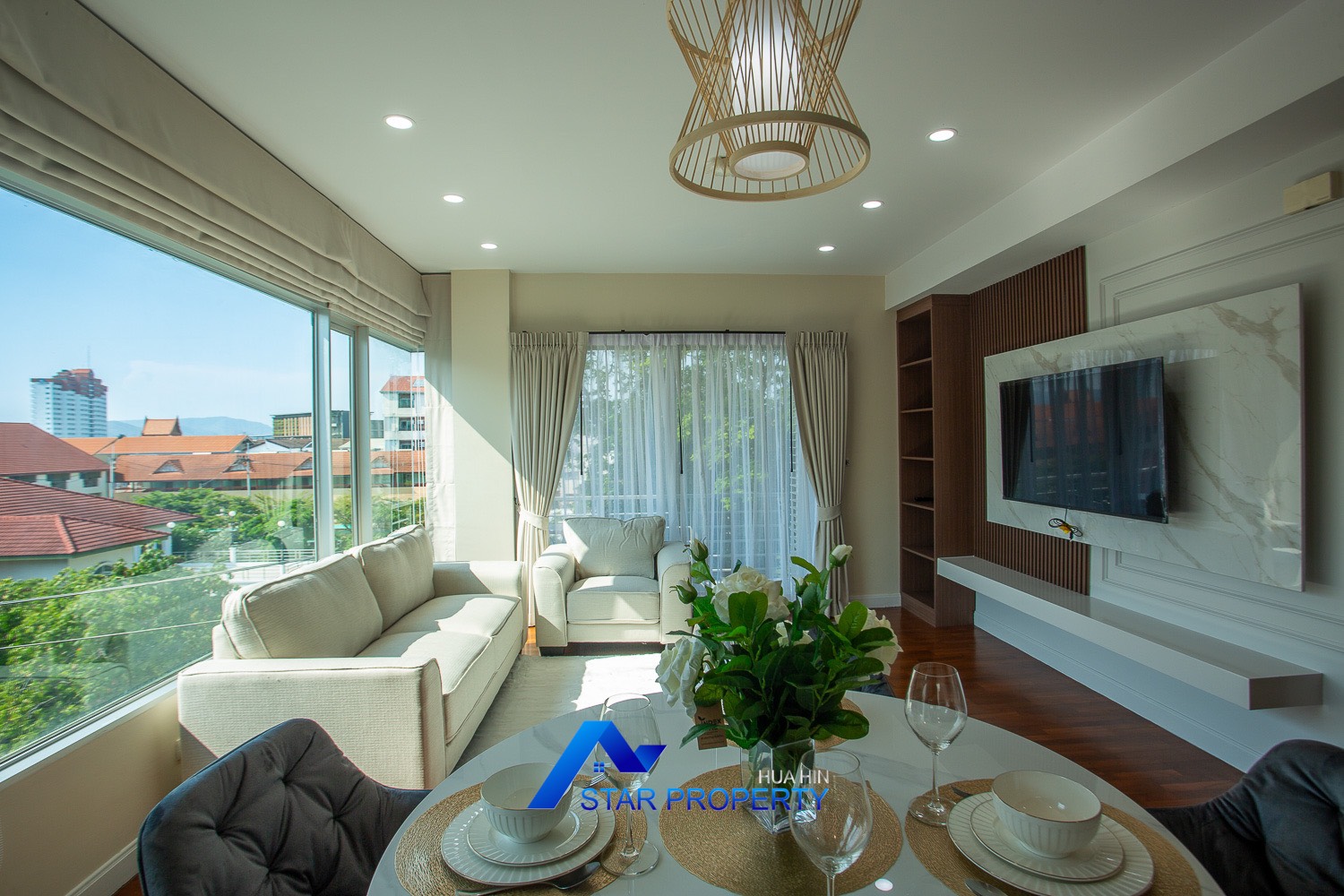 A Condominium in downtown Hua Hin, opposite Market Village shopping center, Low density Units with total 93 units. Direct walkway to the most beautiful beach in Hua Hin. This corner unit consists of 2 bedrooms and 2 bathrooms‚ fully furnished, 4th floor, with living area 75.17 sqm., an open plan living/dining/kitchen area‚ which has sliding patio doors to the private balcony with city view. This property is one not to be missed!!