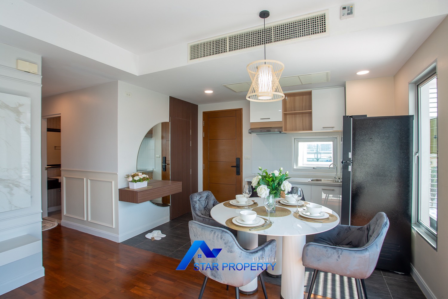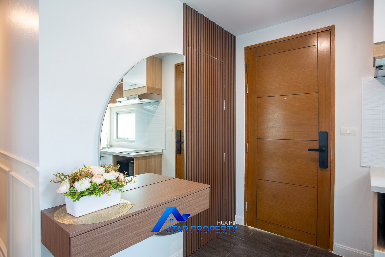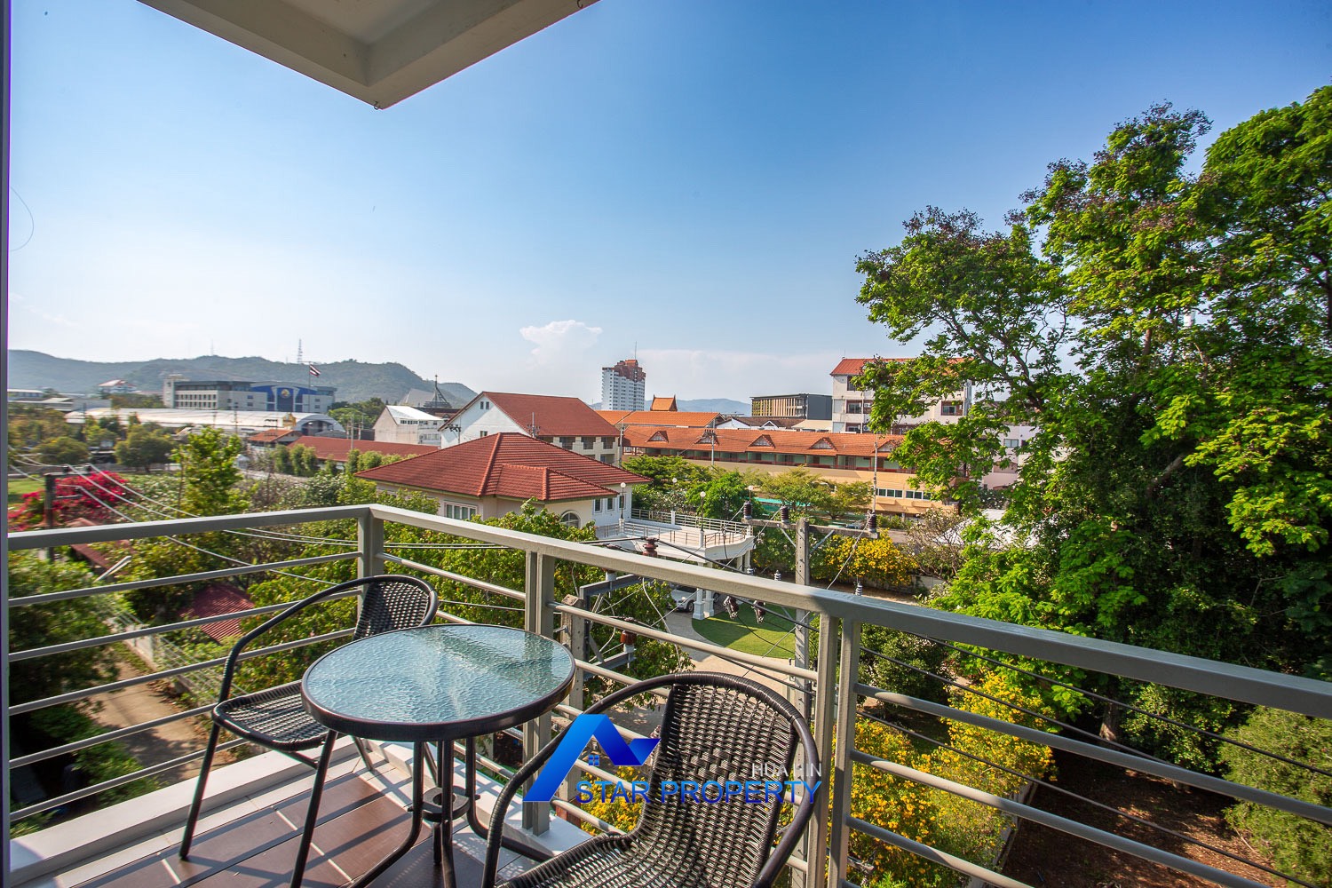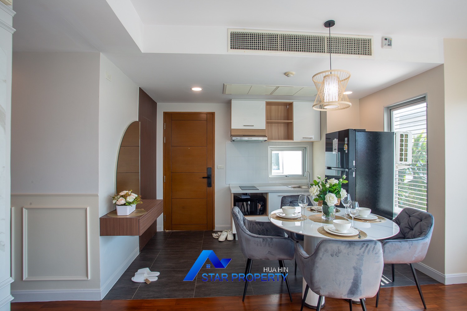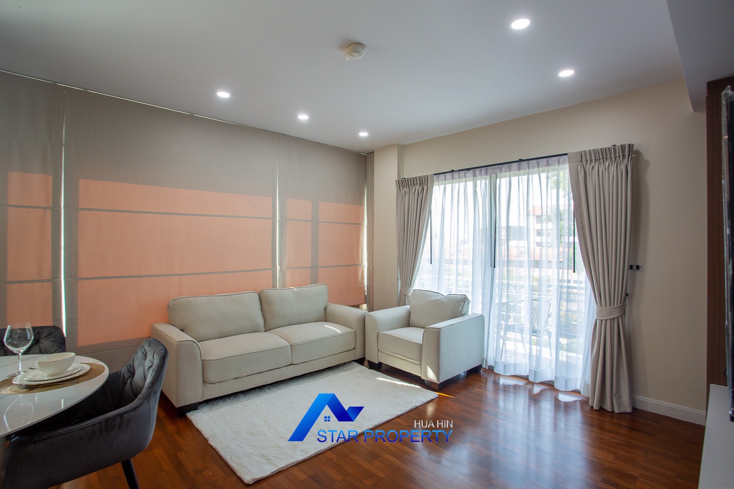 A Condominium in downtown Hua Hin, opposite Market Village shopping center, Low density Units with total 93 units. Direct walkway to the most beautiful beach in Hua Hin. This corner unit consists of 2 bedrooms and 2 bathrooms‚ fully furnished, 4th floor, with living area 75.17 sqm., an open plan living/dining/kitchen area‚ which has sliding patio doors to the private balcony with city view. This property is one not to be missed!!