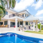 Outstanding 5 Bedroom Pool Villa for sale on a spacious elevated, double plot with sea views and Mountains directly behind with great views to the rear. The Villa has 3 bedrooms in the main house and a completed detached 1 bedroom guest villa with bedroom, en-suite bathroom, kitchen and living area as well as a private covered terrace and sun deck and positioned conveniently next to the pool which separates the guest house and the main house.