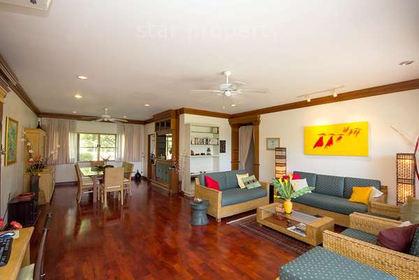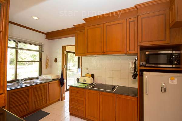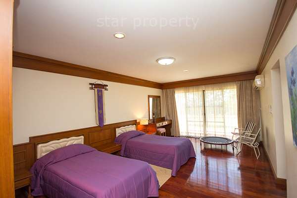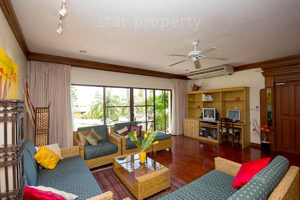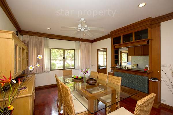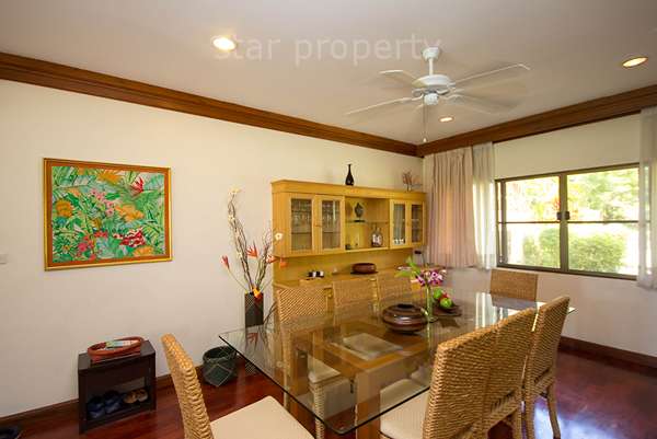 This property is extremely spacious and well appointed. Renovated to a high level of comfort and convenience, it is specifically designed for a quiet but luxurious holiday. All the rooms are well fitted out, providing a base from which to enjoy an away-from-it-all holiday in comfortable surroundings. In addition to the property’s own resources, guests have access to all the golf club’s facilities, including restaurants, swimming pool, sports centre and massage options. One can combine the home-style living of a self-catering holiday with all the facilities of a 5-star hotel. The property retains its Thai atmosphere, with genuine teak and rattan furniture throughout.