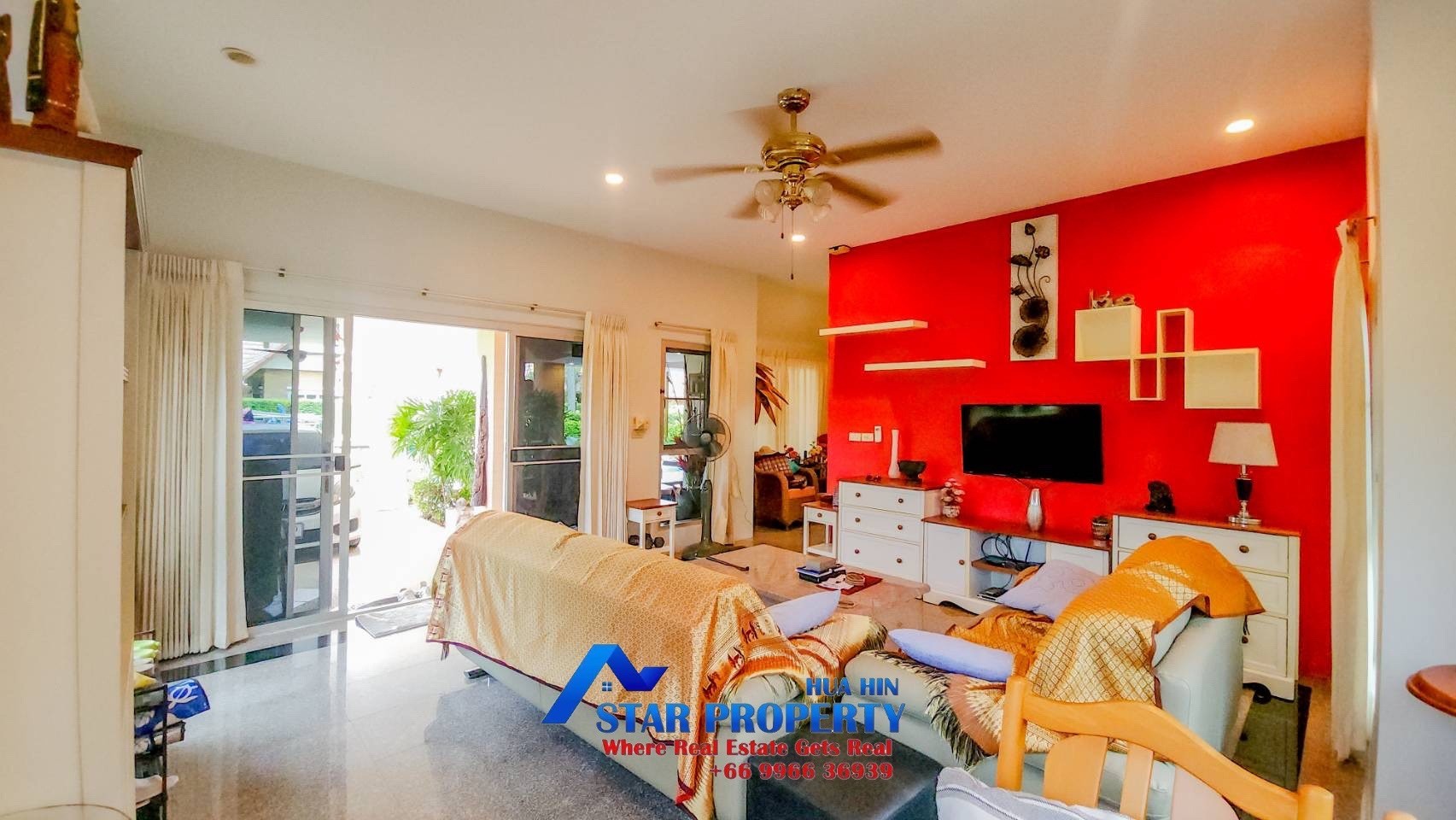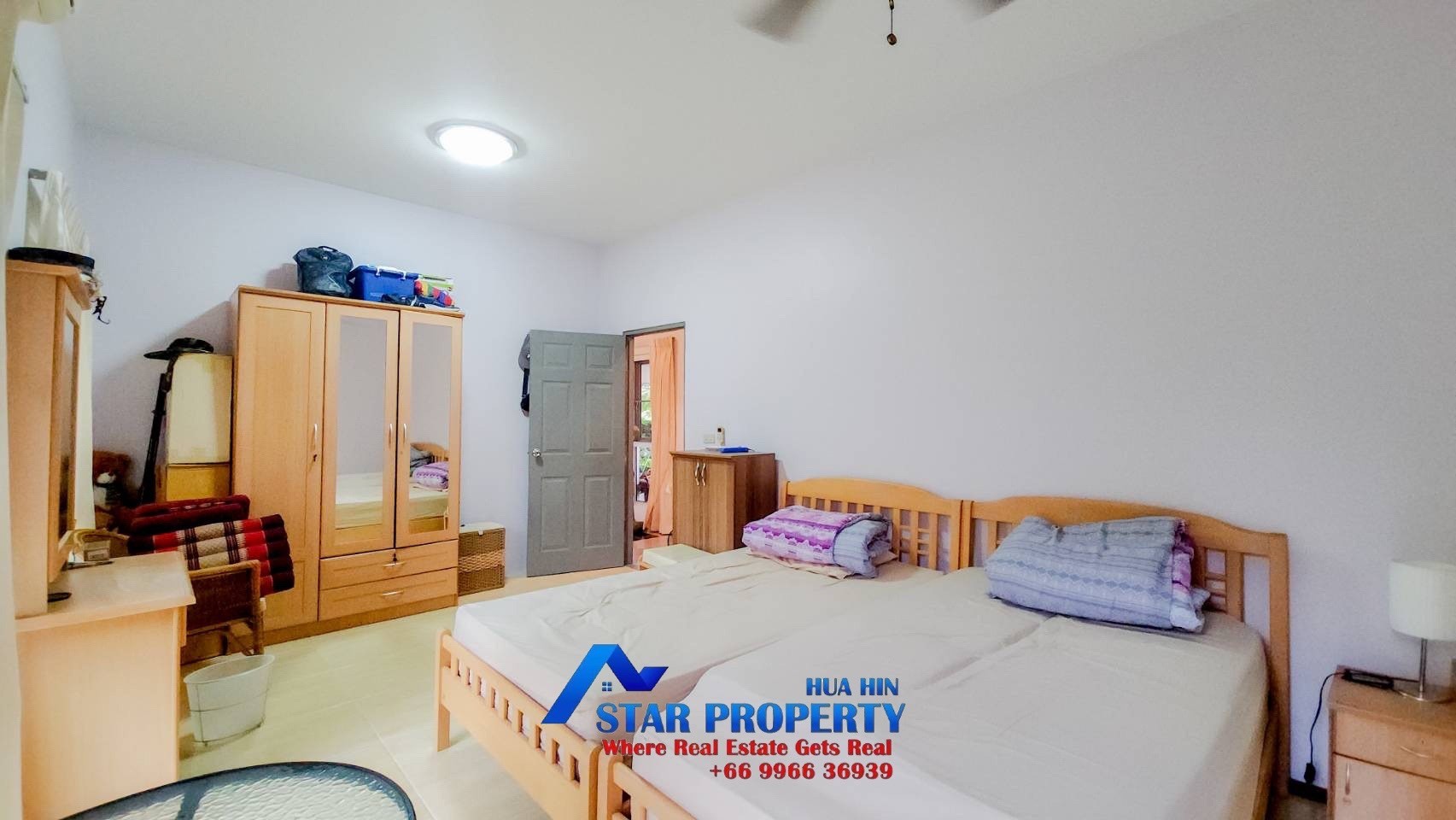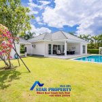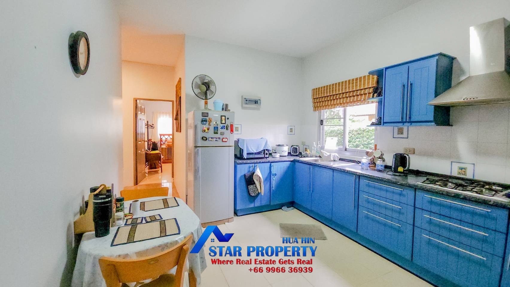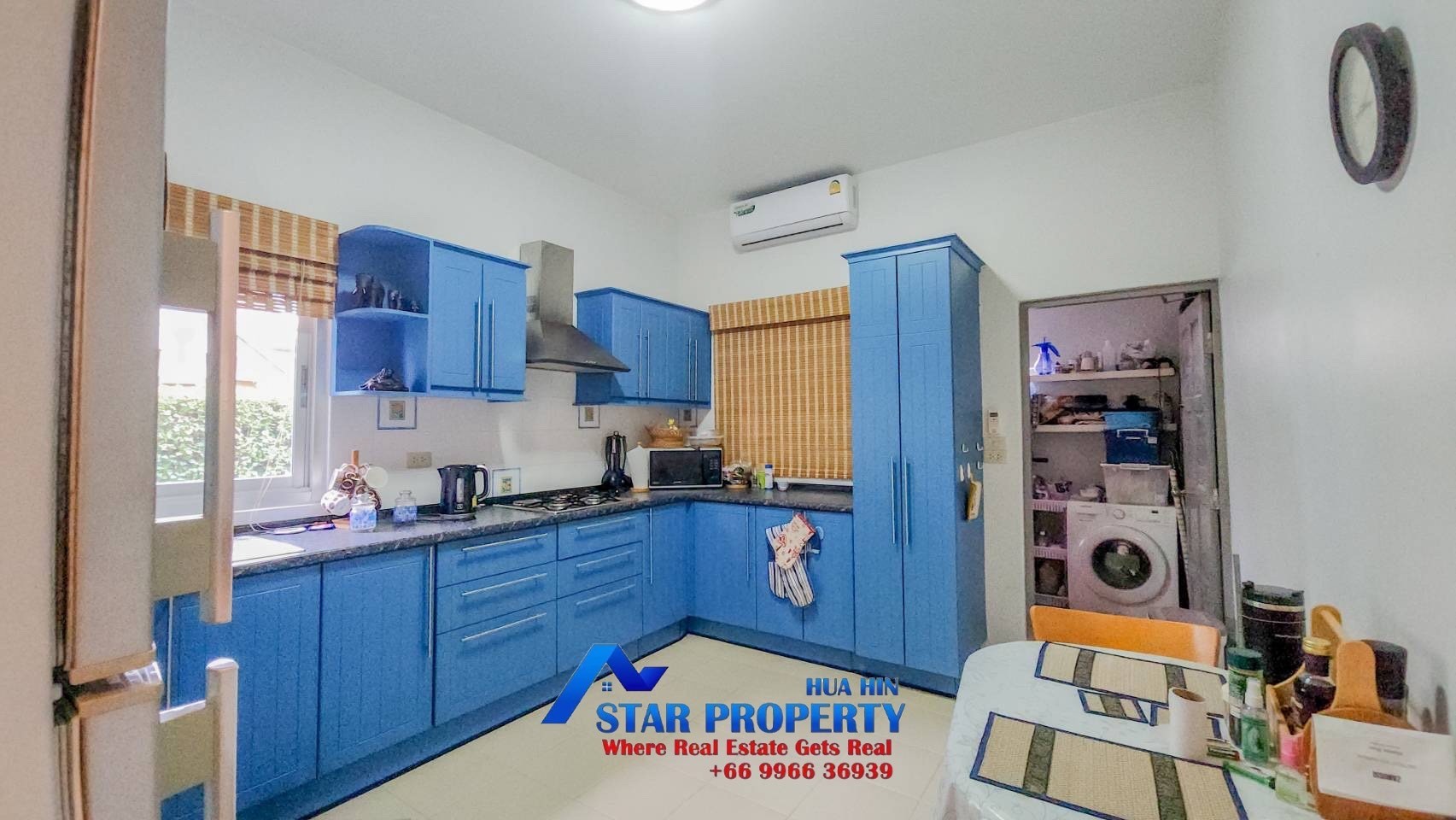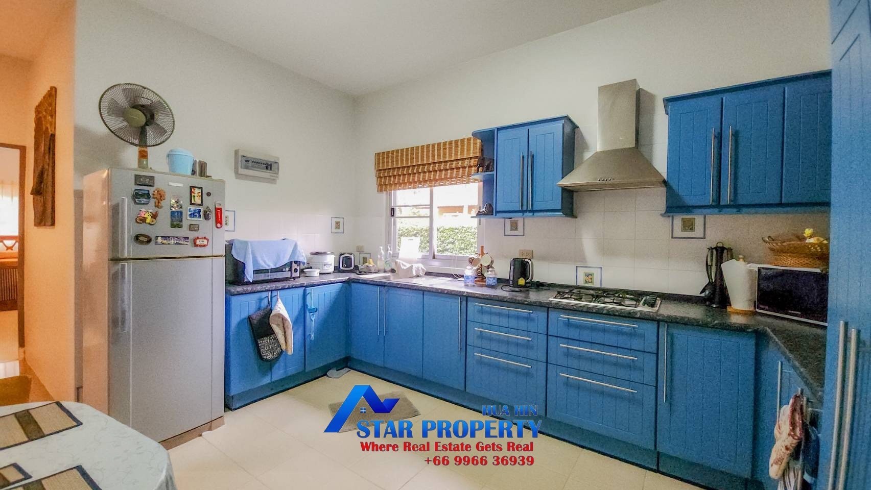 Pool villa in a beautiful location, only 6 km from the city center and beach, located in Hua Hin soi 112 south of Huahin. There has an large outdoor area, a private swimming pool. The villa has 2 Bedrooms and 2 Bathrooms, and storage room. The living area 180 sq.m. and land area 480 sq.m (120 sq.w). The European-style kitchen, air condition in every room. Transfer ownership 50/50. 24 hours security.