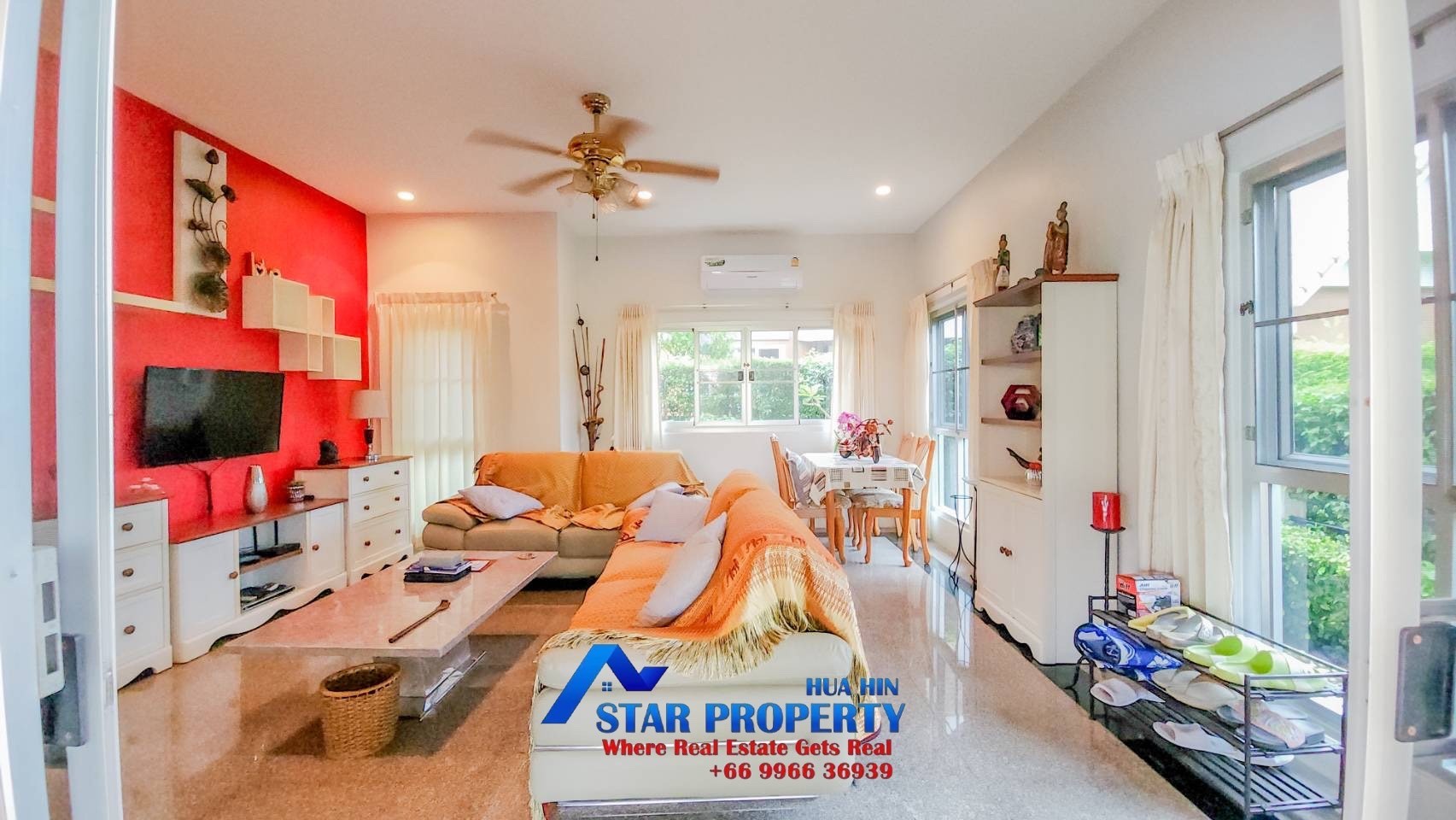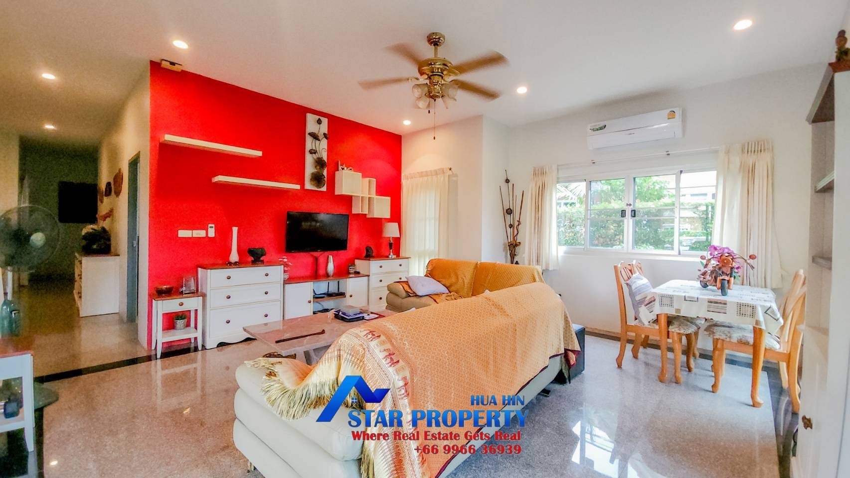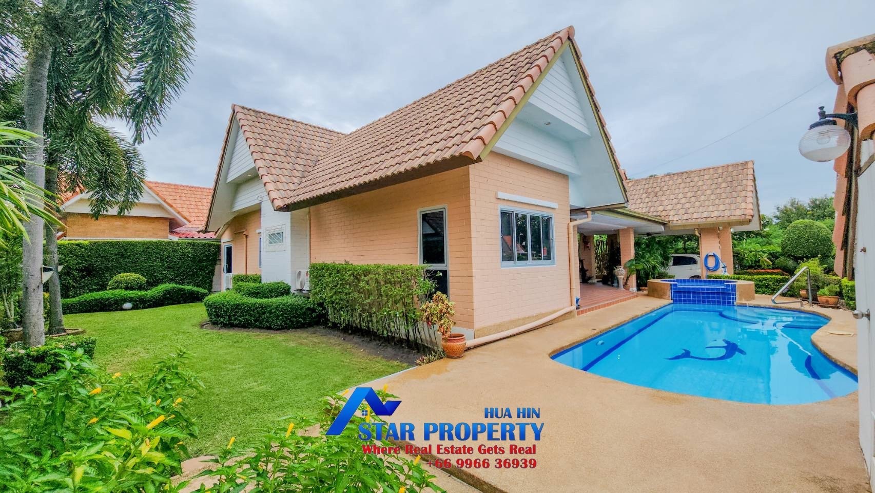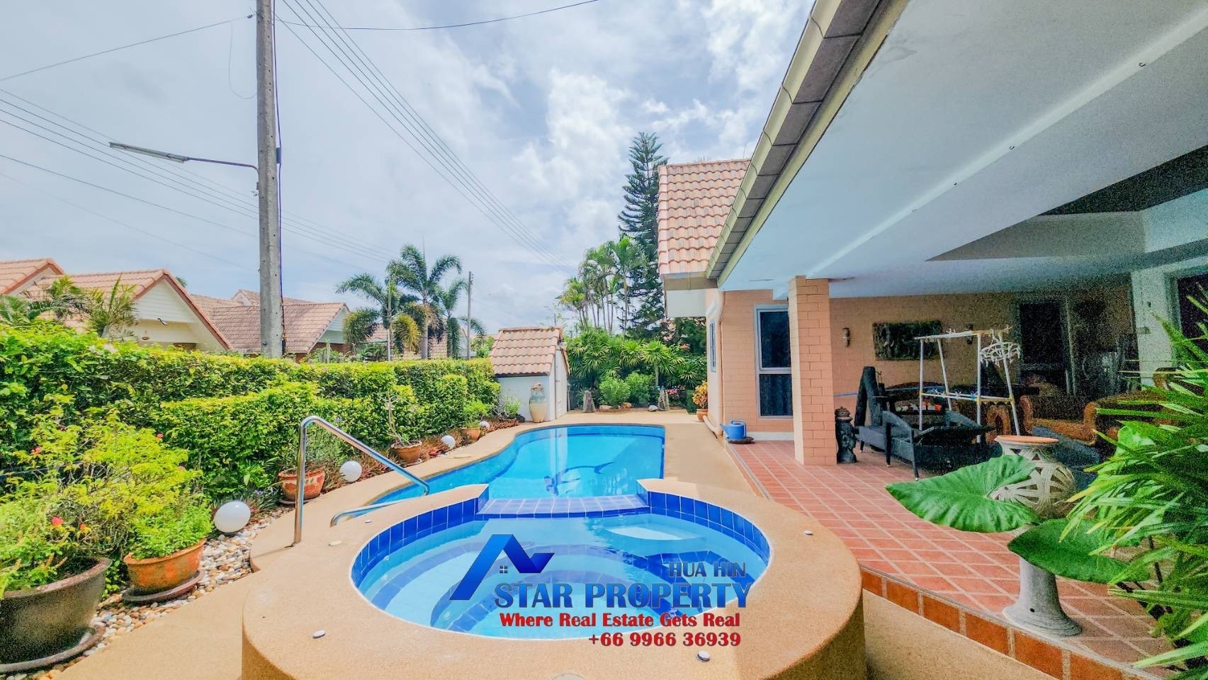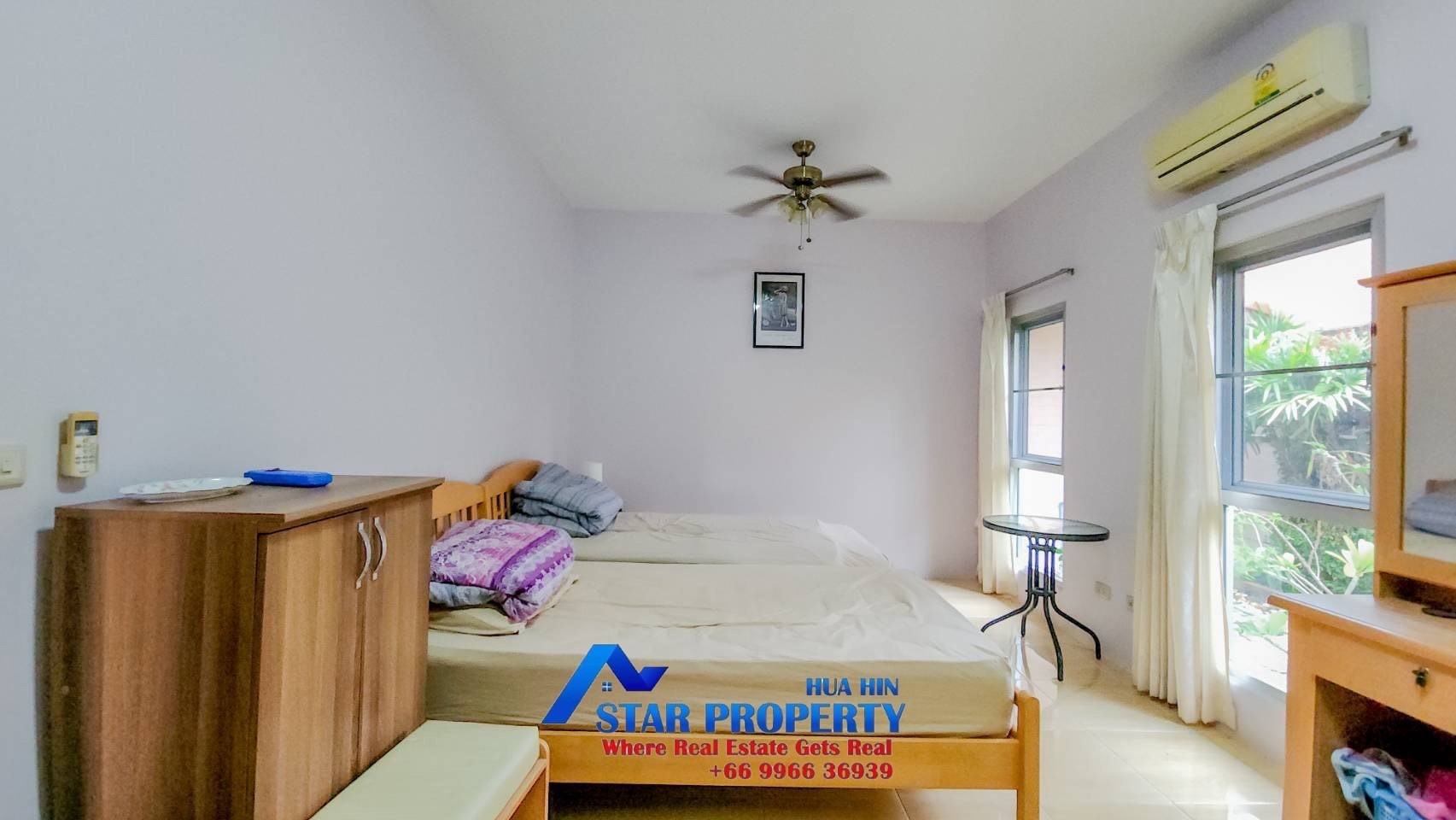 Pool villa in a beautiful location, only 6 km from the city center and beach, located in Hua Hin soi 112 south of Huahin. There has an large outdoor area, a private swimming pool. The villa has 2 Bedrooms and 2 Bathrooms, and storage room. The living area 180 sq.m. and land area 480 sq.m (120 sq.w). The European-style kitchen, air condition in every room. Transfer ownership 50/50. 24 hours security.