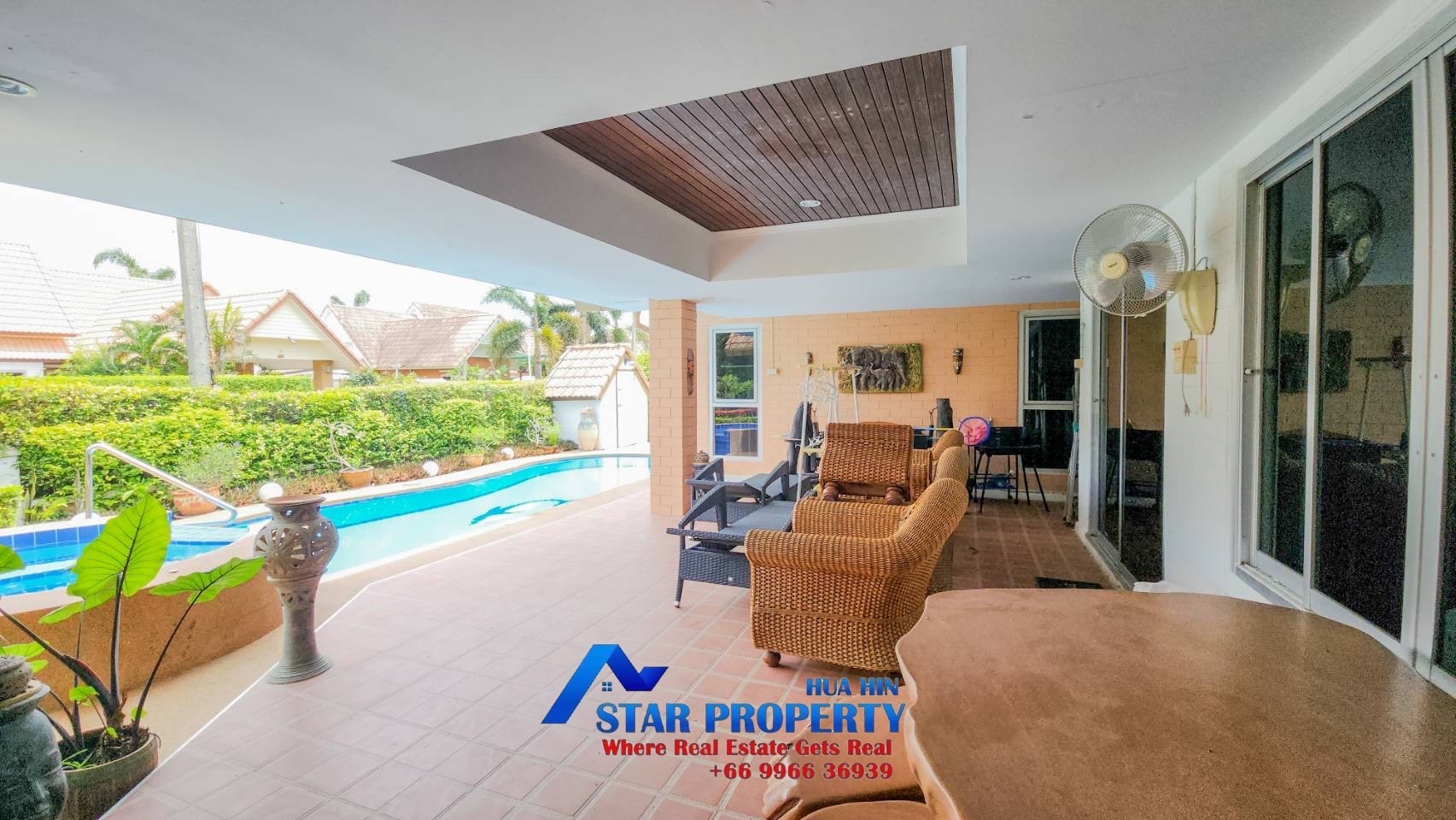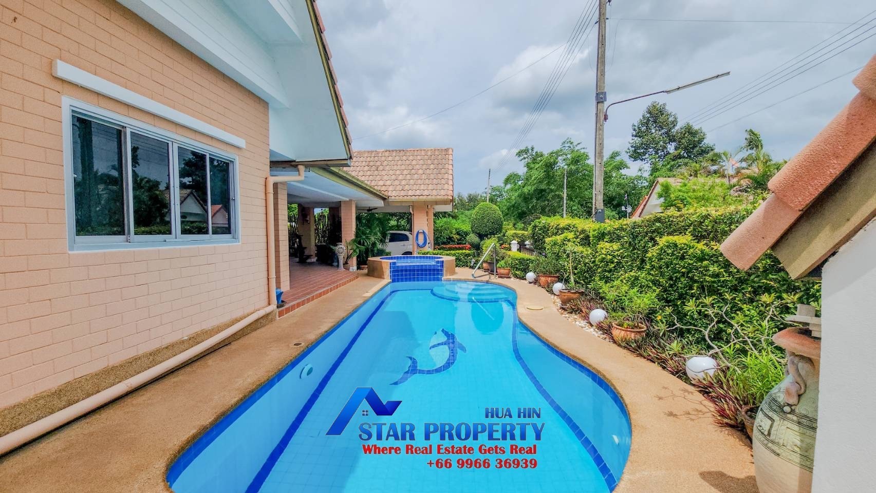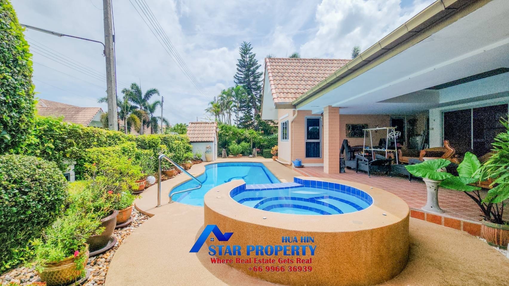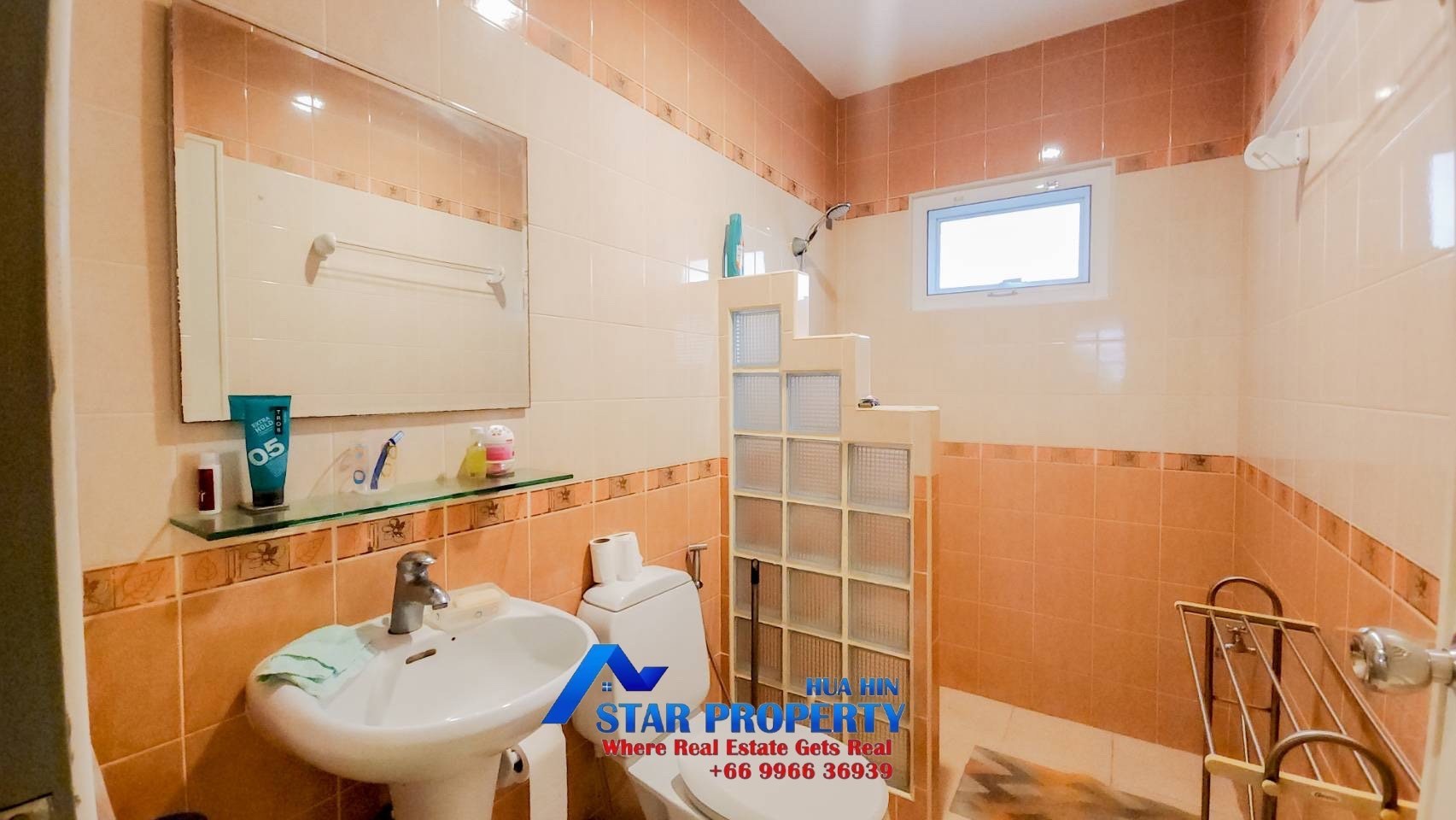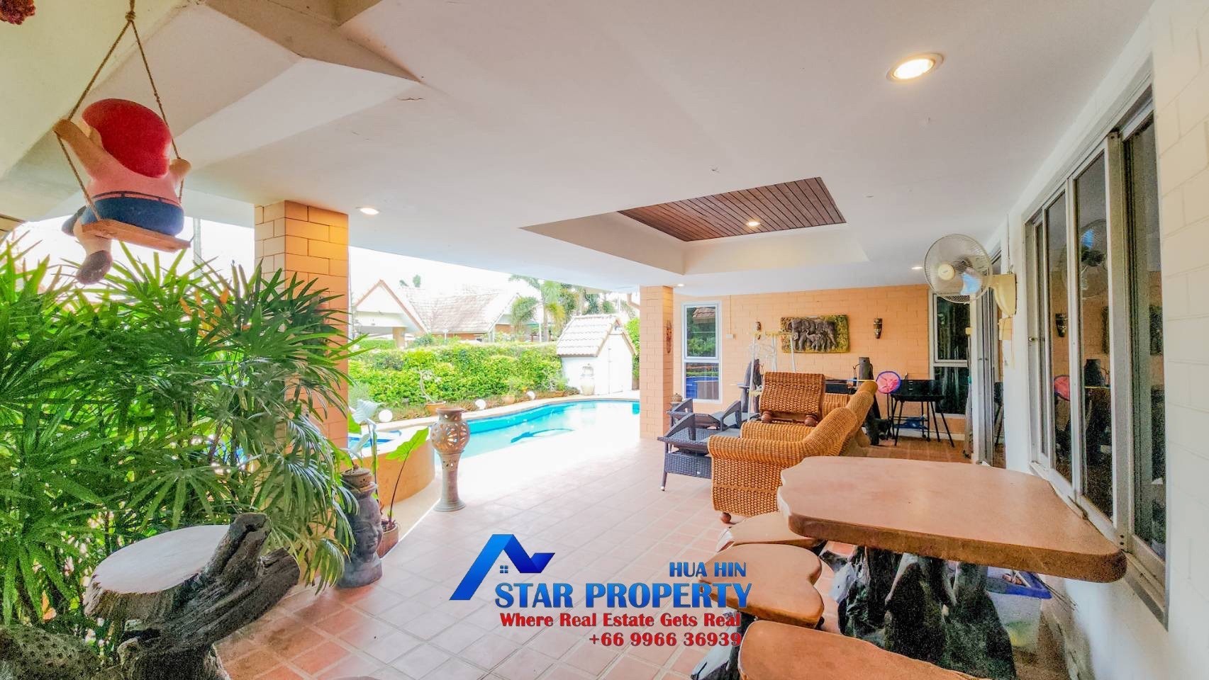 Pool villa in a beautiful location, only 6 km from the city center and beach, located in Hua Hin soi 112 south of Huahin. There has an large outdoor area, a private swimming pool. The villa has 2 Bedrooms and 2 Bathrooms, and storage room. The living area 180 sq.m. and land area 480 sq.m (120 sq.w). The European-style kitchen, air condition in every room. Transfer ownership 50/50. 24 hours security.