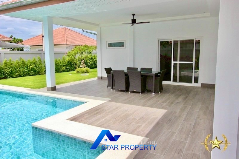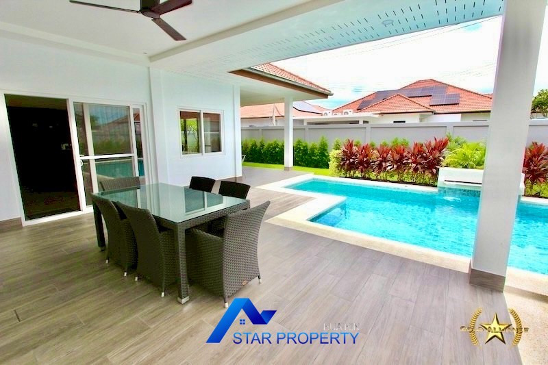 Brand new luxury Hua Hin pool villa for sale located in the prestigious Mali Boutique development off Soi 112, just minutes from downtown Hua Hin, international schools, golf courses, and Bluport shopping mall. Offering the perfect balance of comfort, elegance, and practicality, this villa is ideal for both full-time living and as a holiday retreat.