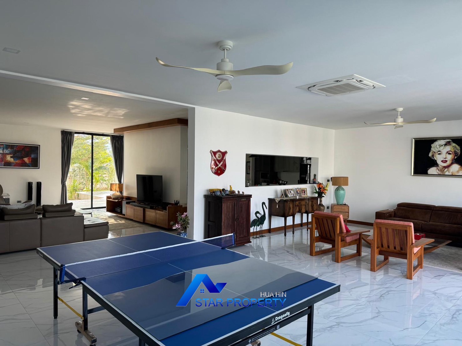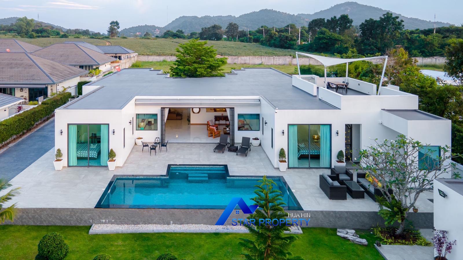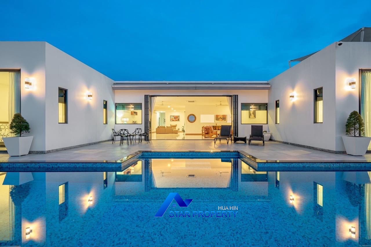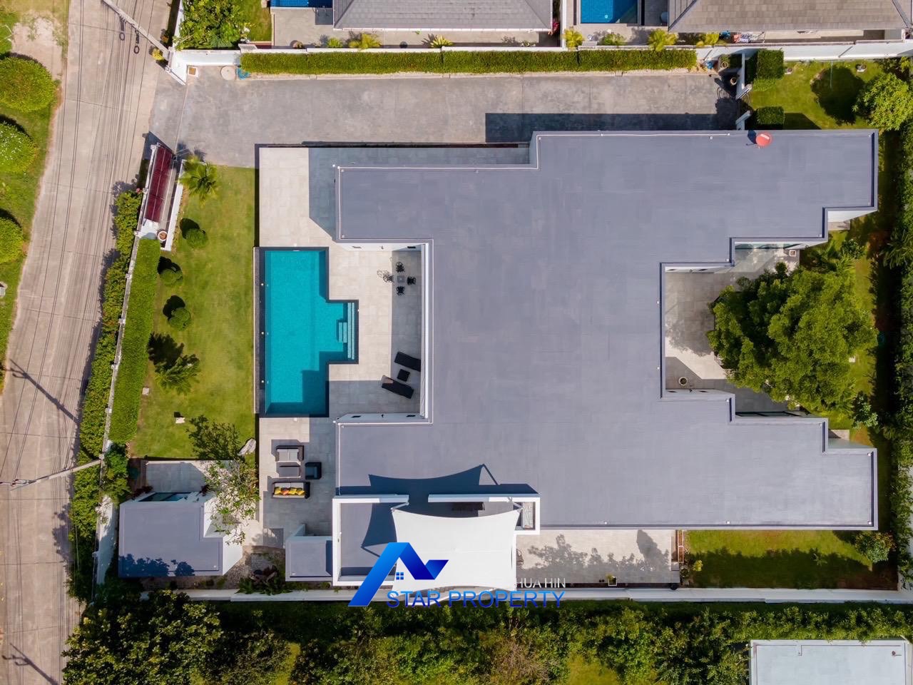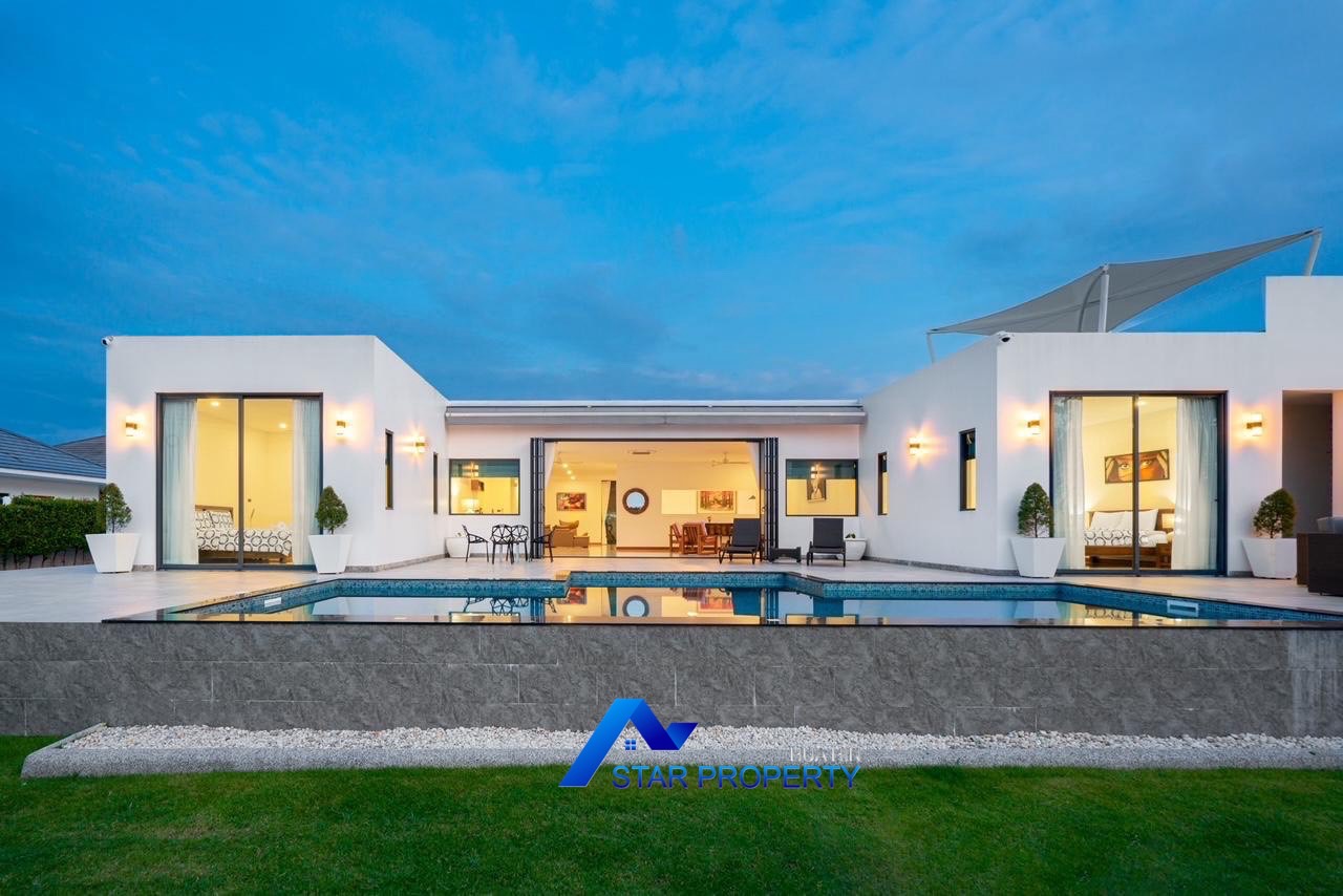 This model villa has SIX double bedrooms, all with their own ensuite bathrooms; with an extra-large master bedroom with its ensuite bathroom all fitted with high quality fittings. The interior speaks of luxury with a central living room with high-end wall fixtures in the surroundings that open to a stunning infinity pool.