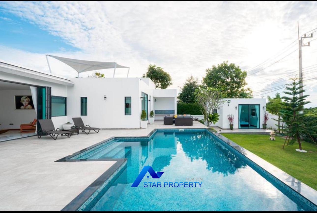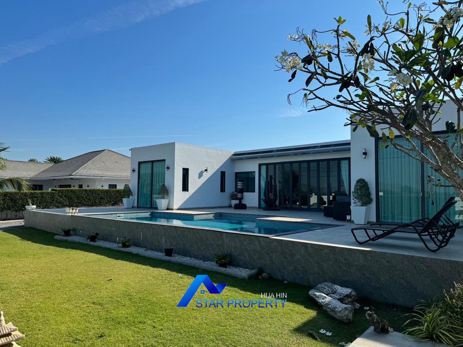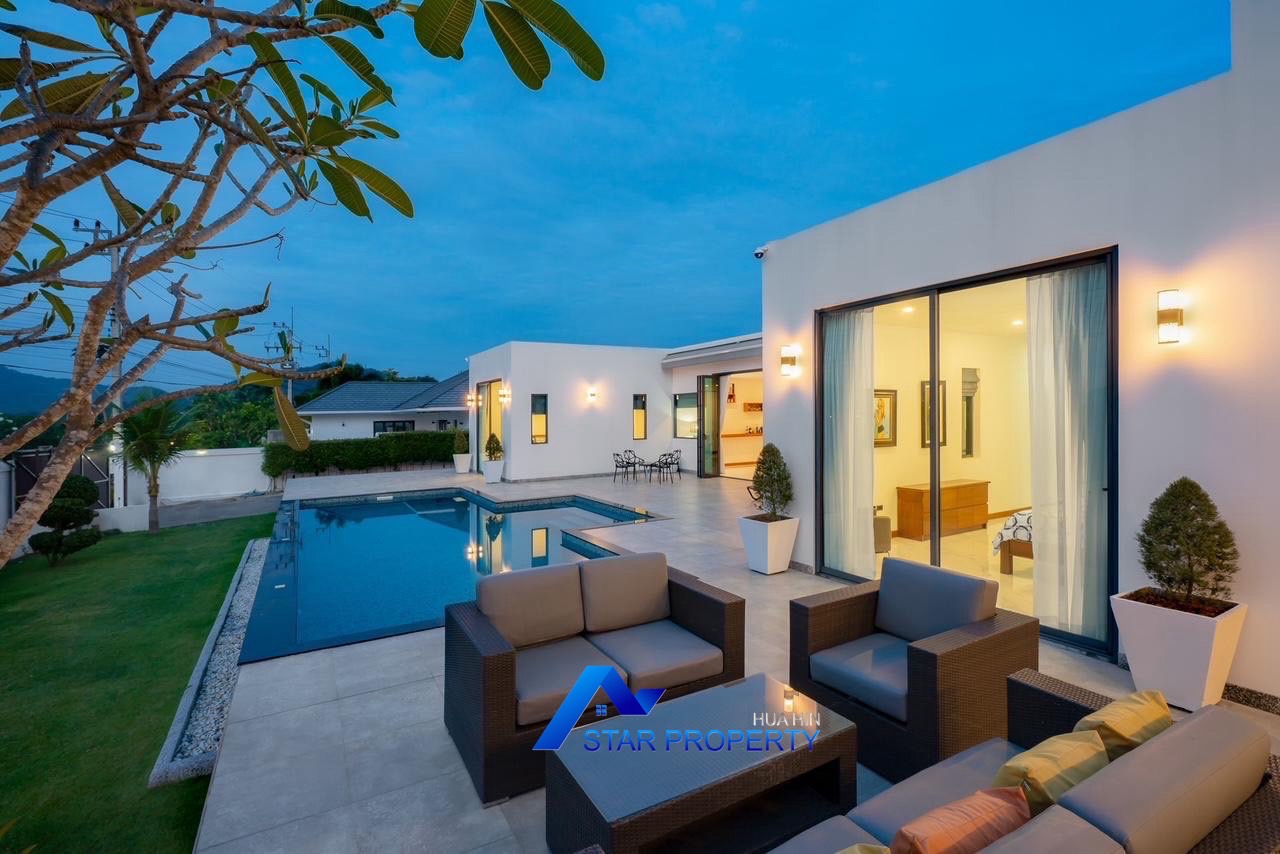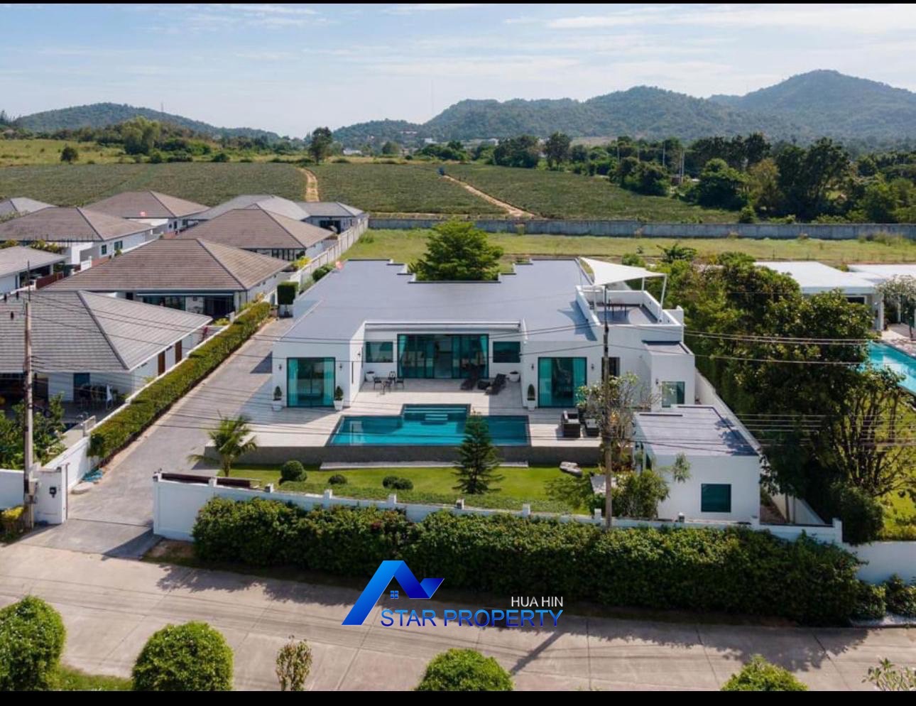 This model villa has SIX double bedrooms, all with their own ensuite bathrooms; with an extra-large master bedroom with its ensuite bathroom all fitted with high quality fittings. The interior speaks of luxury with a central living room with high-end wall fixtures in the surroundings that open to a stunning infinity pool.
