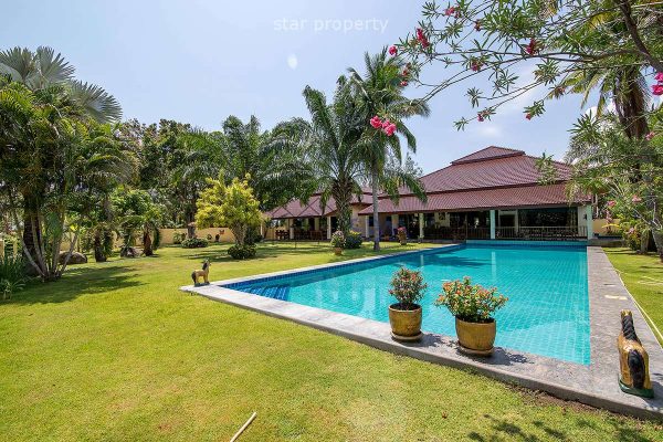 This beautiful 5 bedrooms, 5 bathrooms family home, has an extra large fully equipped European kitchen, open plan living area and large covered terrace. It is the perfect home for entertaining family and friends. Beautiful views around the golf course. The property includes mature gardens and space for a garage or separate guest suite, if desired.