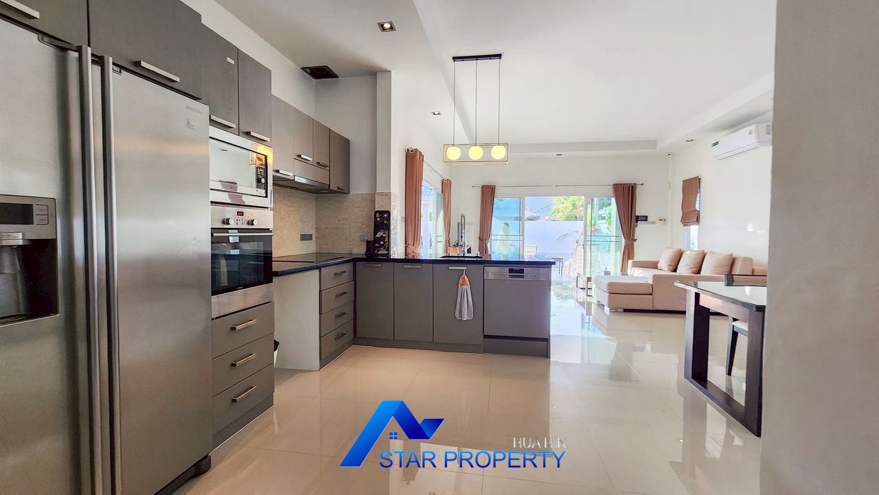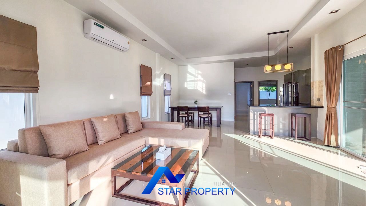 Experience comfortable living in this beautifully renovated private pool villa, located in a quiet residential area along Soi Hua Hin 88, approximately 7 km from Hua Hin town. The location is ideal for those who value privacy and tranquility, while still enjoying convenient access to shopping centers, restaurants, schools, and all essential facilities.