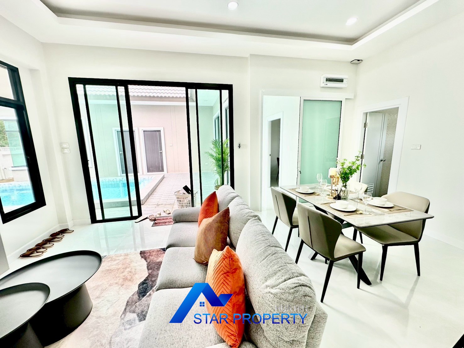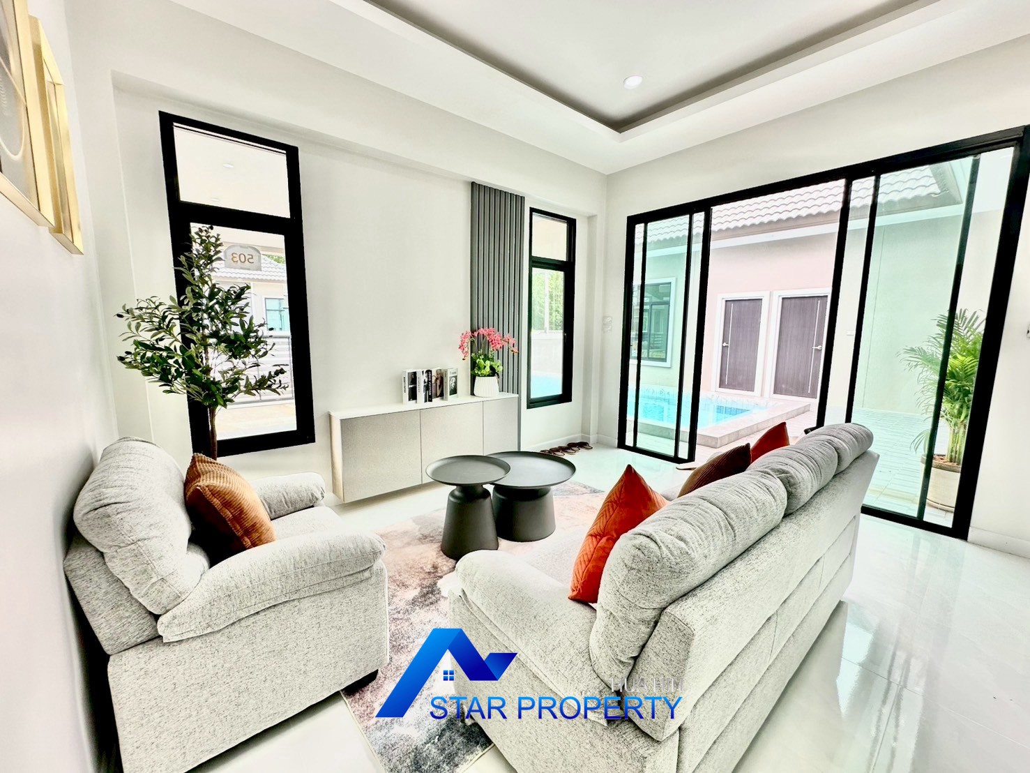 Experience refined tropical living in this beautifully designed modern pool villa, offering privacy, comfort, and a seamless connection to nature. Perfect for full-time living, a holiday home, or a smart investment in Hua Hin.