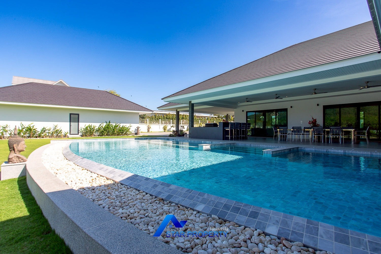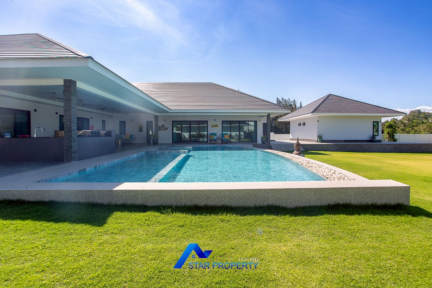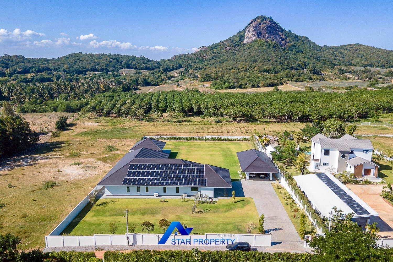 Nestled in a tranquil natural enclave south of Hua Hin, this exceptional private estate represents the pinnacle of self-sufficient luxury living. Designed for discerning owners who value privacy, space, and refined comfort, the villa seamlessly blends resort-style elegance with practical sustainability—ideal for prestigious family living, wellness retreats, or high-end entertaining.