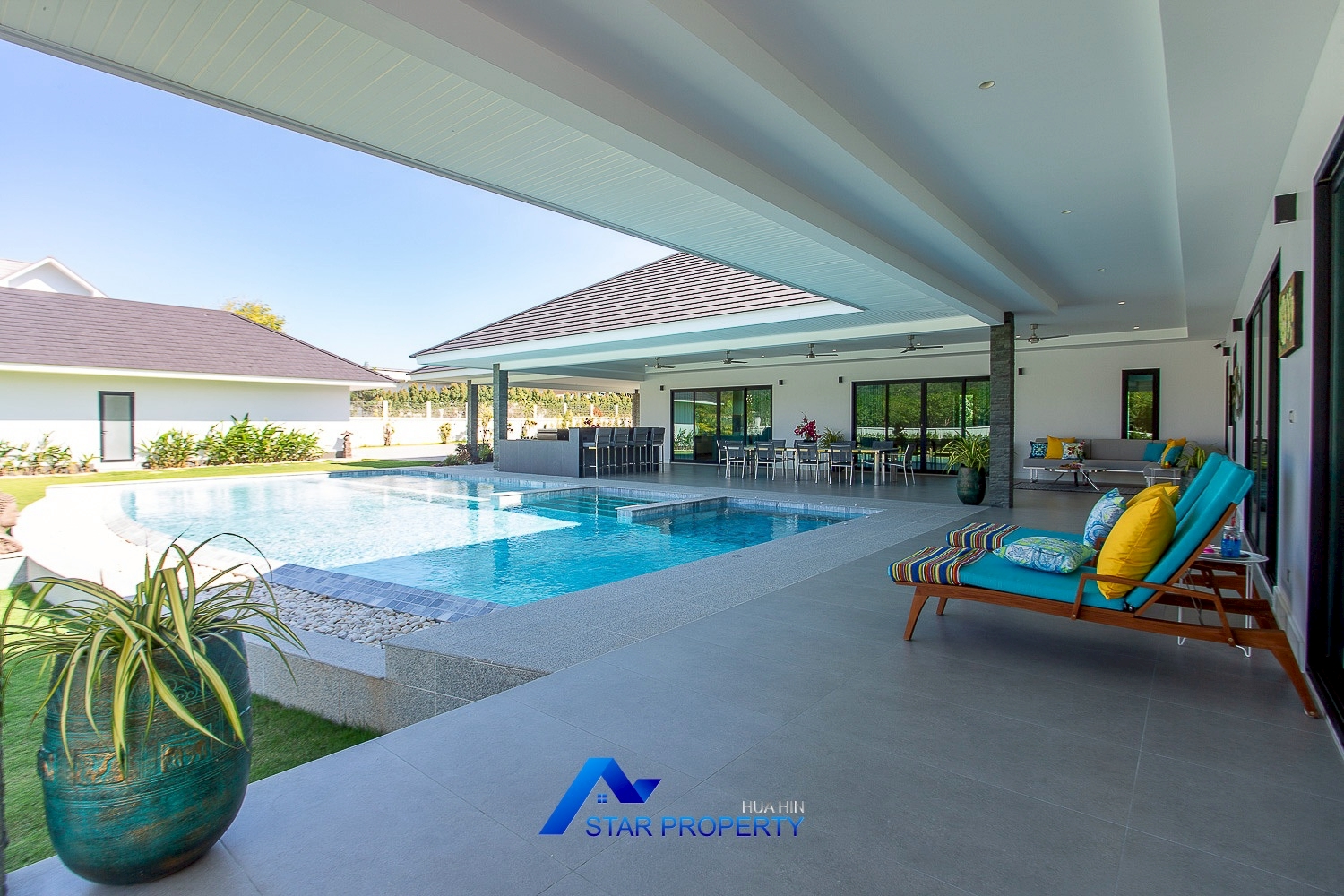 • A stunning 15 x 7.5-meters swim-in jacuzzi and large wet deck enough room to walk around and for sun-loungers and side tables