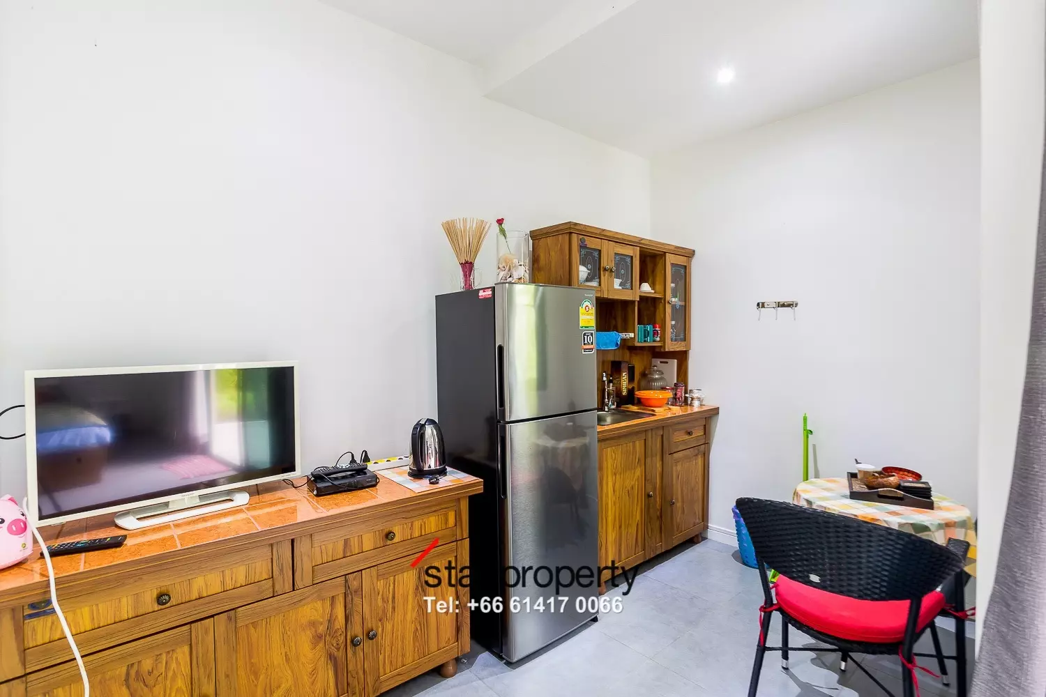 The villa sits on a large land plot of 1,072 sq.m. with a usable living area of 233 sq.m. The home features 3 bedrooms and 4 bathrooms, including a separate guesthouse with its own private bathroom. The interior offers a bright open-plan living and dining area, a modern European kitchen, and a huge covered terrace overlooking the private 10 × 5 meter saltwater swimming pool and beautifully landscaped tropical gardens.