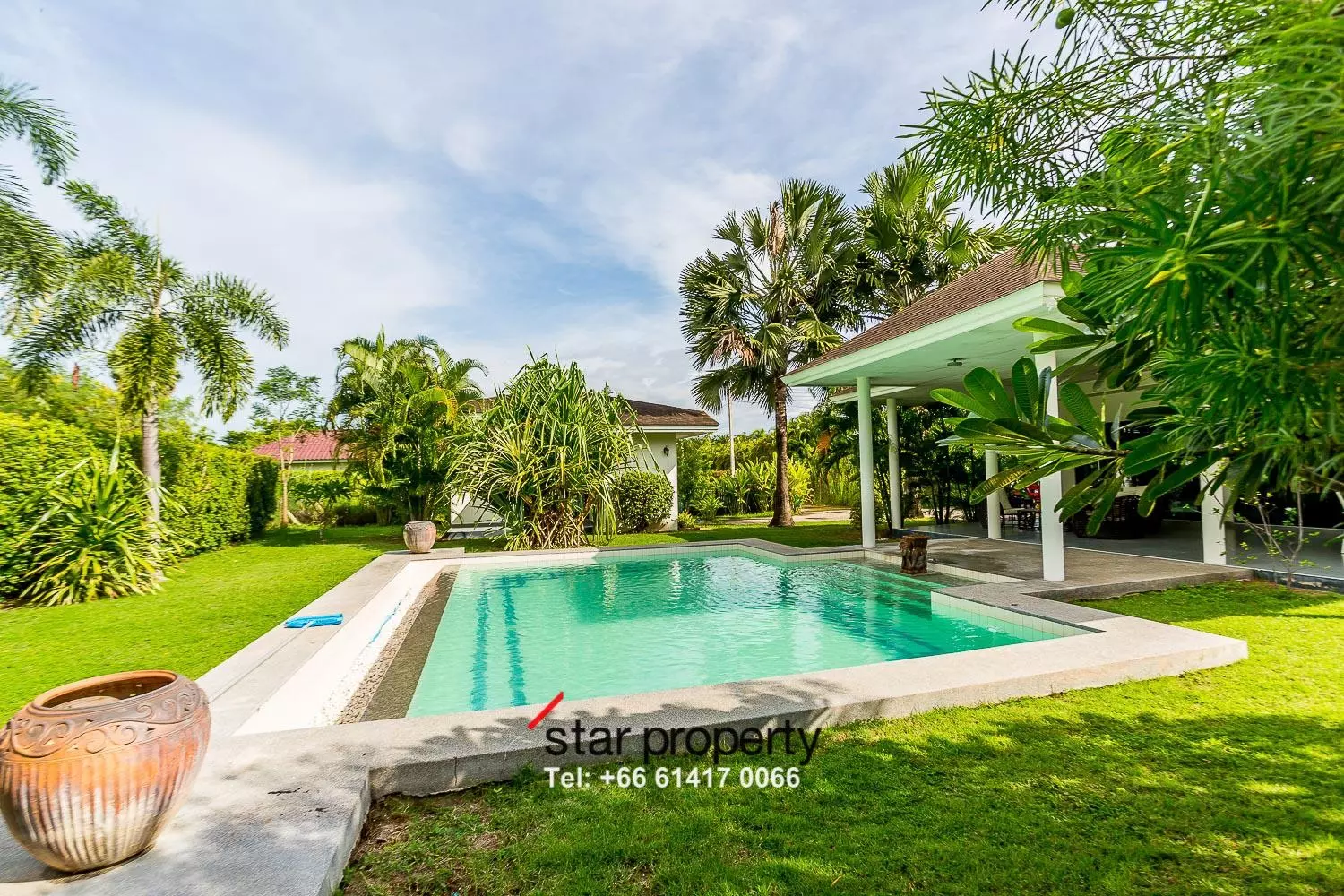 Beautiful pool villa located in a peaceful, high-quality residential development surrounded by nature, offering privacy and a relaxing resort-style atmosphere. The property is conveniently located only 1 minute from the main highway, providing easy access to Hua Hin town and nearby attractions.