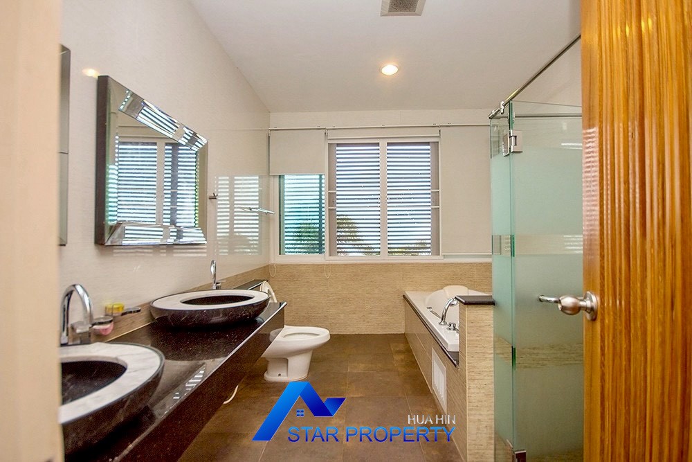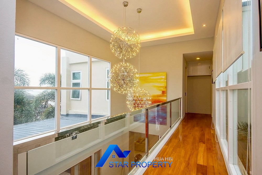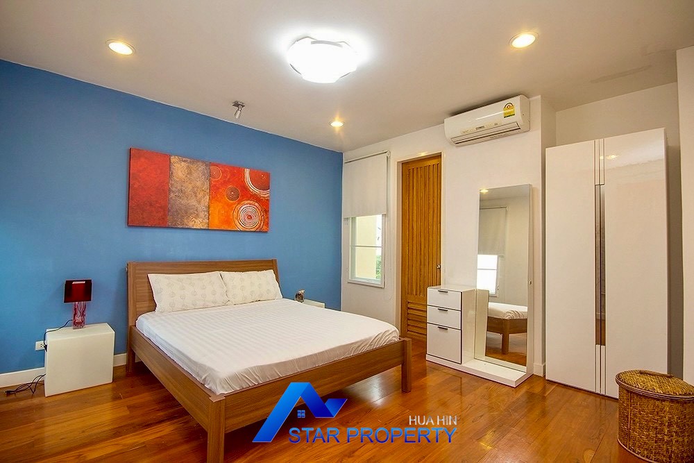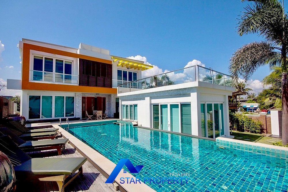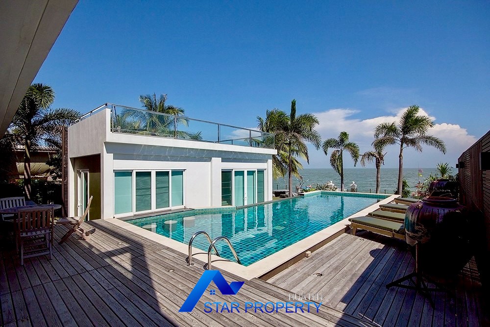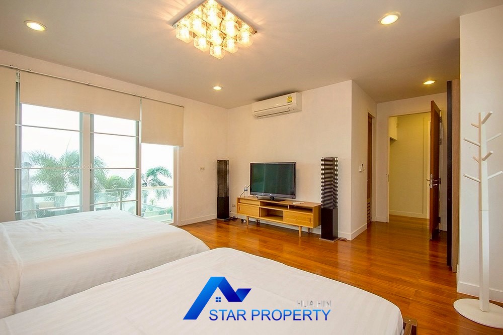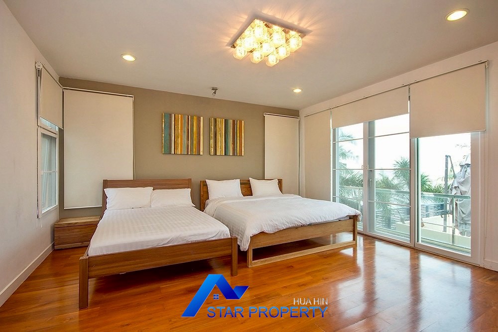 This luxurious beach villa enjoys a lovely ocean breeze and nestles on the tranquil east coast of Cha-Am. The house has 4 bedrooms & 4 bathrooms. The two-storey house features wooden floors and air conditioning units throughout, a large living and dining area which opens out onto a private swimming pool, fantastic sea views from each bedroom, kitchen and carport.