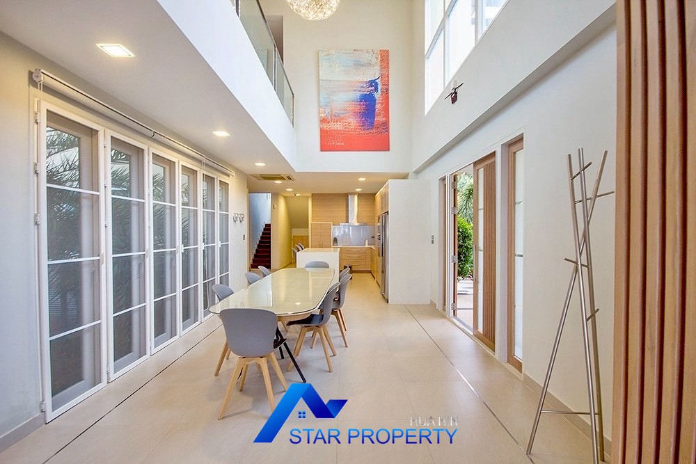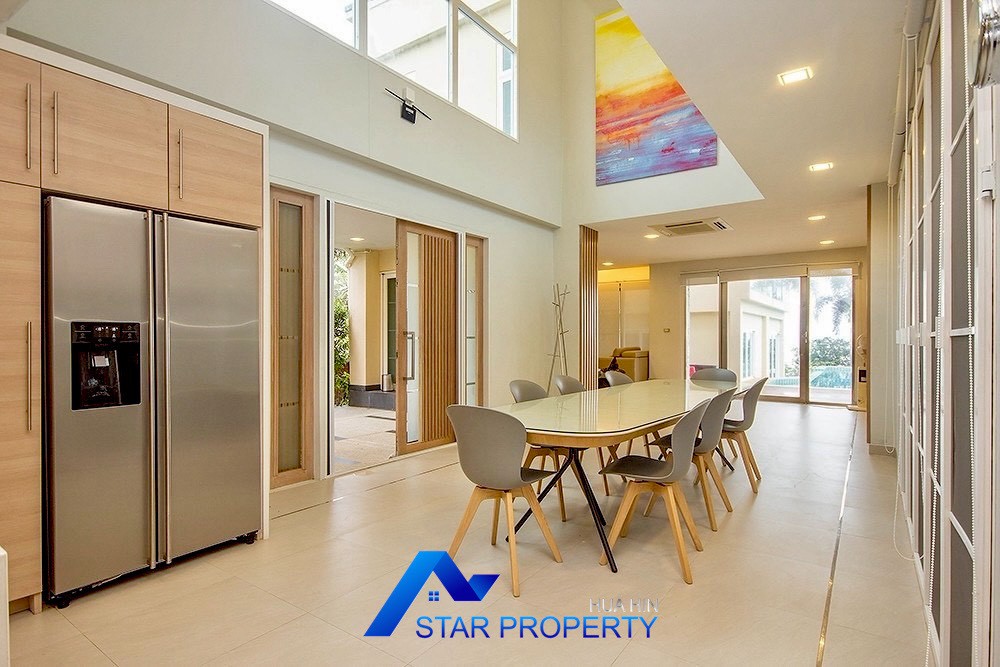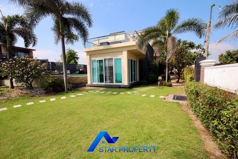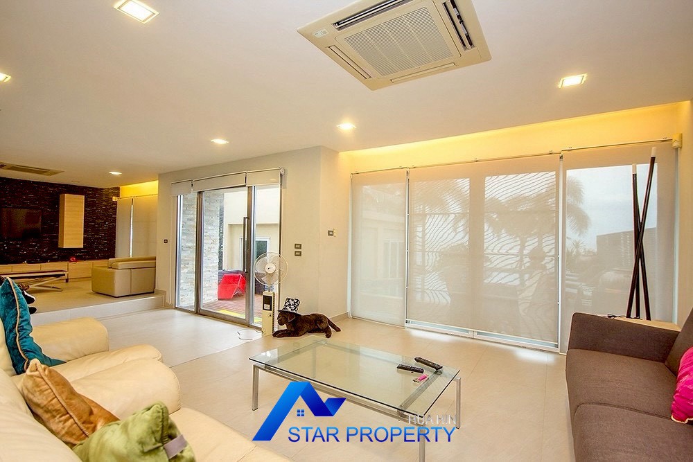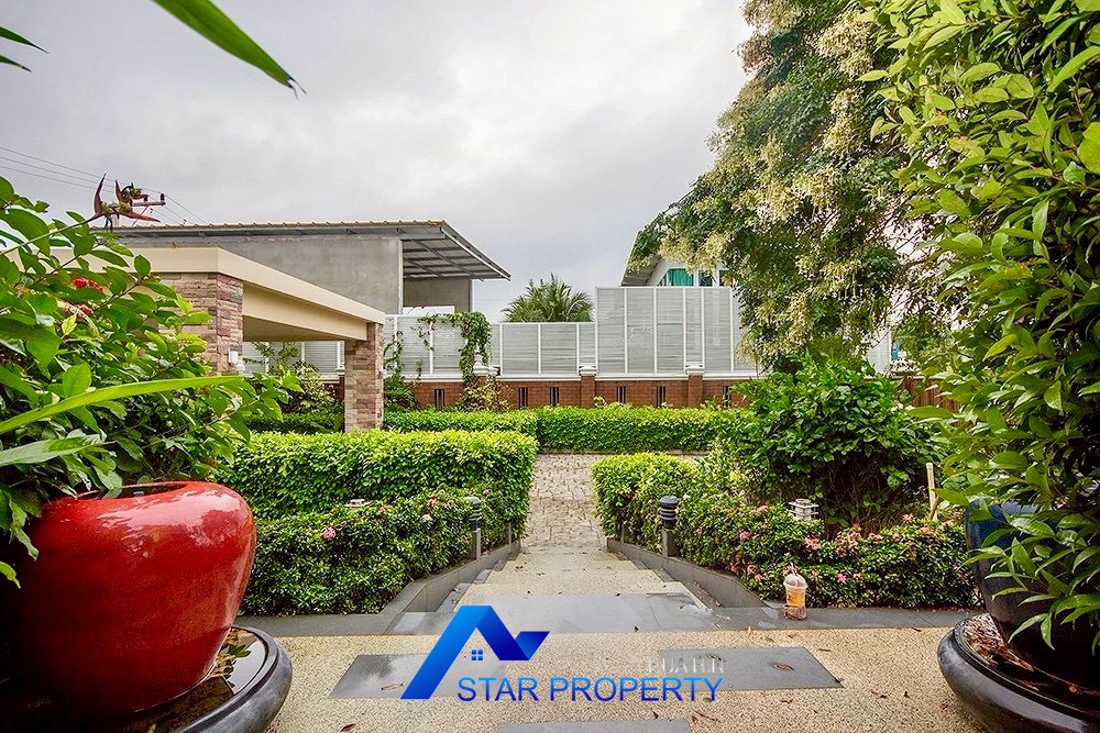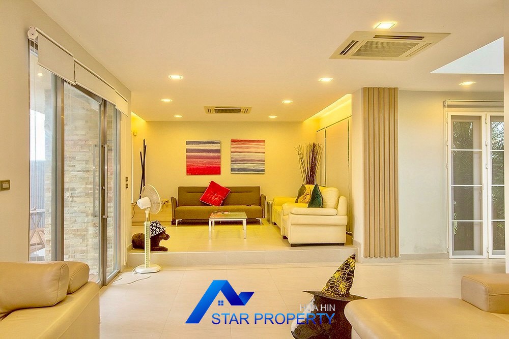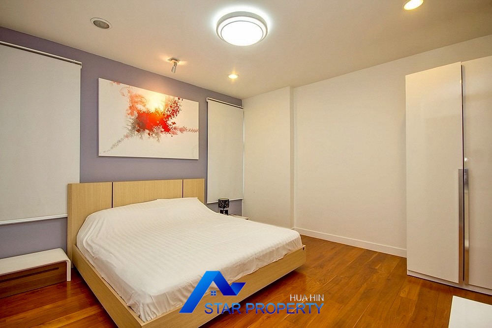 This luxurious beach villa enjoys a lovely ocean breeze and nestles on the tranquil east coast of Cha-Am. The house has 4 bedrooms & 4 bathrooms. The two-storey house features wooden floors and air conditioning units throughout, a large living and dining area which opens out onto a private swimming pool, fantastic sea views from each bedroom, kitchen and carport.