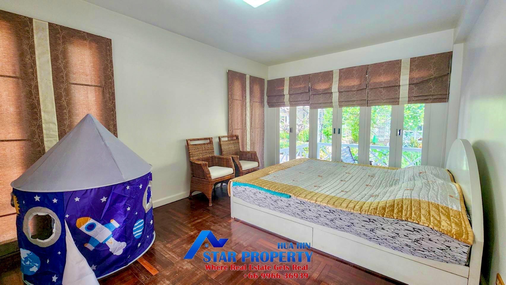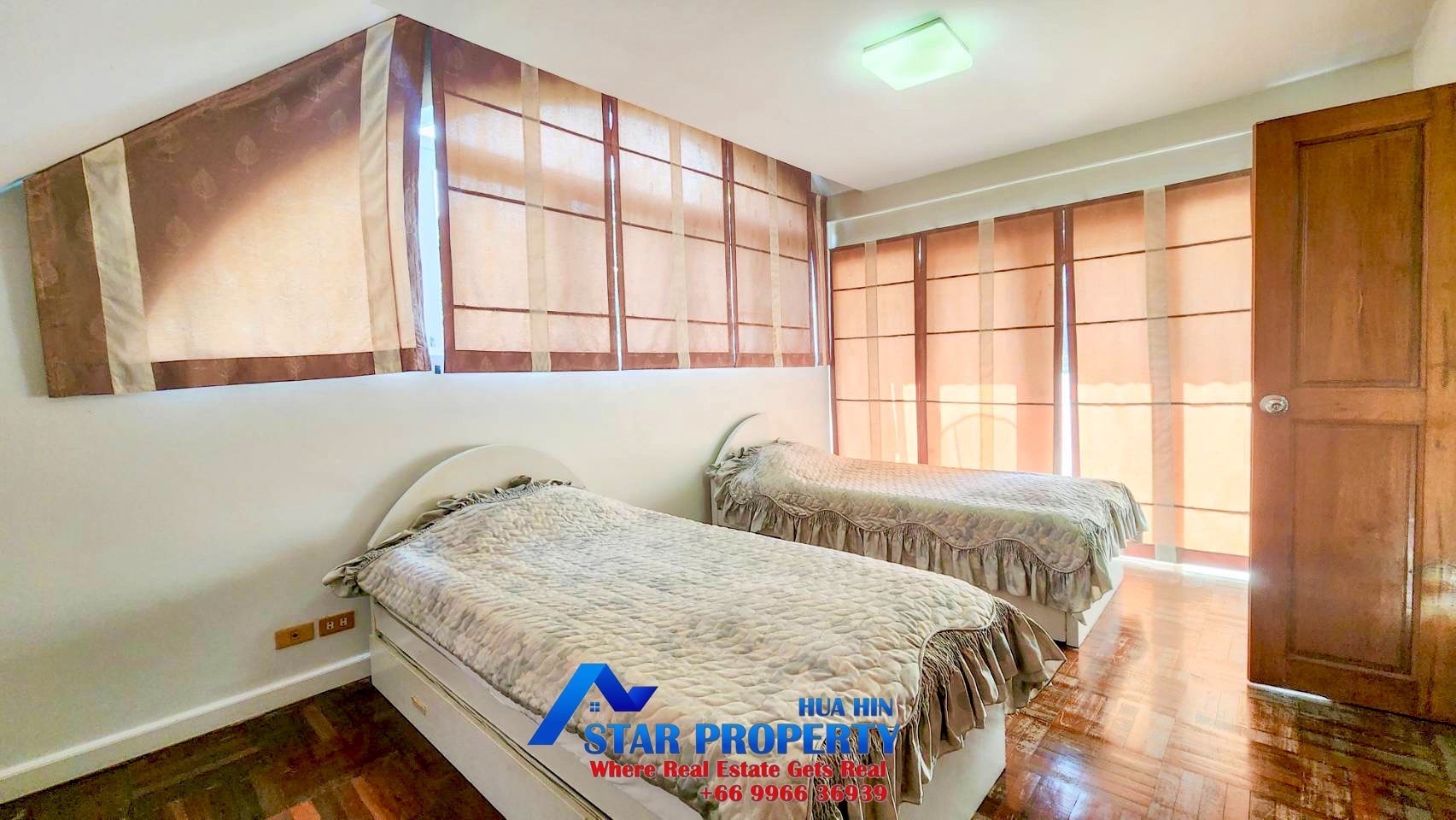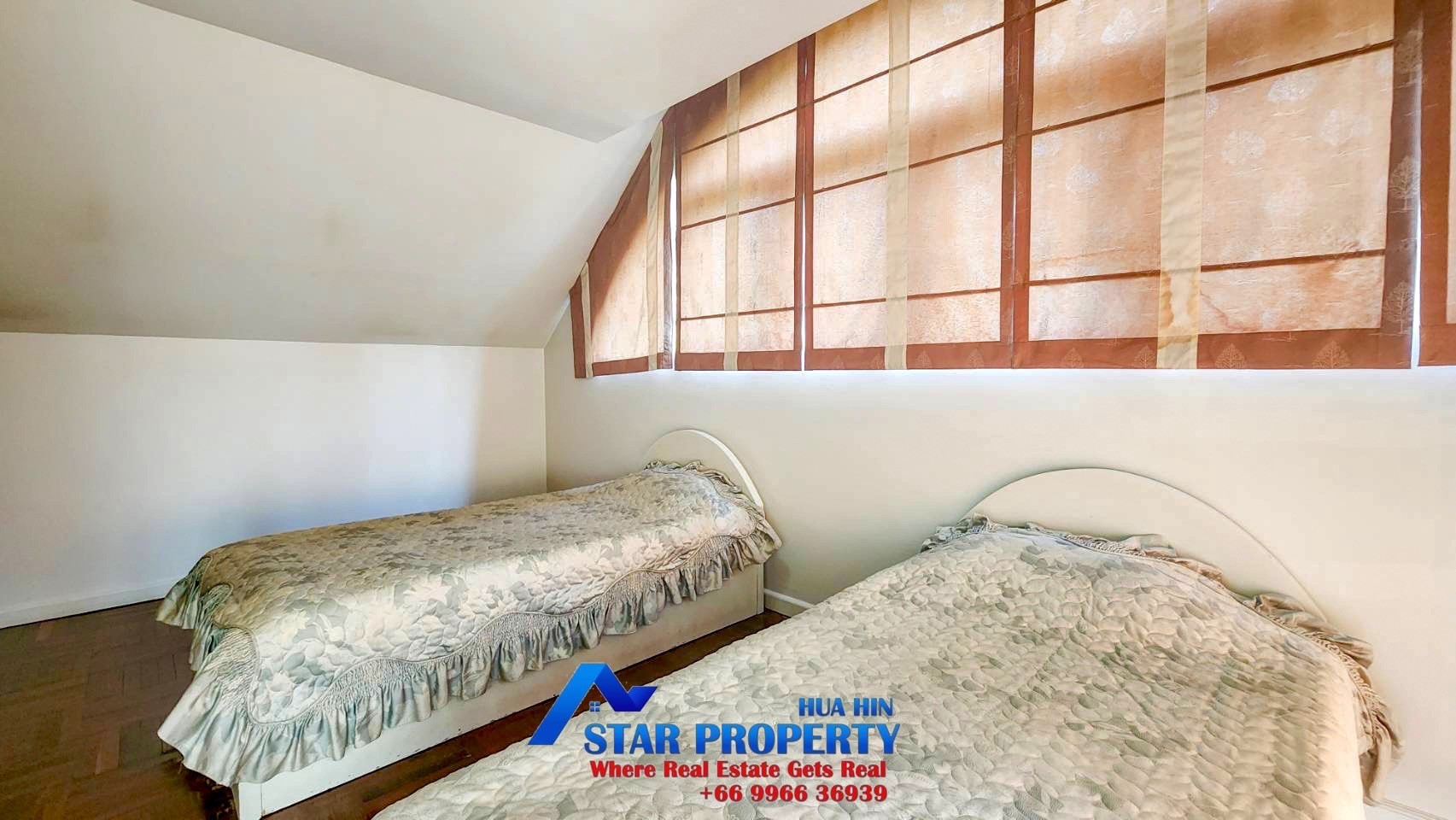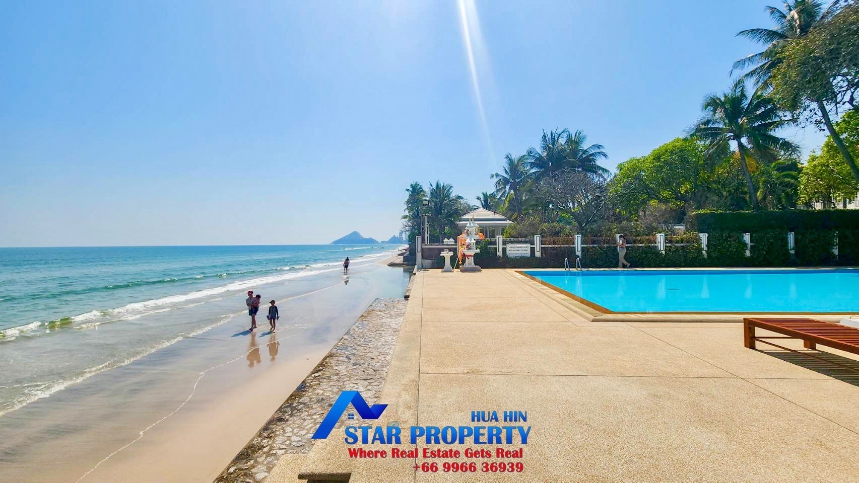 The 2 story beach villa with 4 bedrooms set in a quiet and peaceful development surrounded by tropical gardens. Land area 256 sqm. and living area 240 sqm. There are 2 swimming pools attached to your villa, pure escapism in the Thai resort of Hua Hin. This villa is located Hua Hin Town Center on the beach. It offers a real opportunity to escape from the hustle and bustle of city life. The tropical gardens offer plenty of space for kids to play around and the beach is on your doorstep.