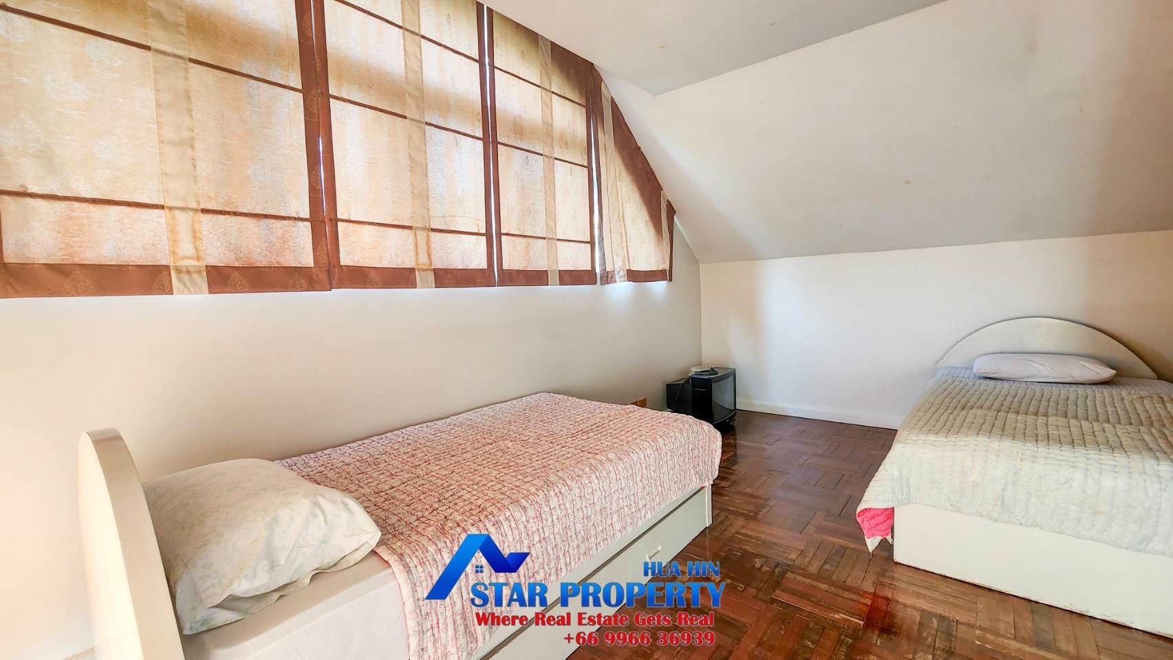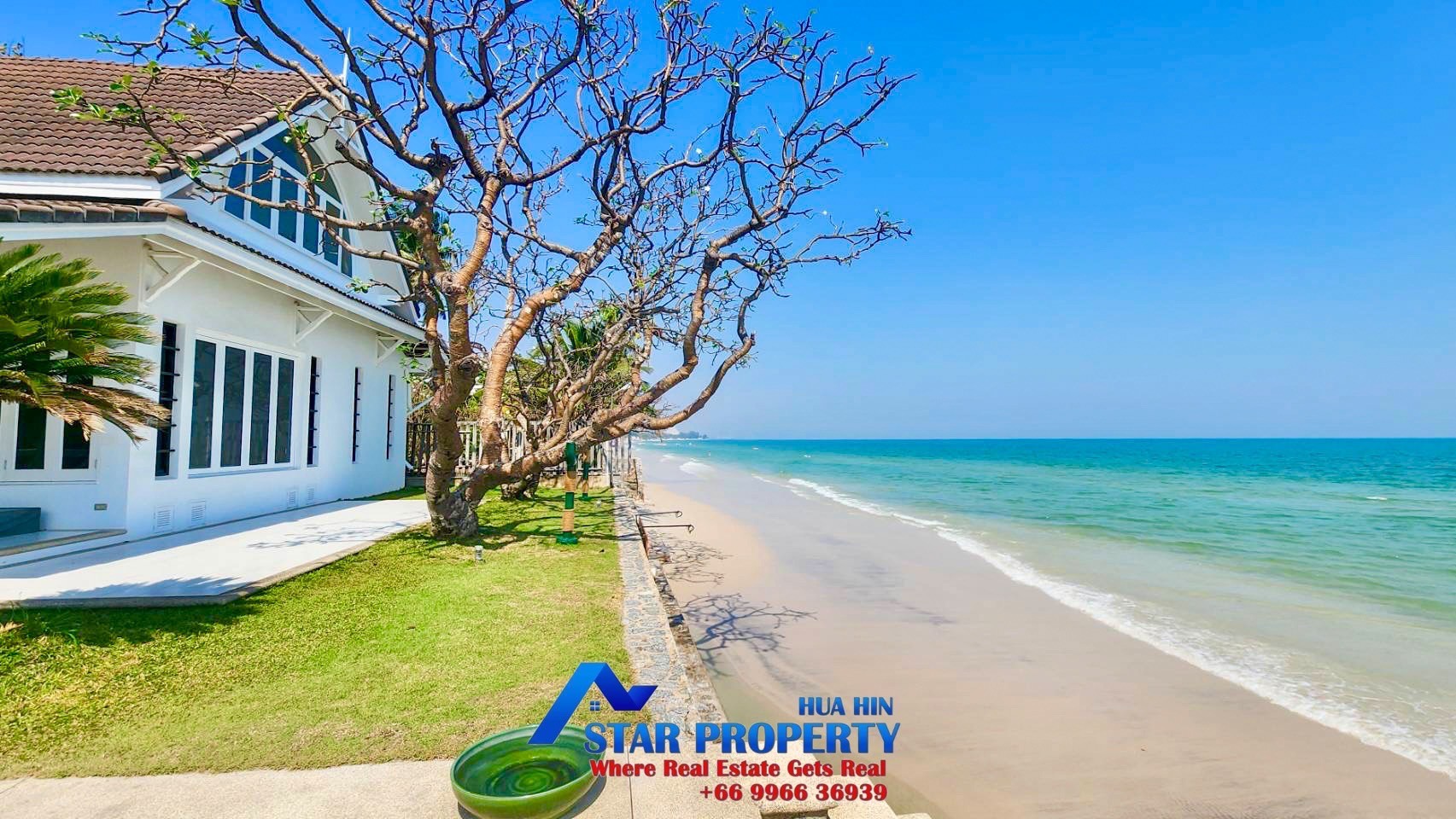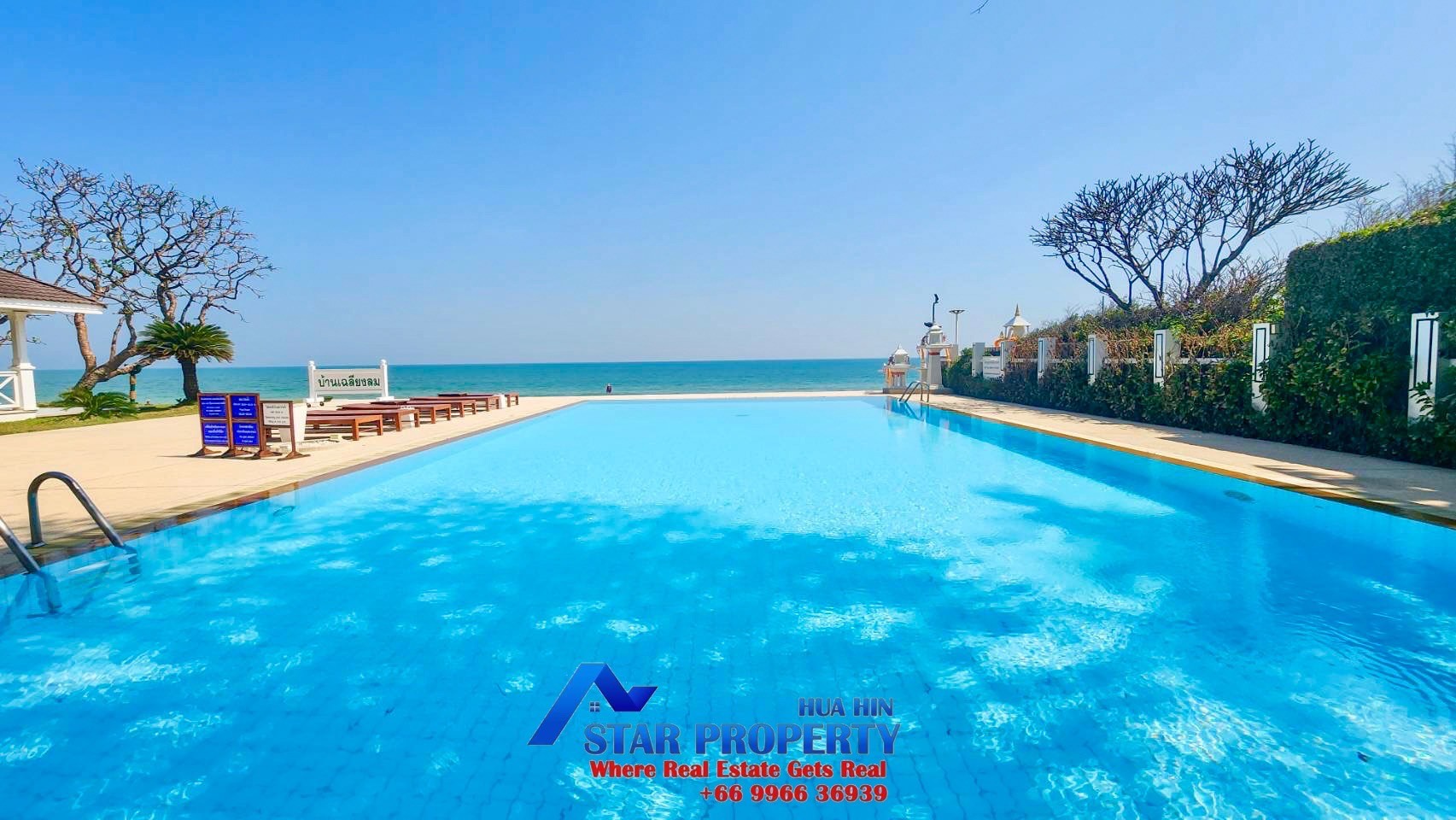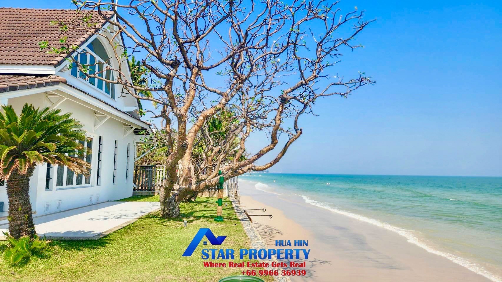 The 2 story beach villa with 4 bedrooms set in a quiet and peaceful development surrounded by tropical gardens. Land area 256 sqm. and living area 240 sqm. There are 2 swimming pools attached to your villa, pure escapism in the Thai resort of Hua Hin. This villa is located Hua Hin Town Center on the beach. It offers a real opportunity to escape from the hustle and bustle of city life. The tropical gardens offer plenty of space for kids to play around and the beach is on your doorstep.