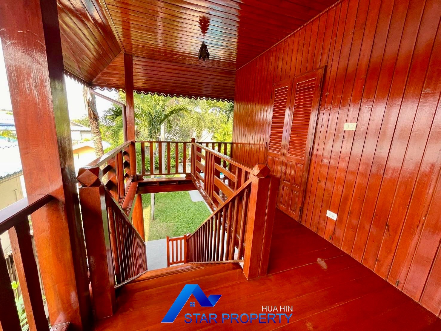 ✔️ Upstairs wooden balcony with serene views and fresh air